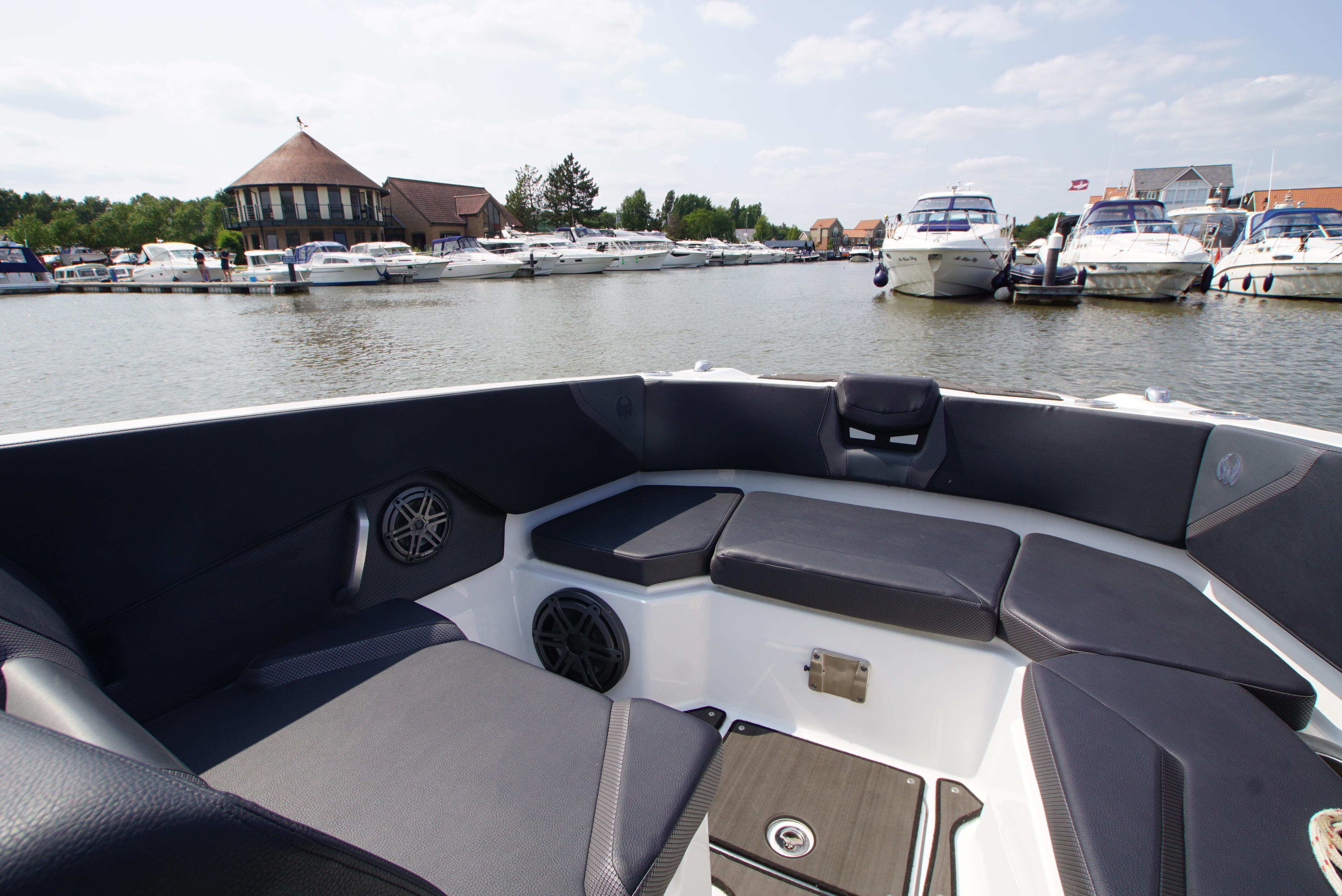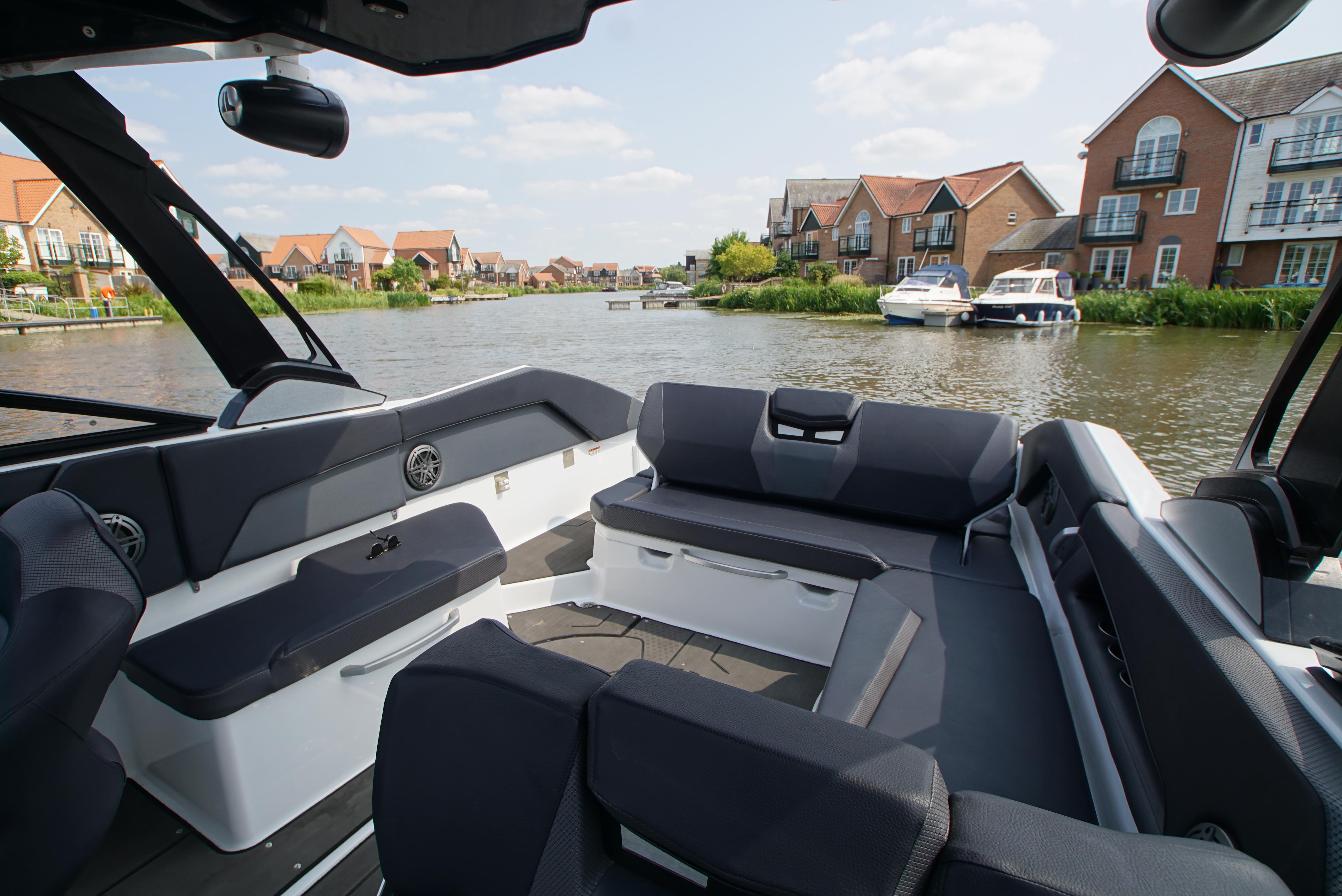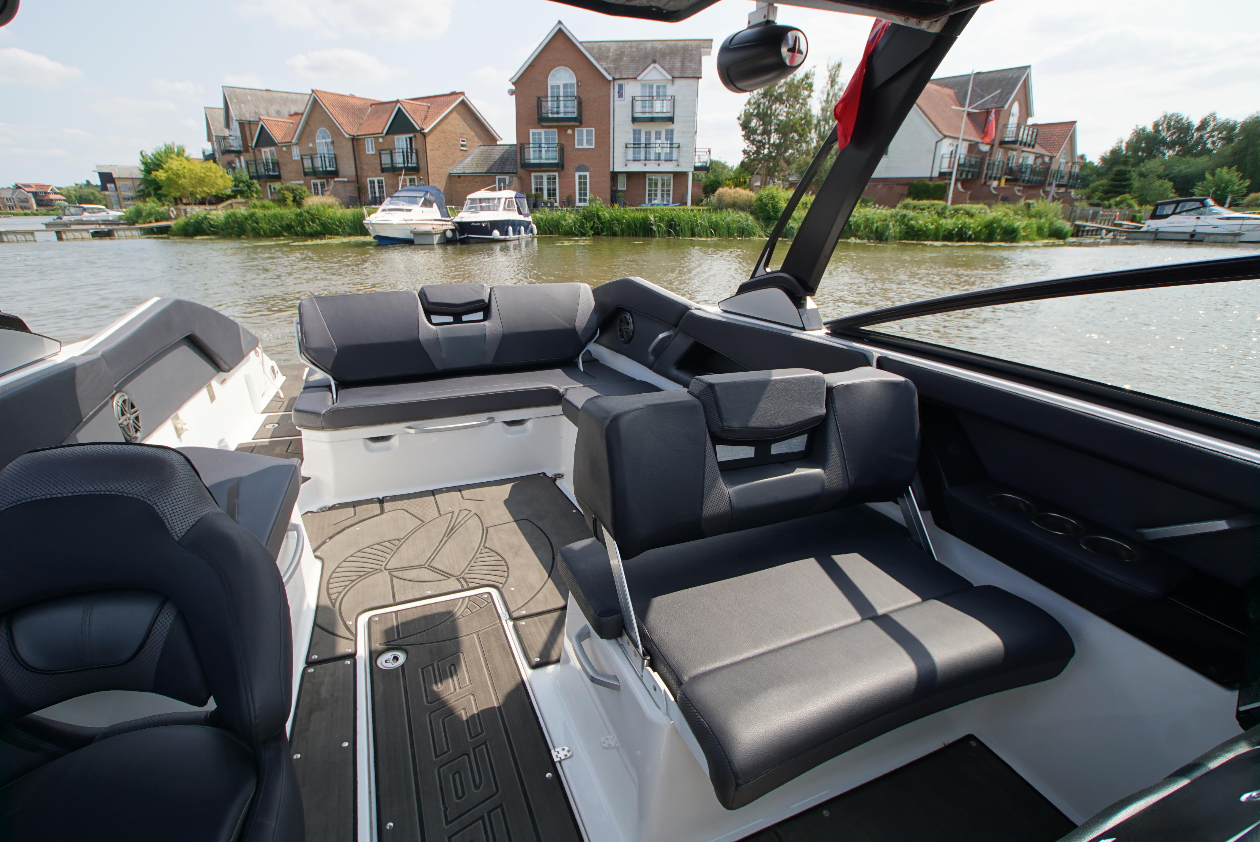 Equipped with twin Rotax 230 HP engines with ONLY 15 HOURS giving you the maximum horsepower available to play with along and benefitting from a host of upgrades like, Premium sound system including JL amplifiers and Subwoofers, Wakeboard tower, Wake ballast system, underwater and docking lights all on top an excellent standard specification make this a perfect boat for family fun on the water.