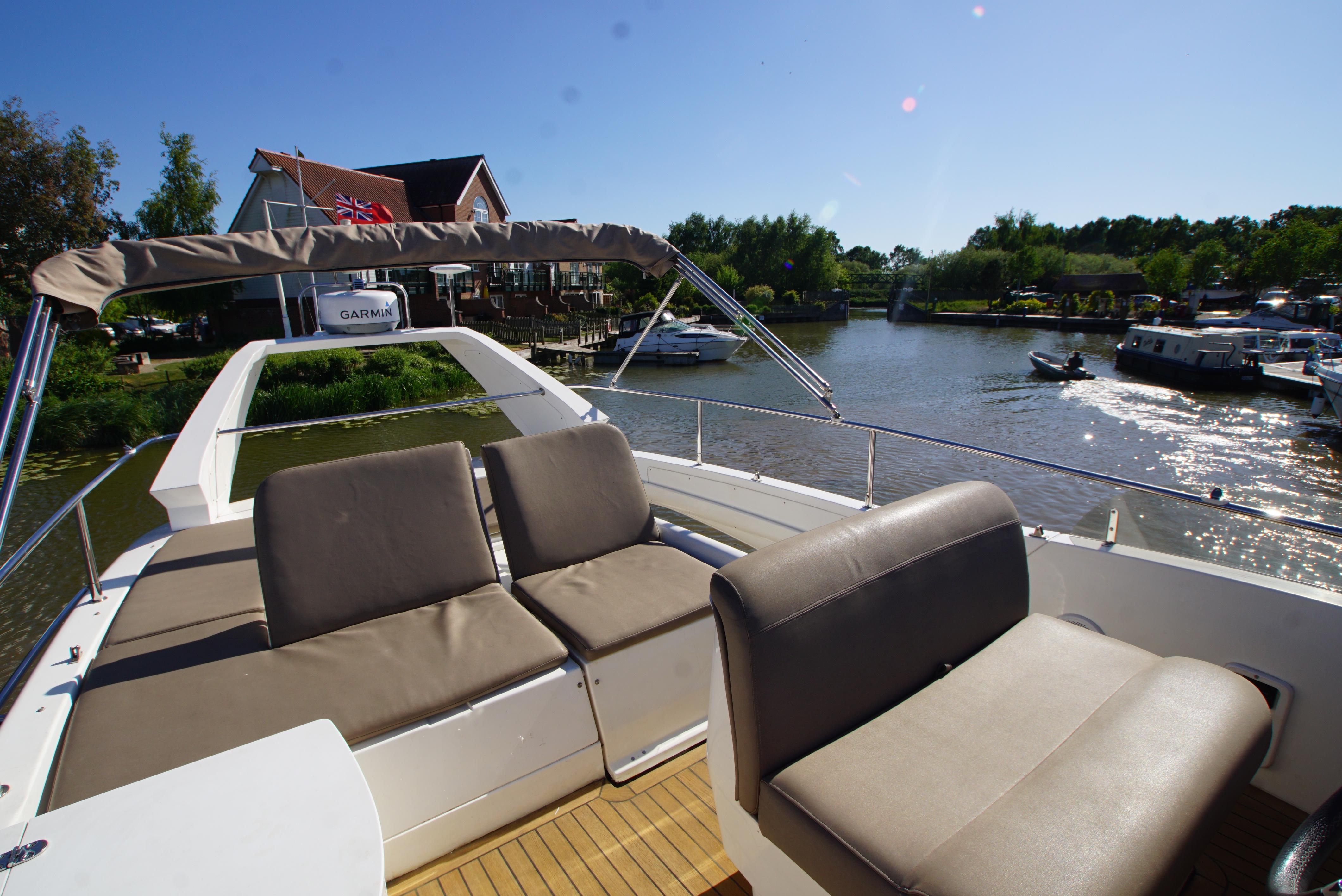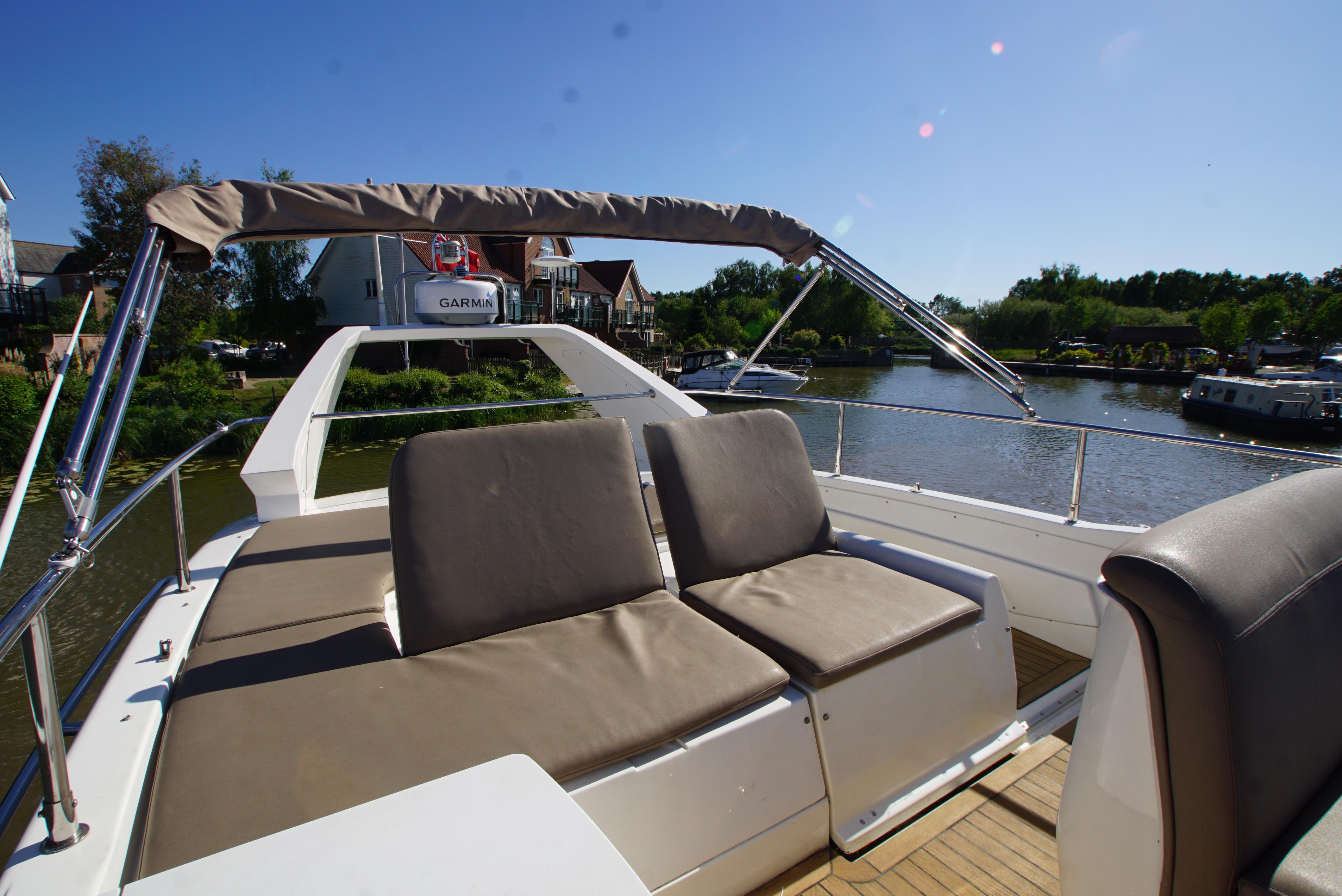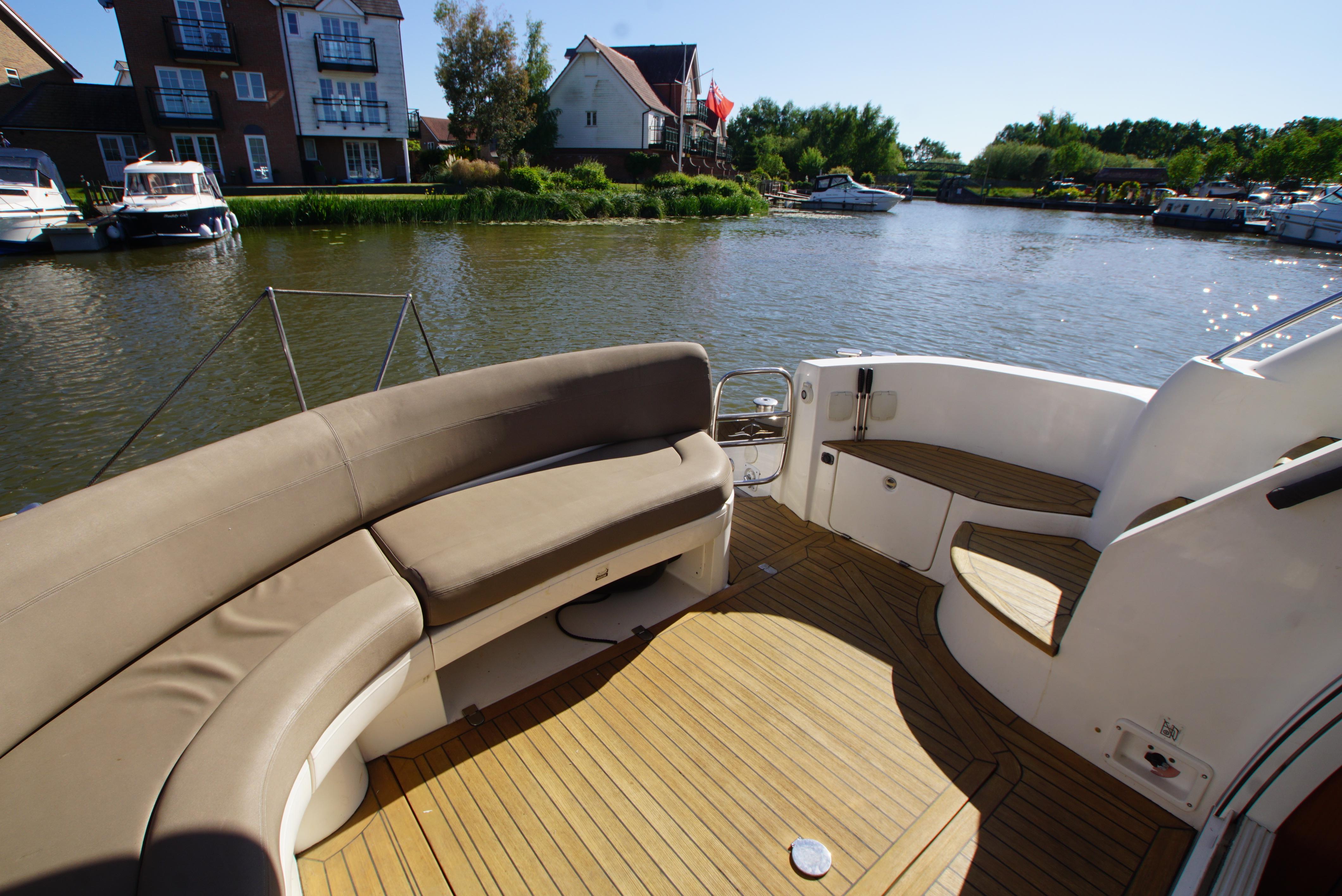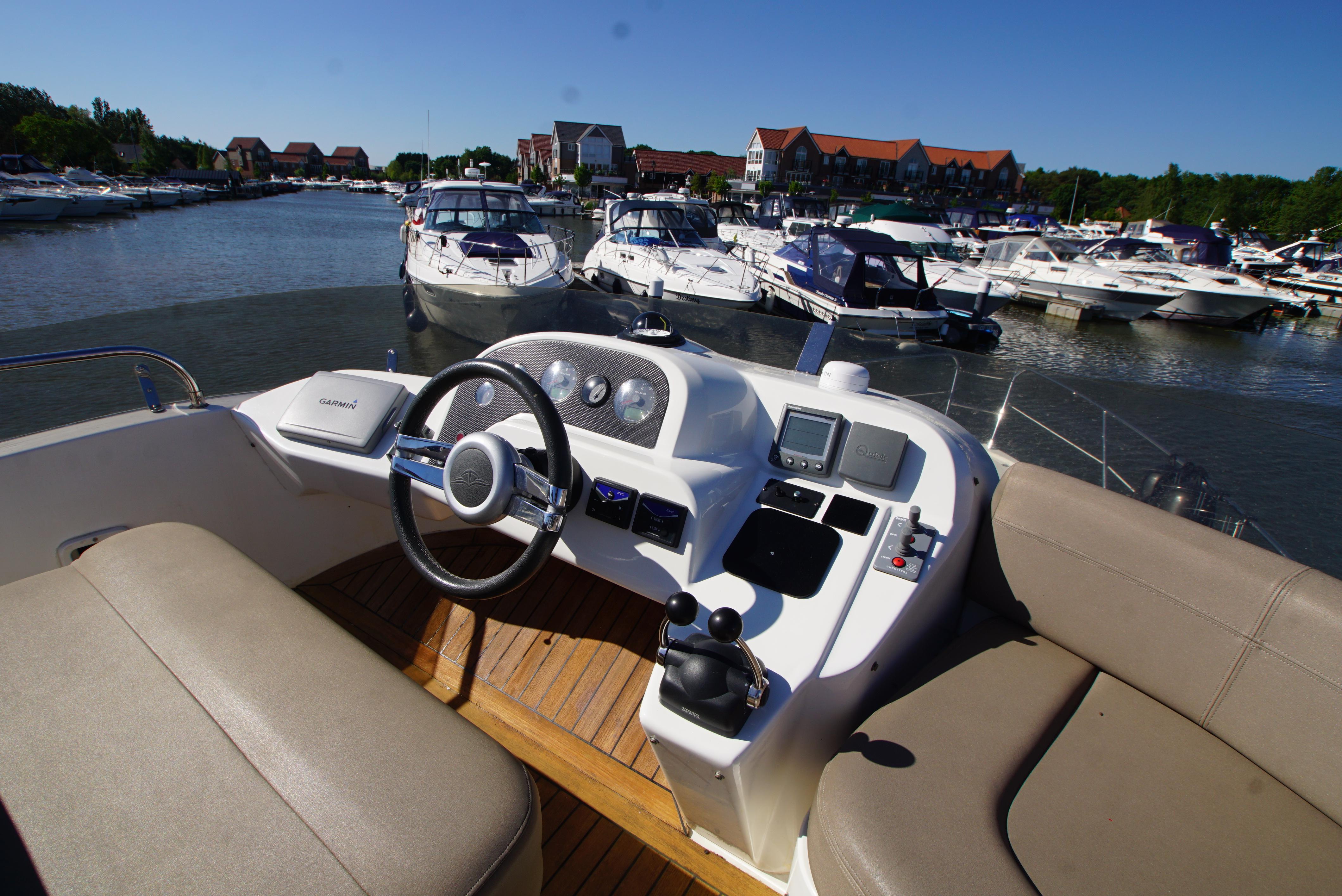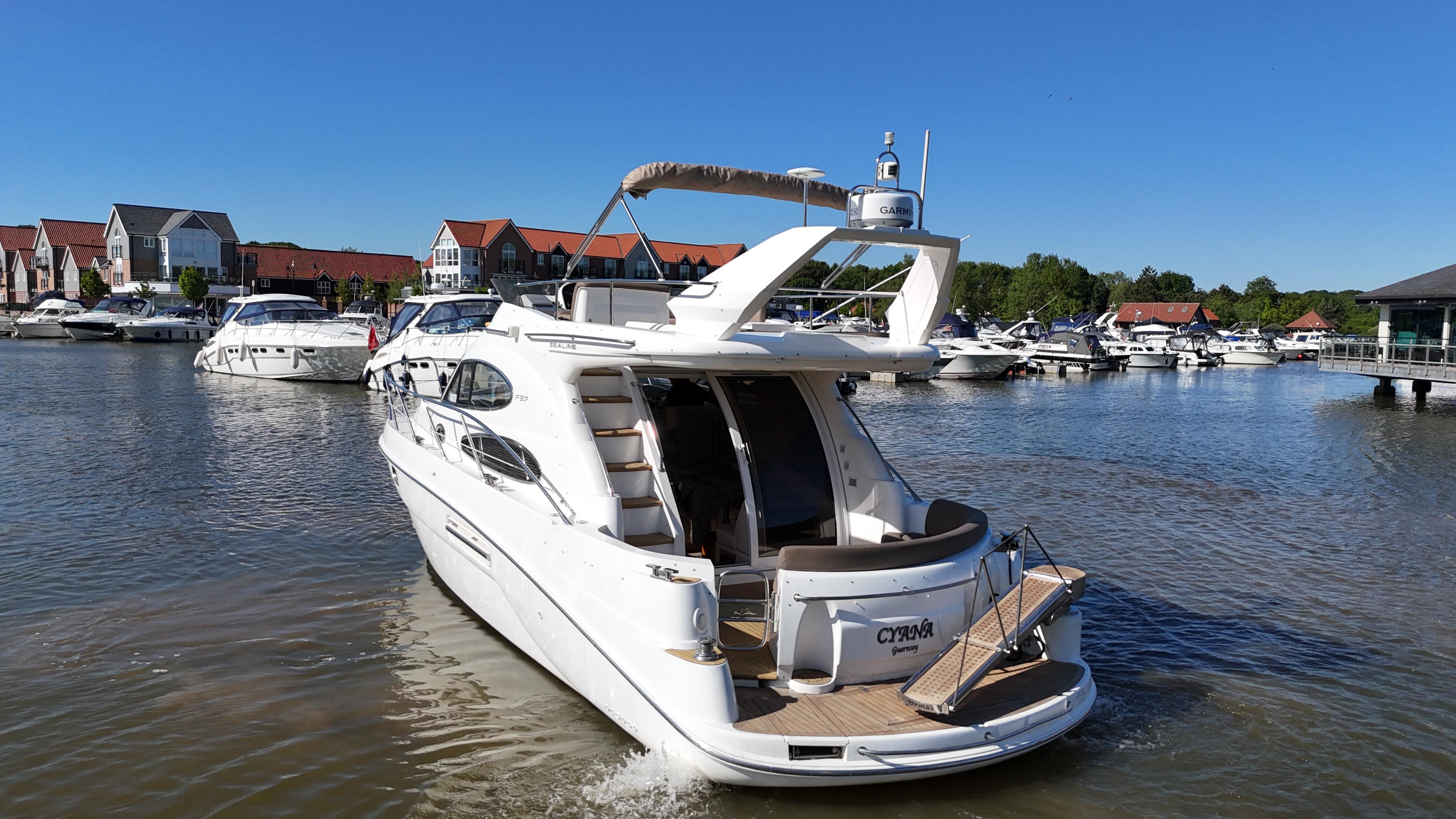 Sealine F37, 2008 build and model year and equipped with the larger Volvo Penta D4 300hp diesel engines with approx 960 hours completed. ‘Cyana’ boasts an excellent specification that includes bow & stern thrusters, generator, air conditioning, teak cockpit and flybridge, aft cockpit canopy and bimini, chartplotter, electric toilet, cream leather saloon, stern winch and much more. Offering and excellent layout with a generous master cabin with separate heads and shower compartments. Excellent service history, and benefits from having new canvas covers (old ones still available) ,seacocks and anodes as well as being serviced and antifouled in 2025. Valid Boat Safety Certificate until July 2028. Viewings 7 days a week in Lincoln.