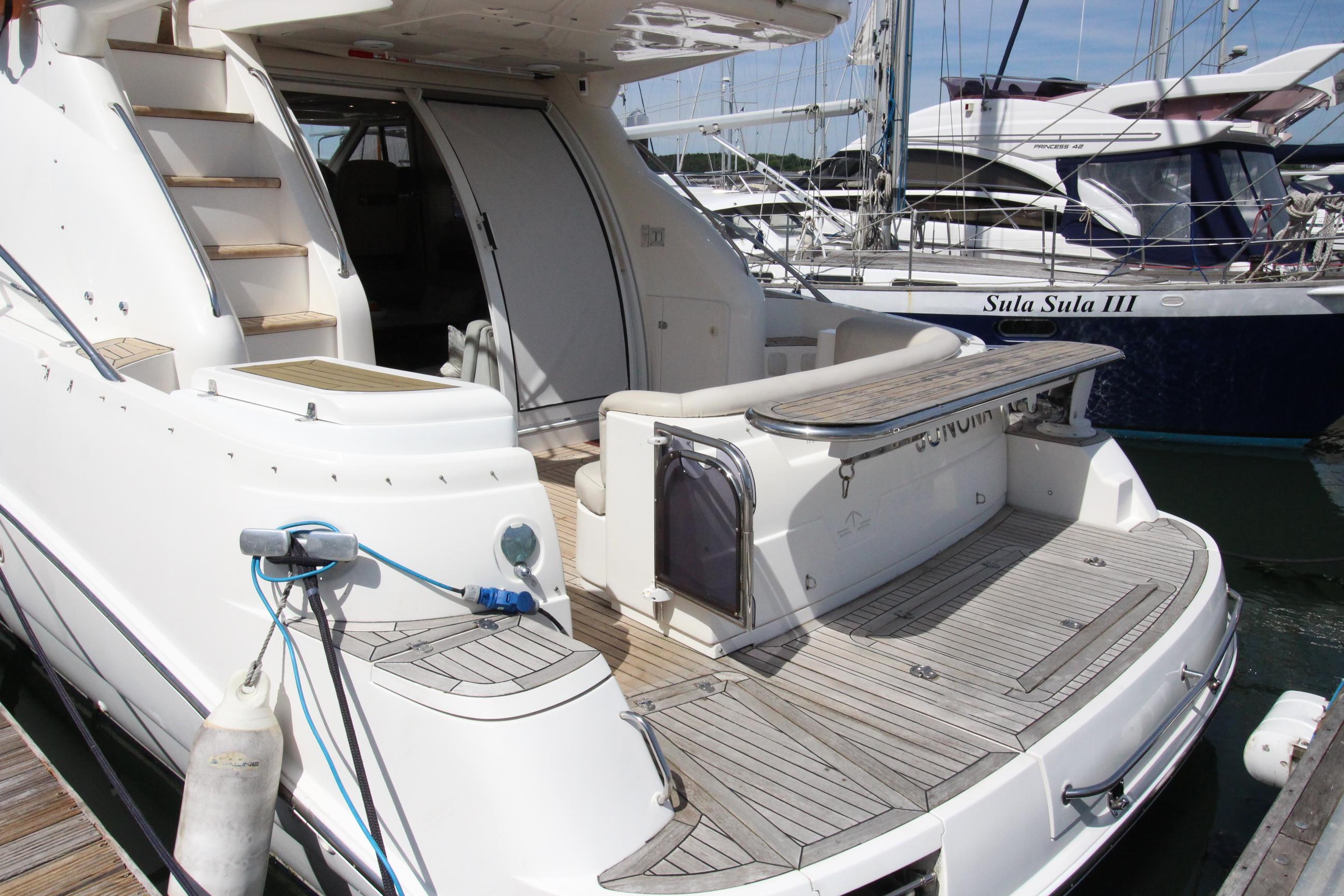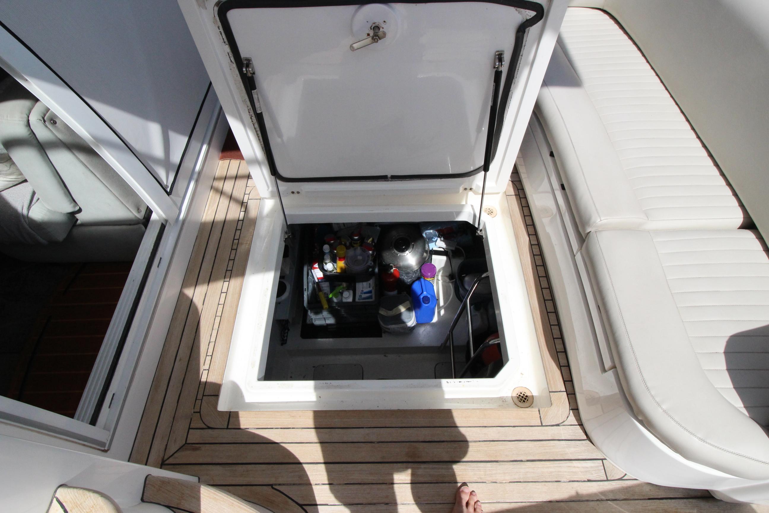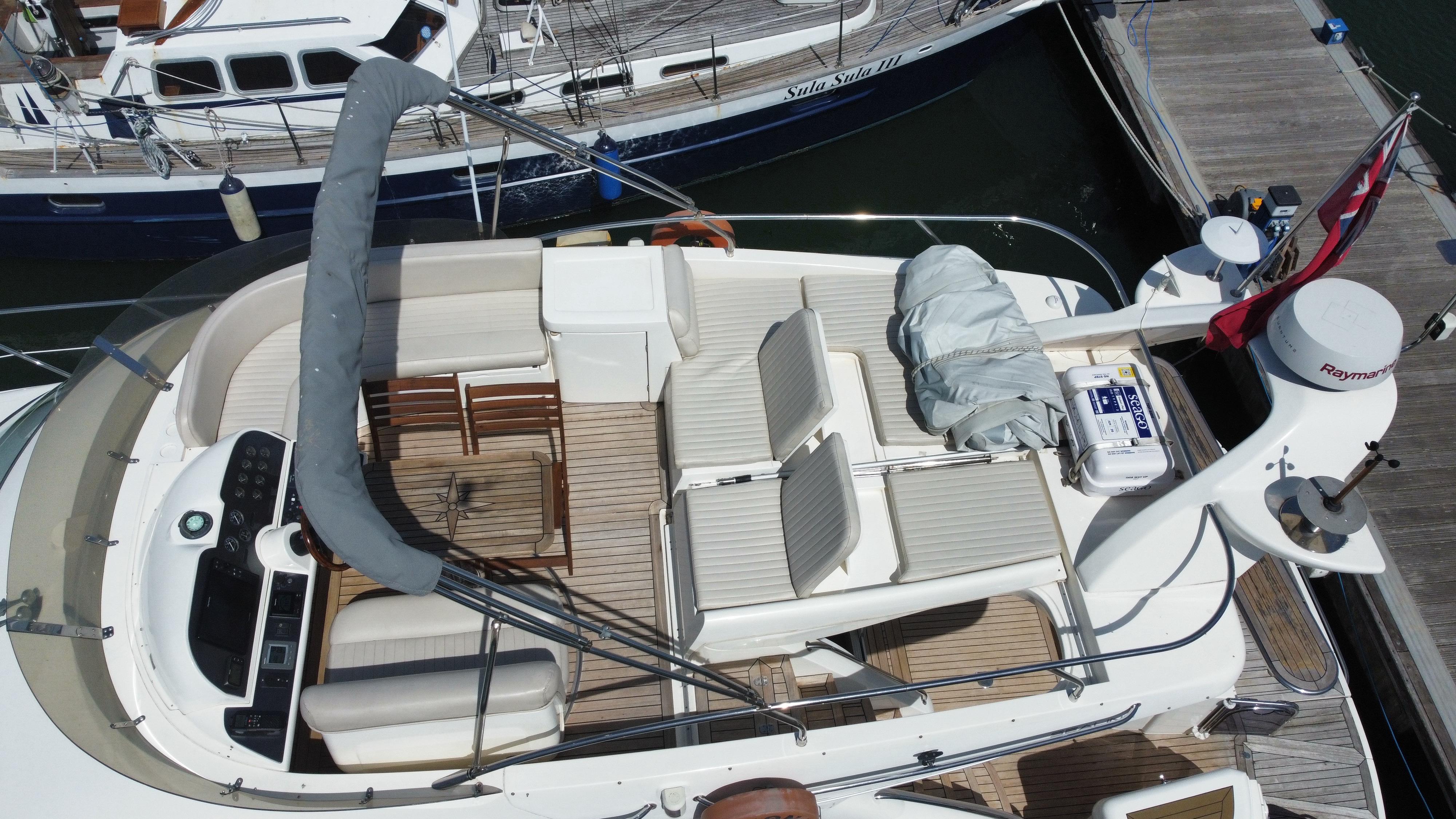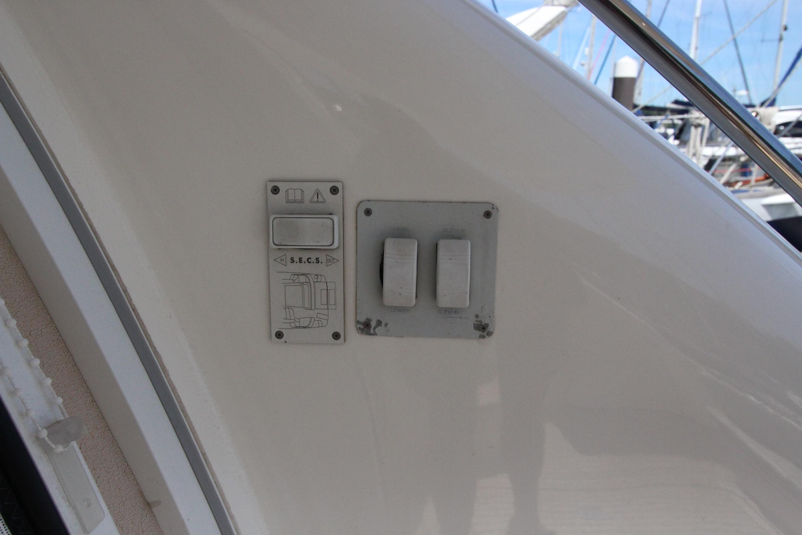 Outside the cockpit is fitted with the S.E.C’s system which allows the cockpit to be extended out including the bathing platform by another three foot giving you even more outside space when needed but then can be kept in when not needed keeping your mooring length costs down.