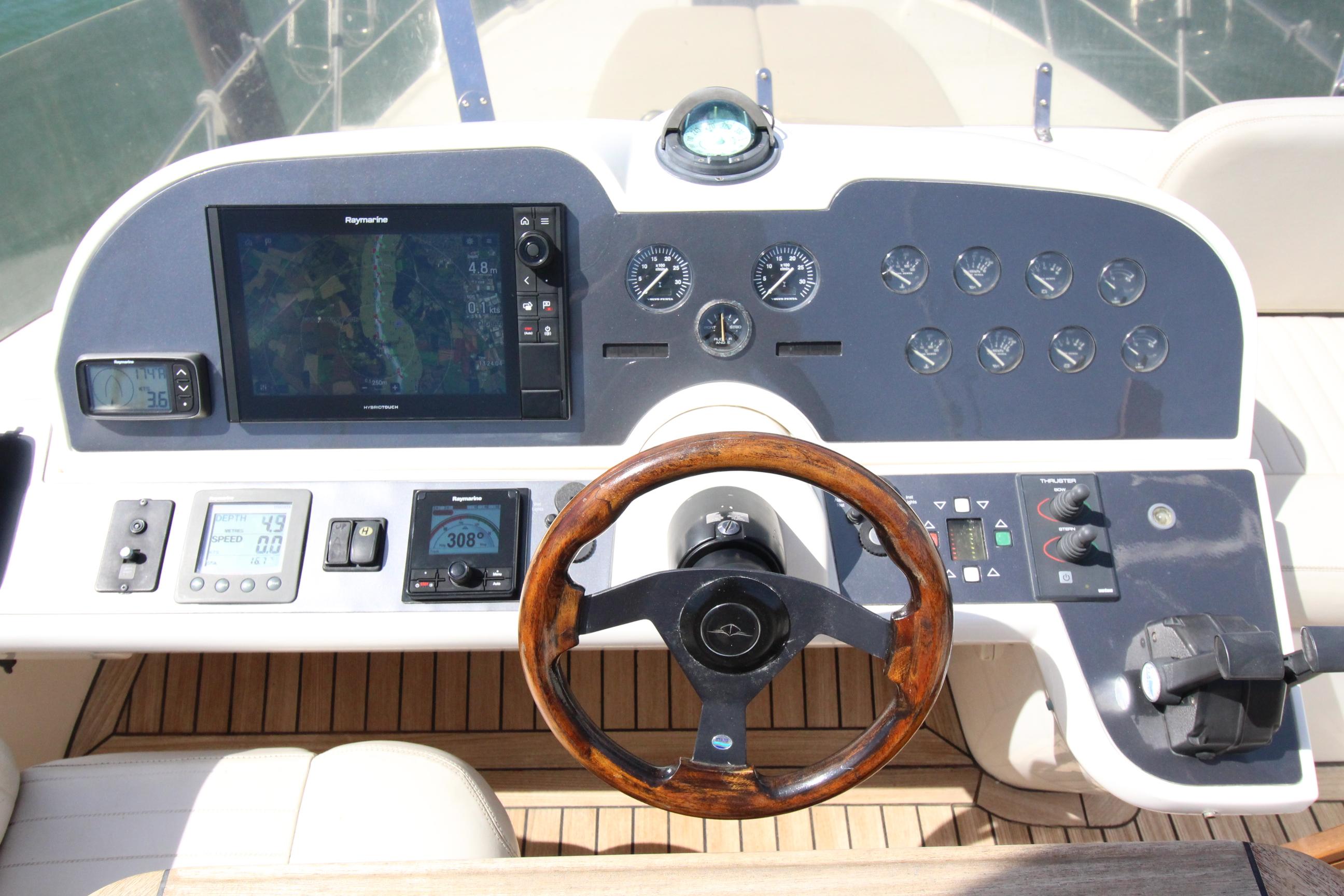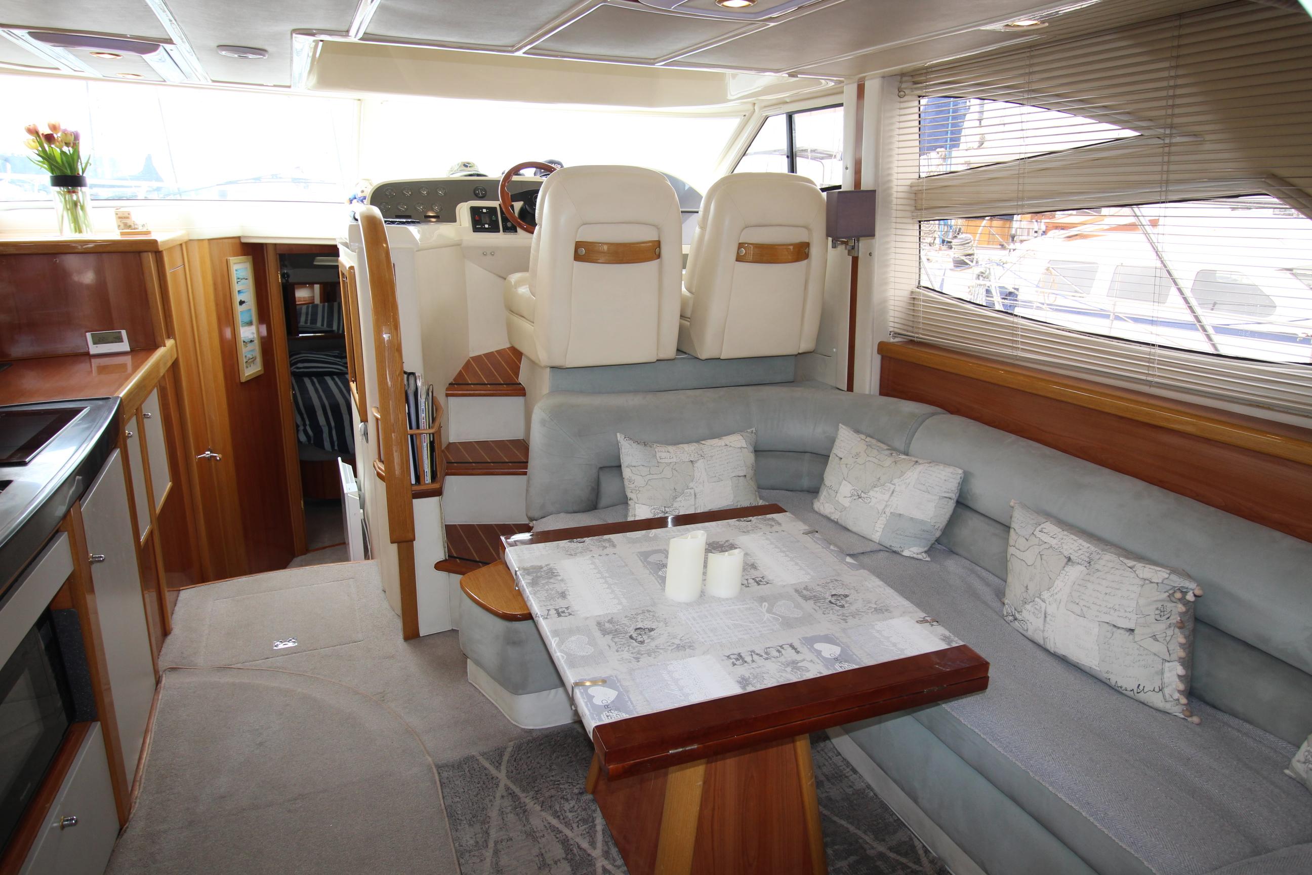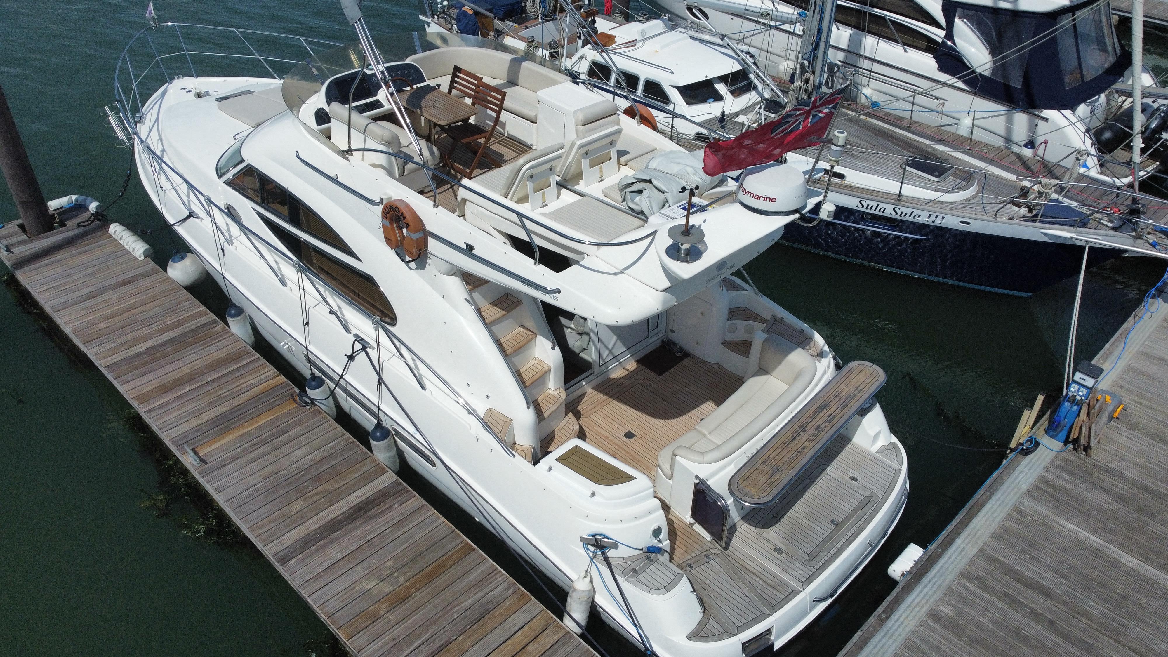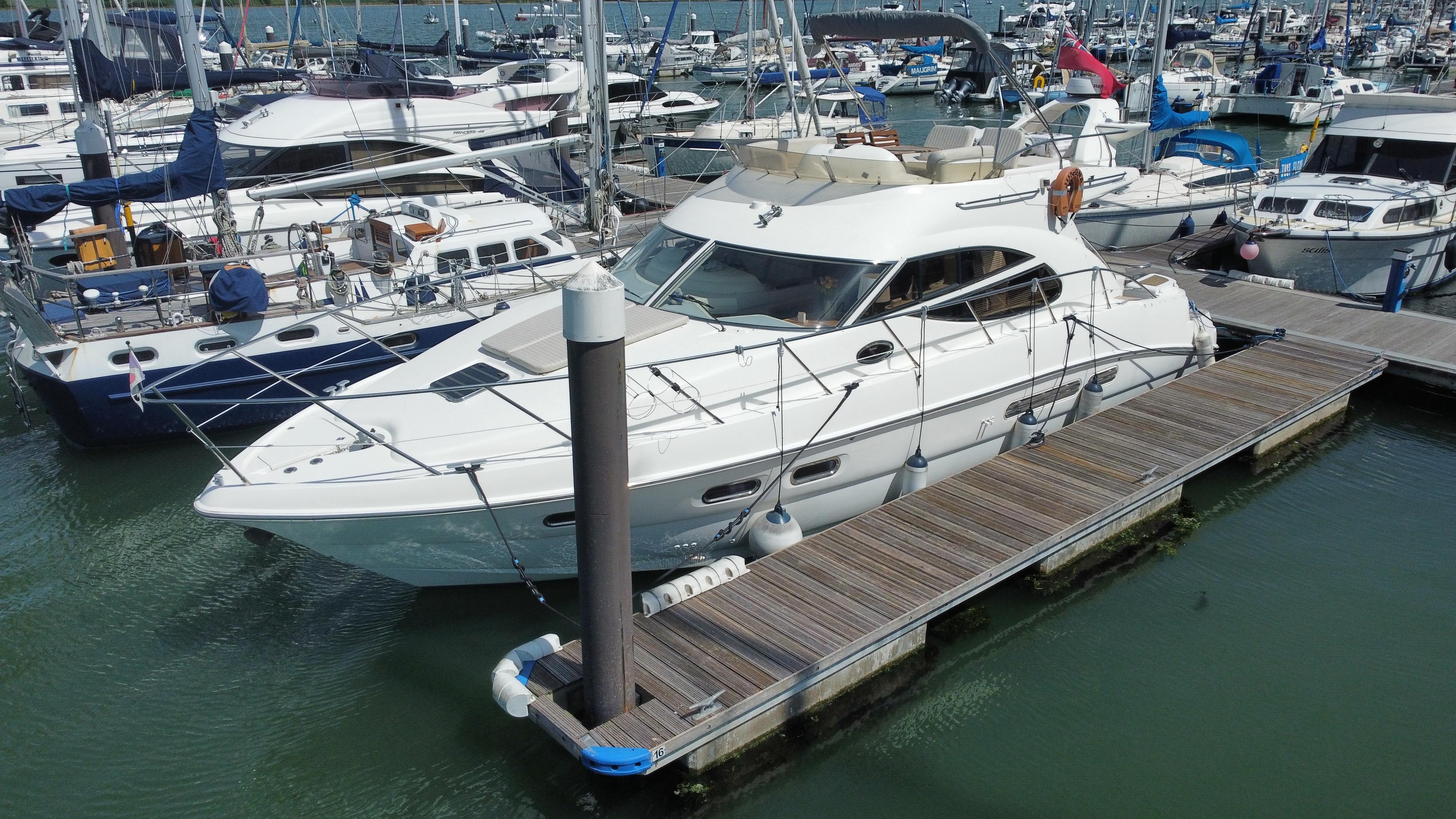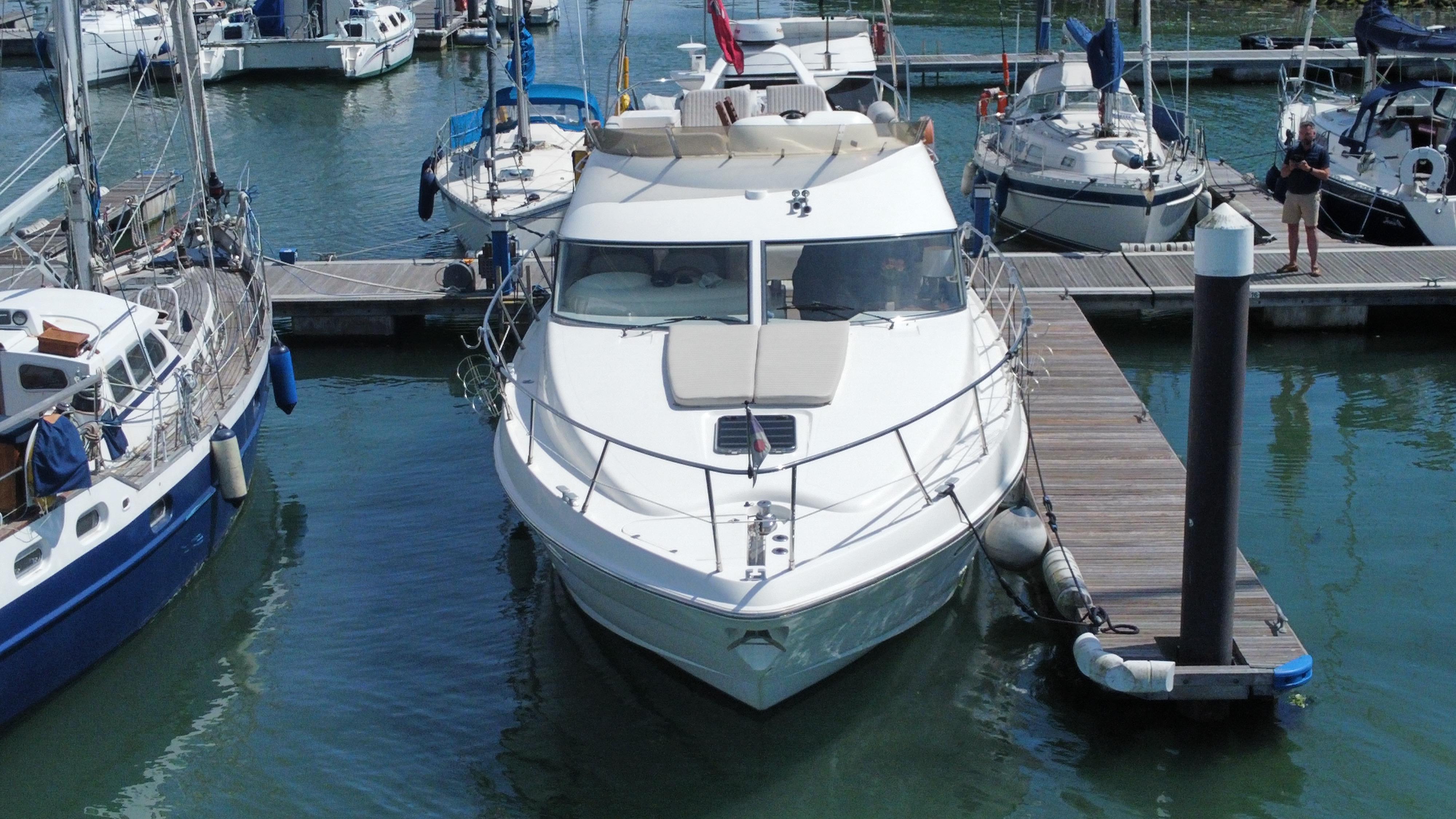 2003 model year Sealine F42/5, with twin Volvo TAMD 63P (2 x 370HP) Diesel engines with shaft drive. Full service booked in for June 2025. This lovely three cabin boat has been equipped with Bow and stern thruster, Passarell, Generator, Heating, air conditioning and New Ray-marine GPS chart plotter on the flybridge, making her an Ideal place to enjoy time on the water with friends and family. The port-side galley is well equipped with a microwave, induction hob, fridge and sink that is on the same level as the saloon making hosting guests a breeze.