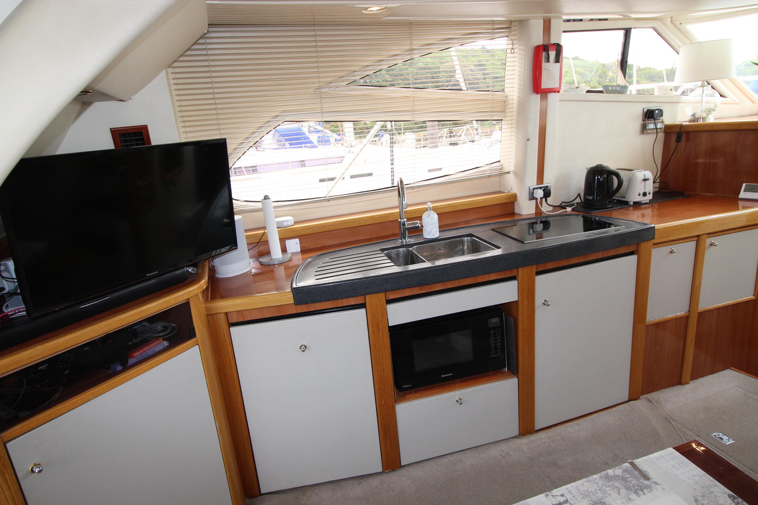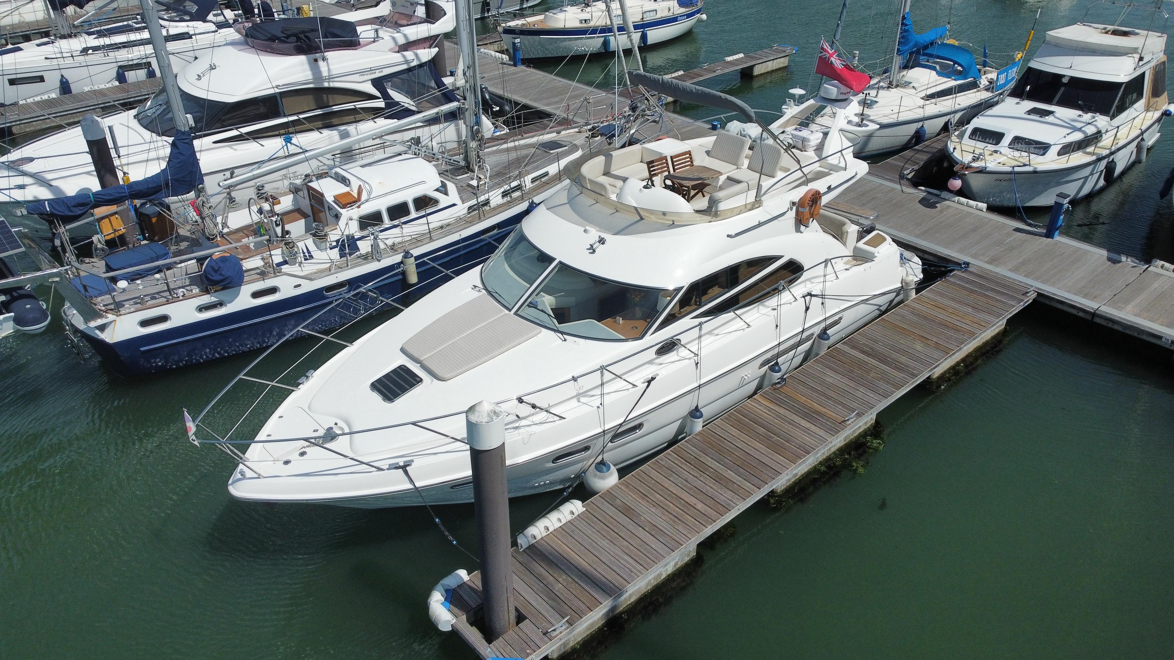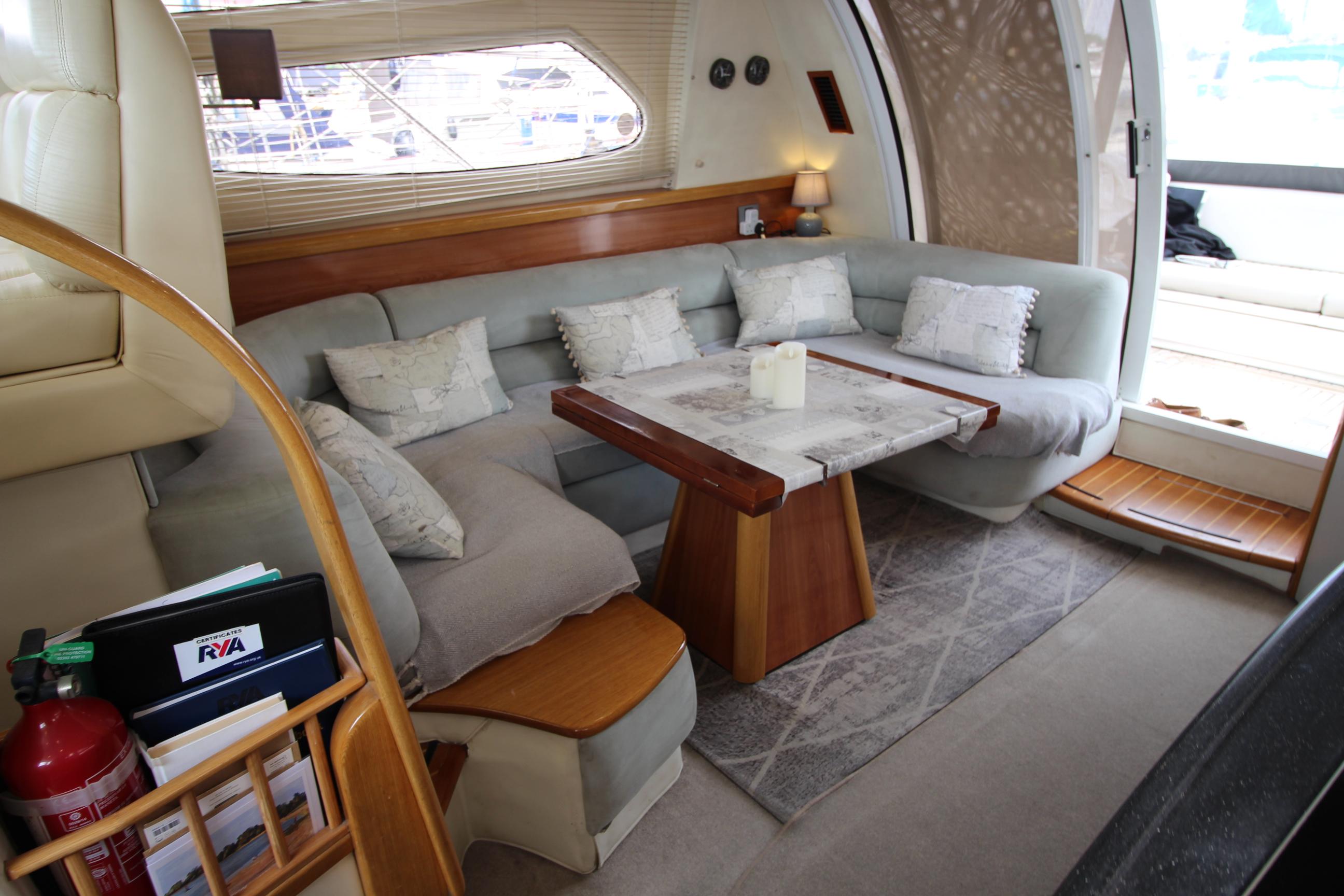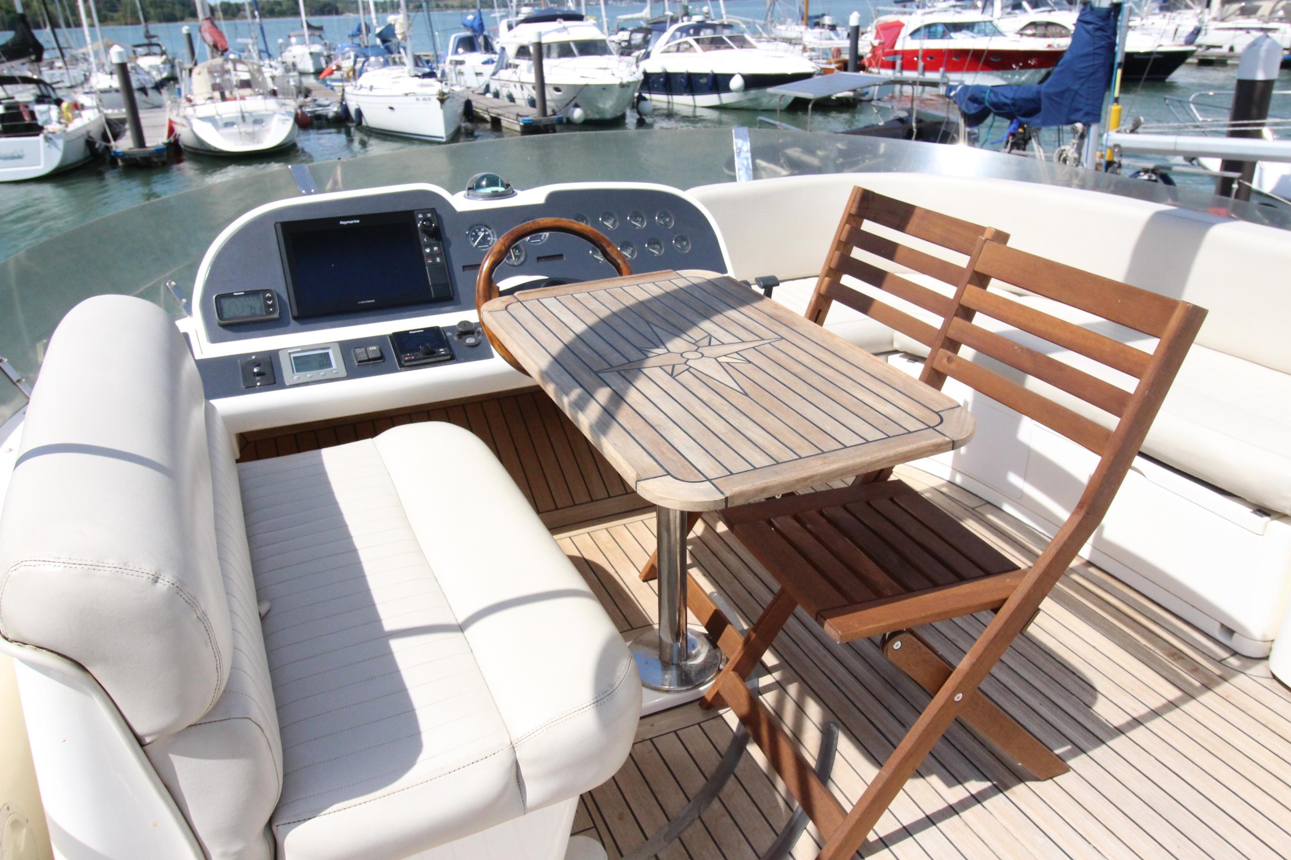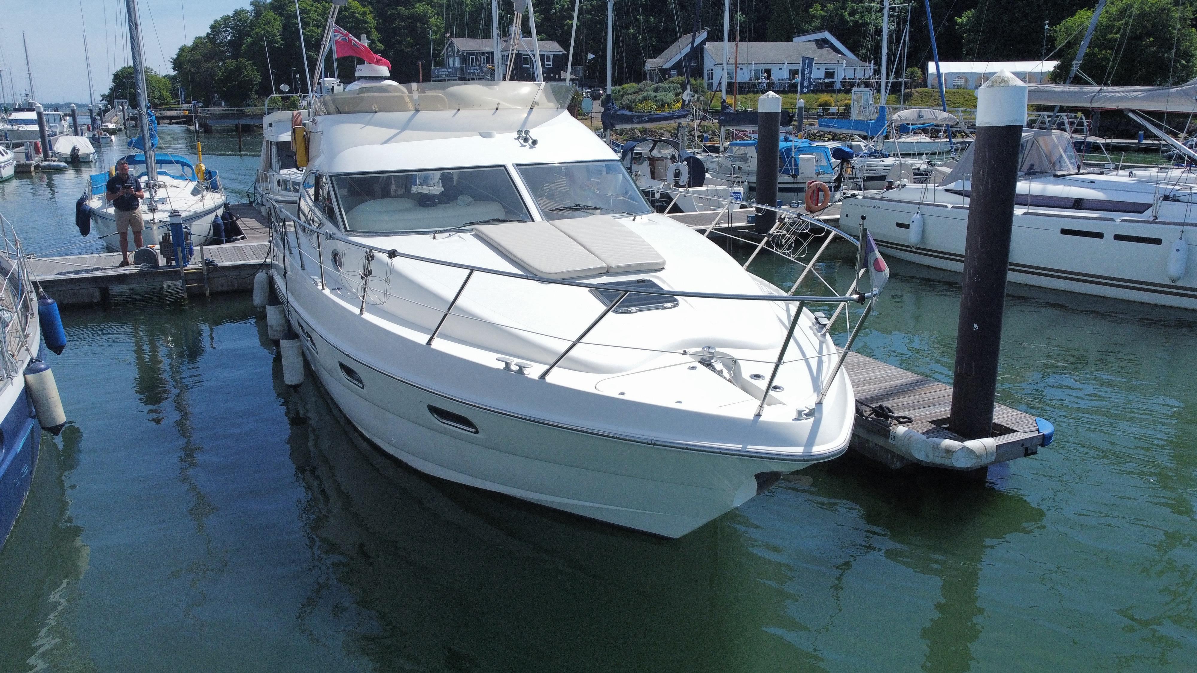 2003 model year Sealine F42/5, with twin Volvo TAMD 63P (2 x 370HP) Diesel engines with shaft drive. Full service booked in for June 2025. This lovely three cabin boat has been equipped with Bow and stern thruster, Passarell, Generator, Heating, air conditioning and New Ray-marine GPS chart plotter on the flybridge, making her an Ideal place to enjoy time on the water with friends and family. The port-side galley is well equipped with a microwave, induction hob, fridge and sink that is on the same level as the saloon making hosting guests a breeze.