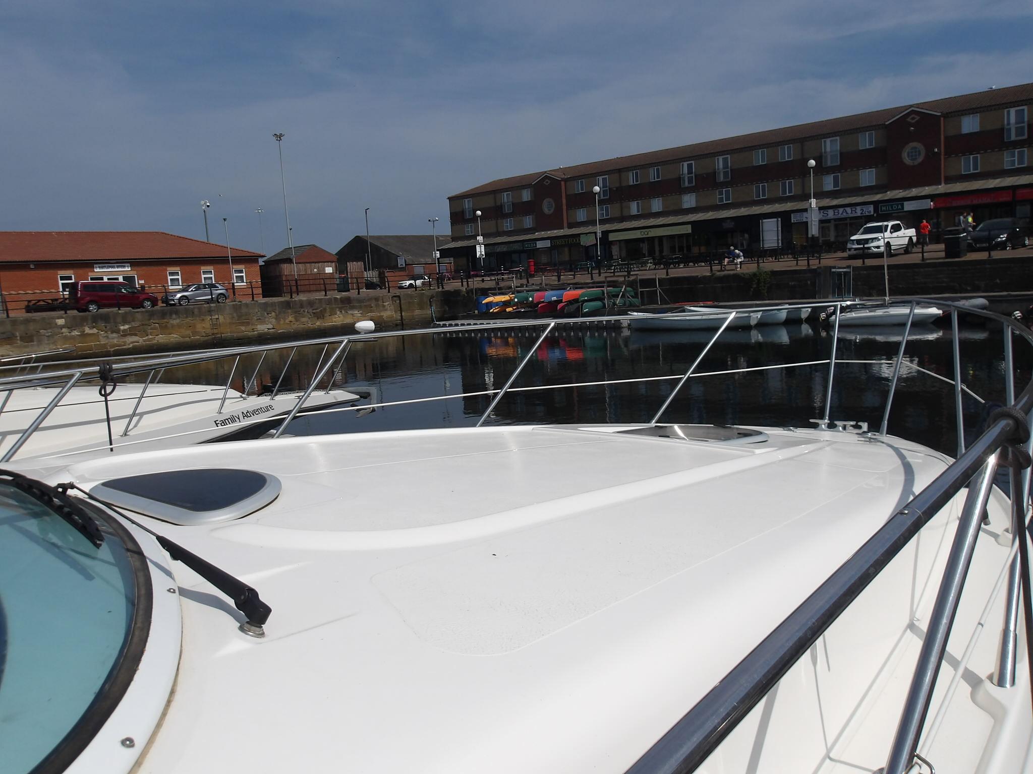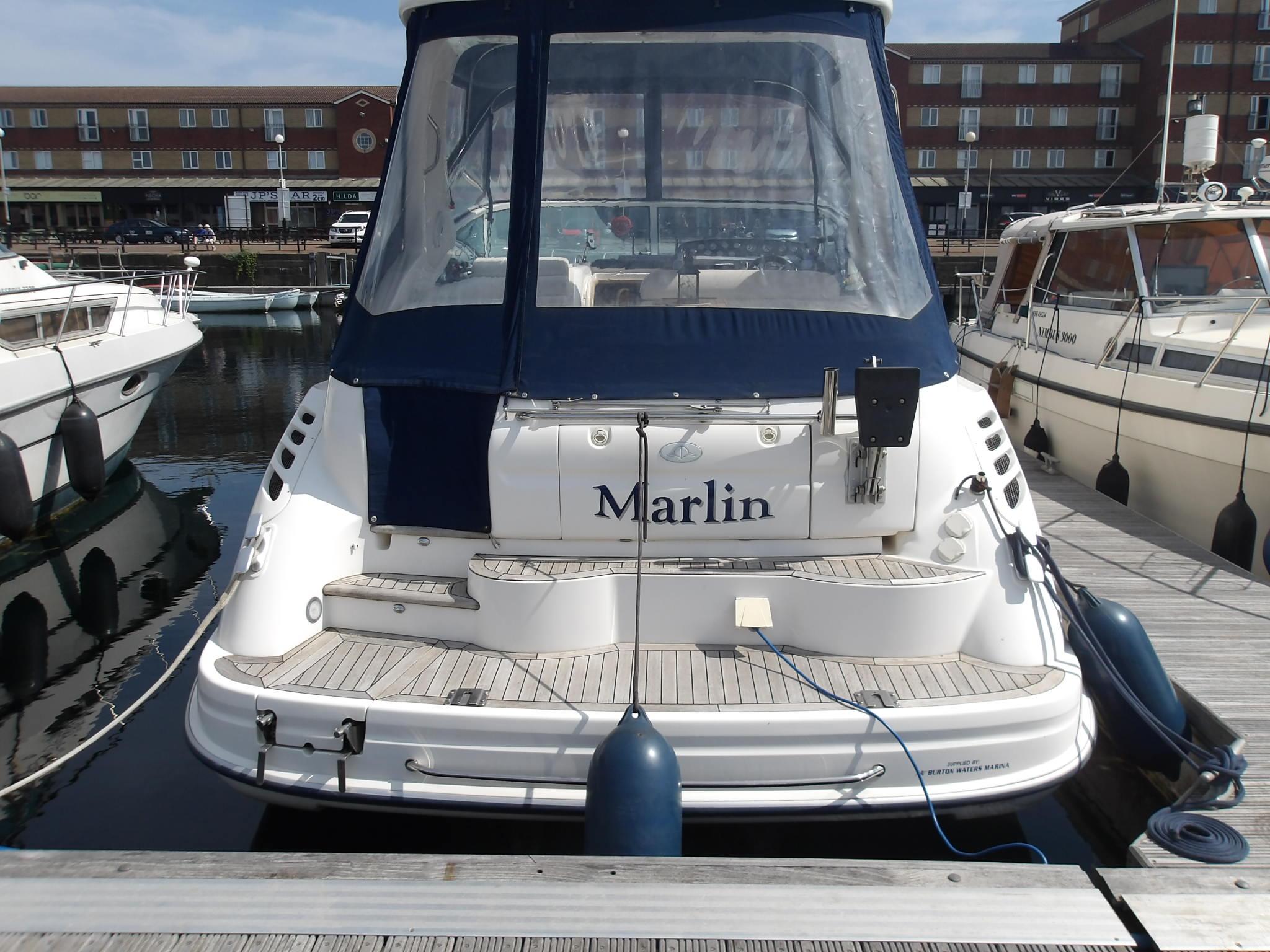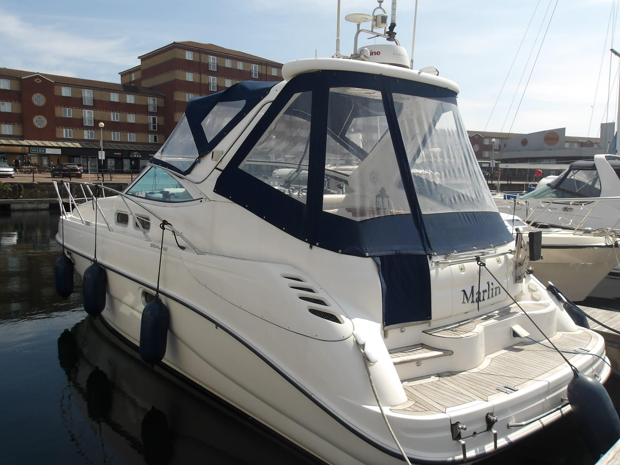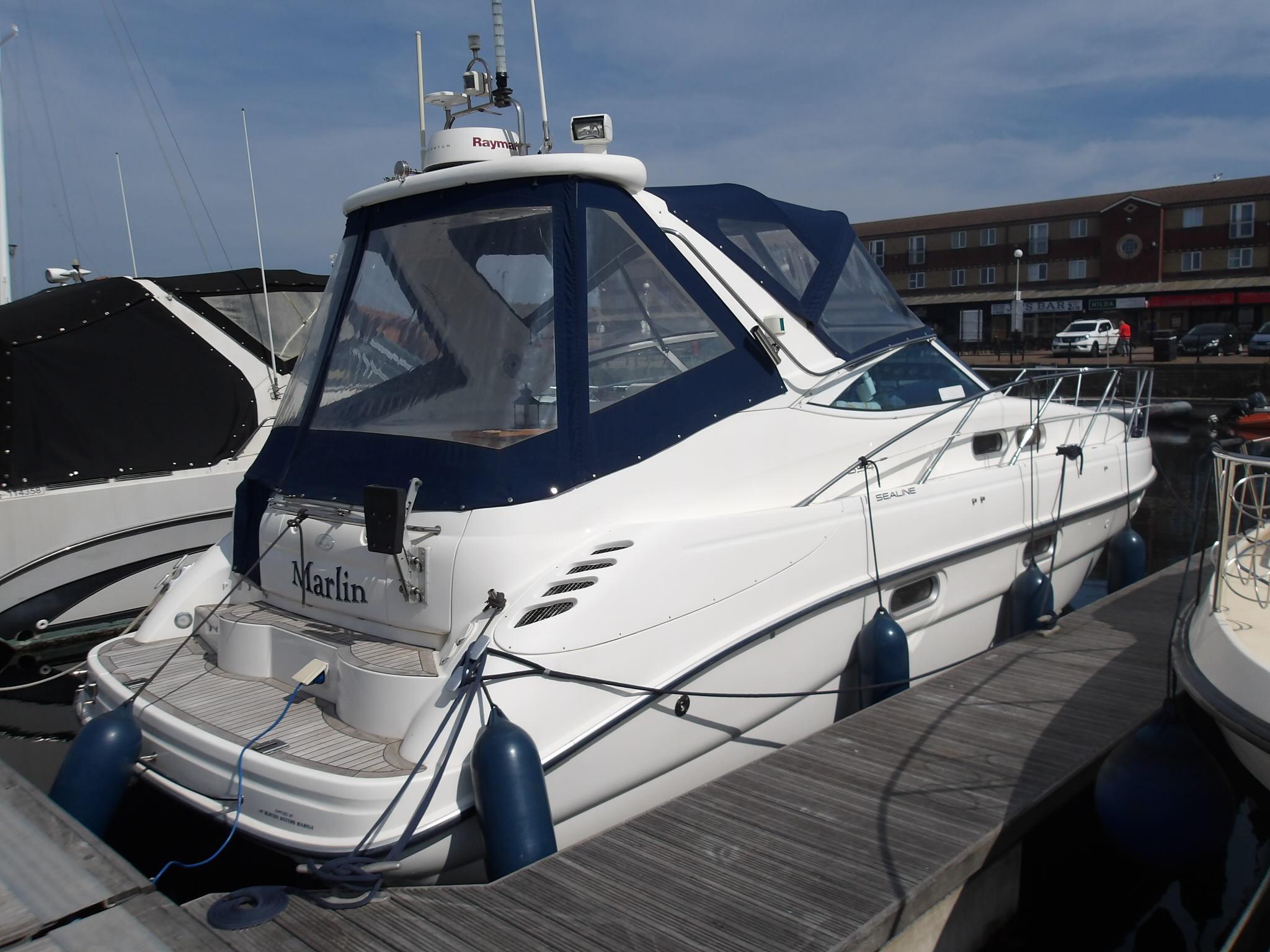 2005 Sealine S34, two owner’s since new and with the rare Volvo Penta KAD43 230BHP diesel engines with only 450 hours. Excellent accommodation with 6 berths in 2 cabins. The boat benefits from an upgrade to Raymarine Axiom Chart plotter and radar. Spacious cockpit benefits from wet bar, fridge and is covered by full cockpit cover. specification includes, Axiom Raymarine chart plotter, Raymarine speed/depth log, VHF, Eberspacher heating, electric toilet to holding tank, stainless steel davits, trim tabs, electric windlass, remote spotlight, Hinged light arch, Folding Teak table, Fusion DAB bluetooth stereo system upgrade plus remote on helm dash, Victron bluetooth battery monitor, Electronic battery charger, USB and TV aerial outlet in forward cabin plus TV bracket, LED lighting throughout including Anchor light, TVs included, 4G Wifi on board antenna, Part Exchange Considered. PLEASE NOTE WE ARE `WAITING UPDATED PHOTO’S FROM THE CURRENT OWNER