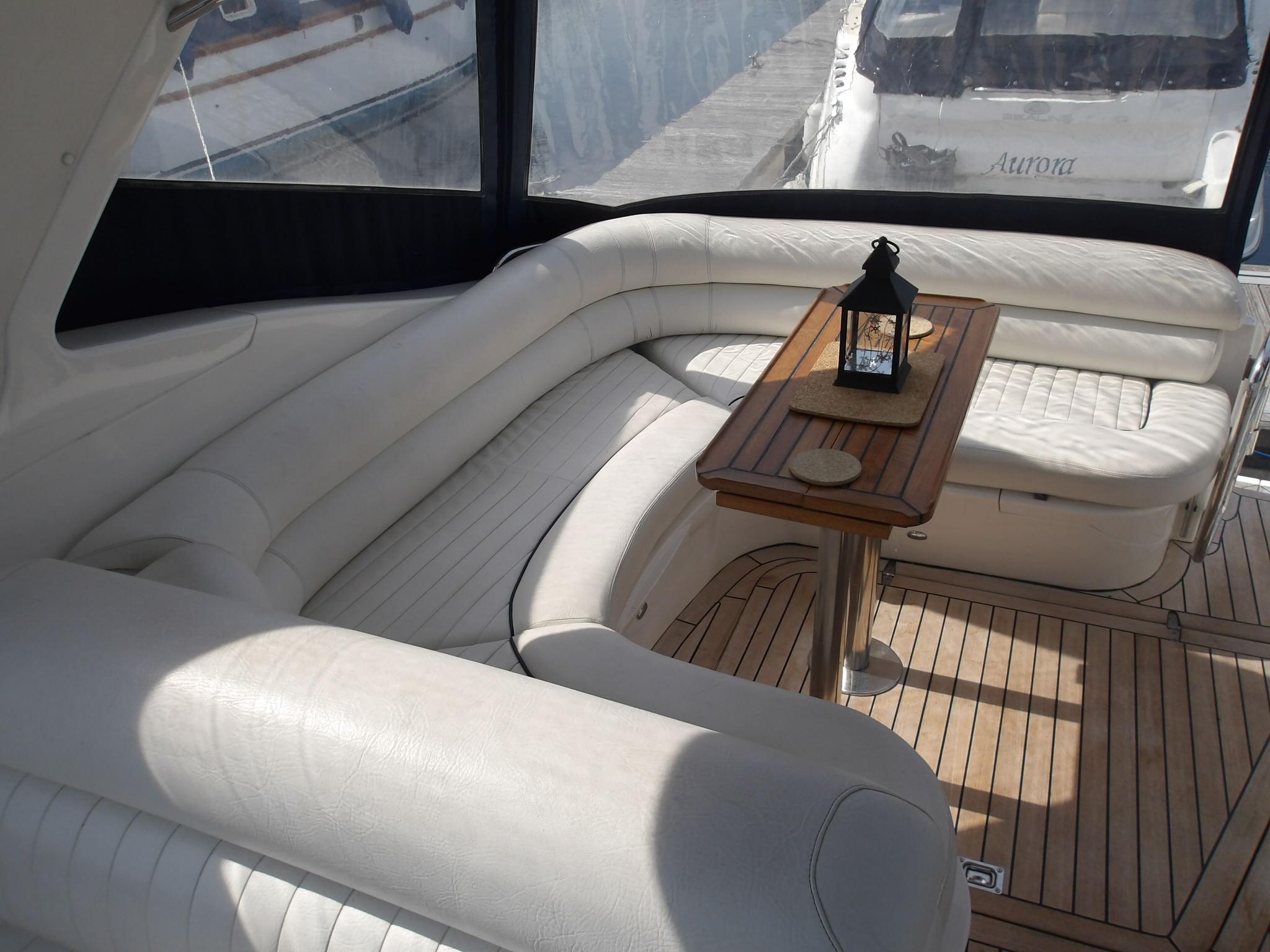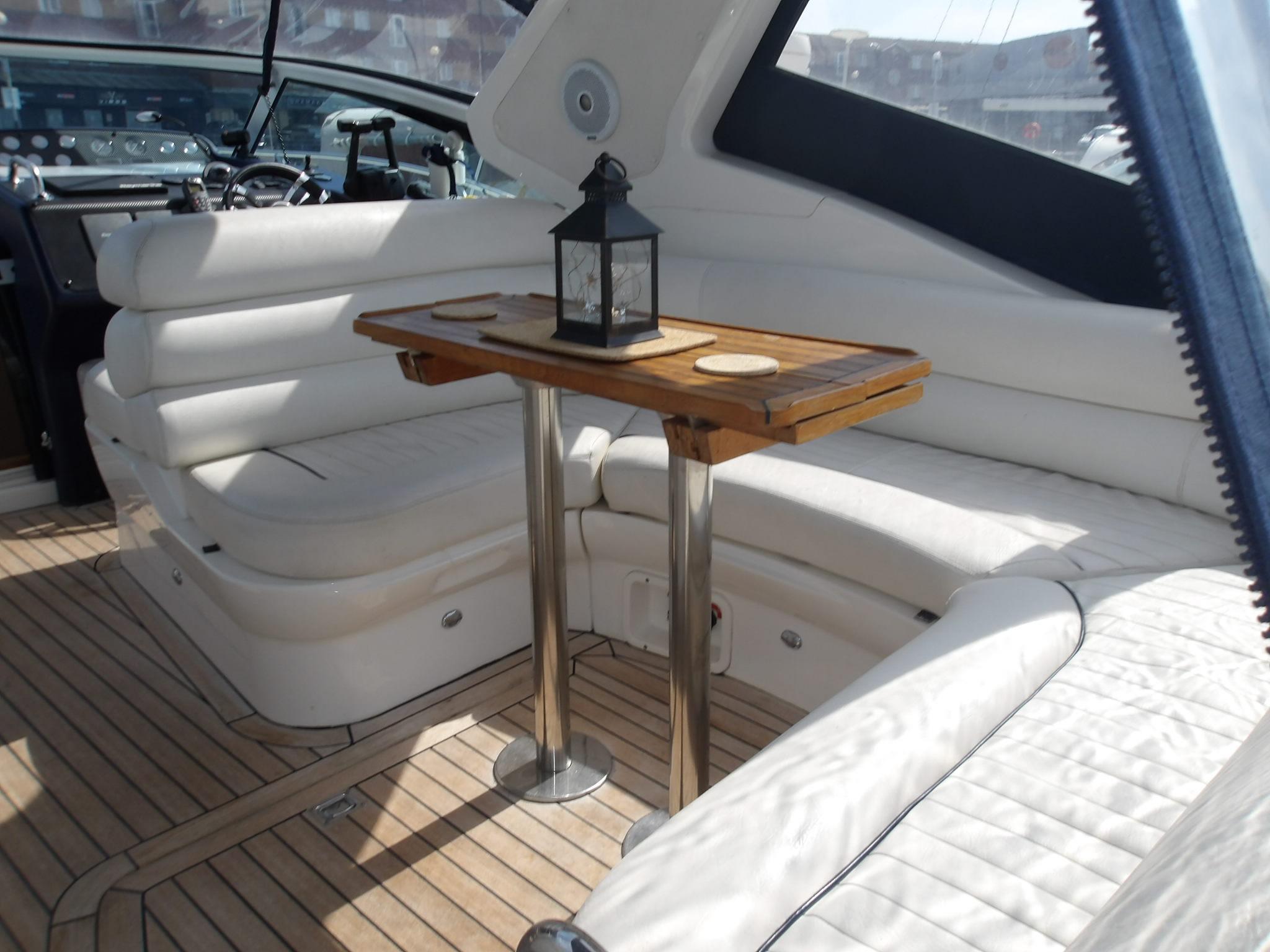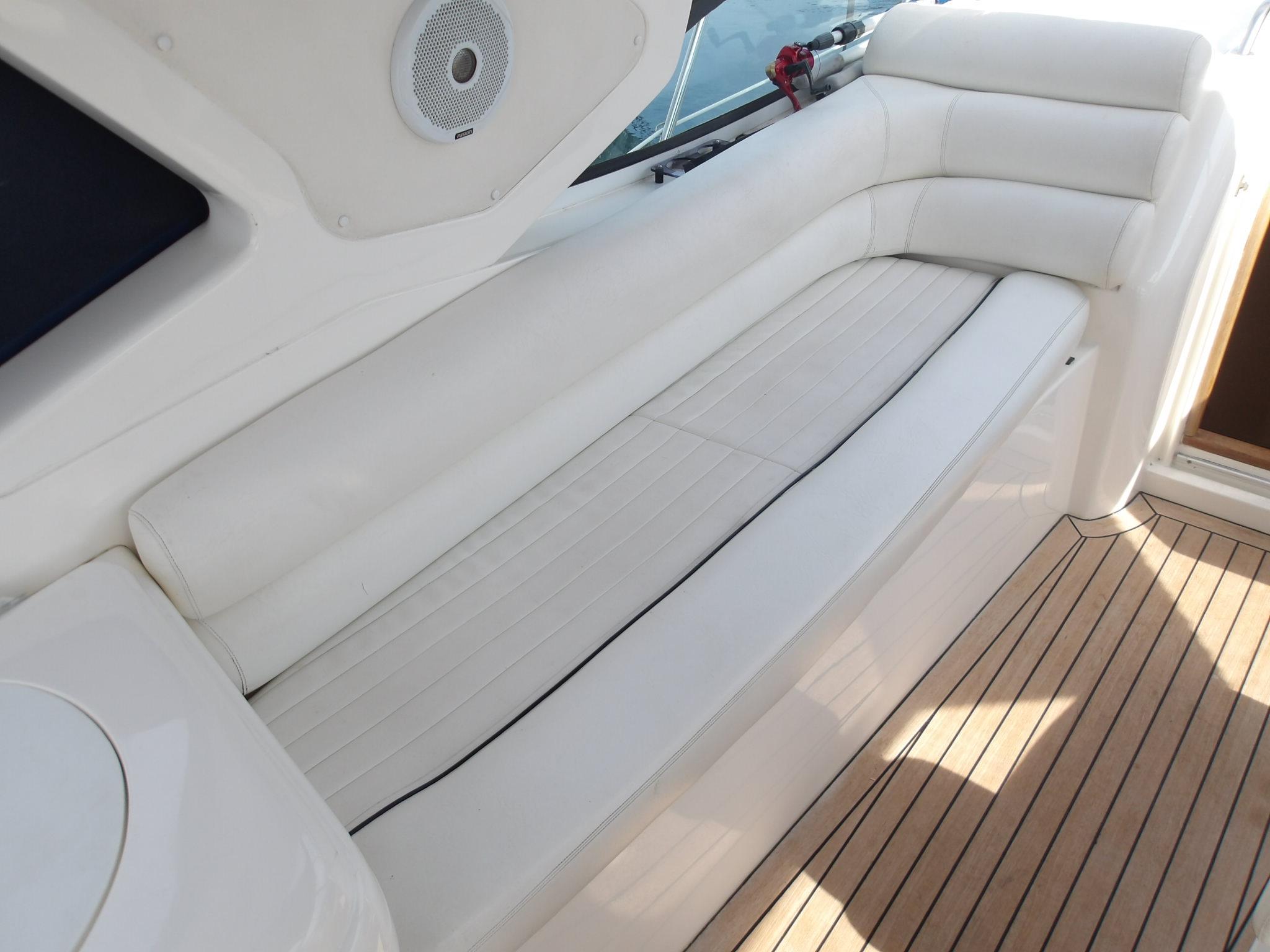 The boat is a stunning example of a Sealine S34 with the bigger engine option and upgraded navigation equipment with only three owners since new.