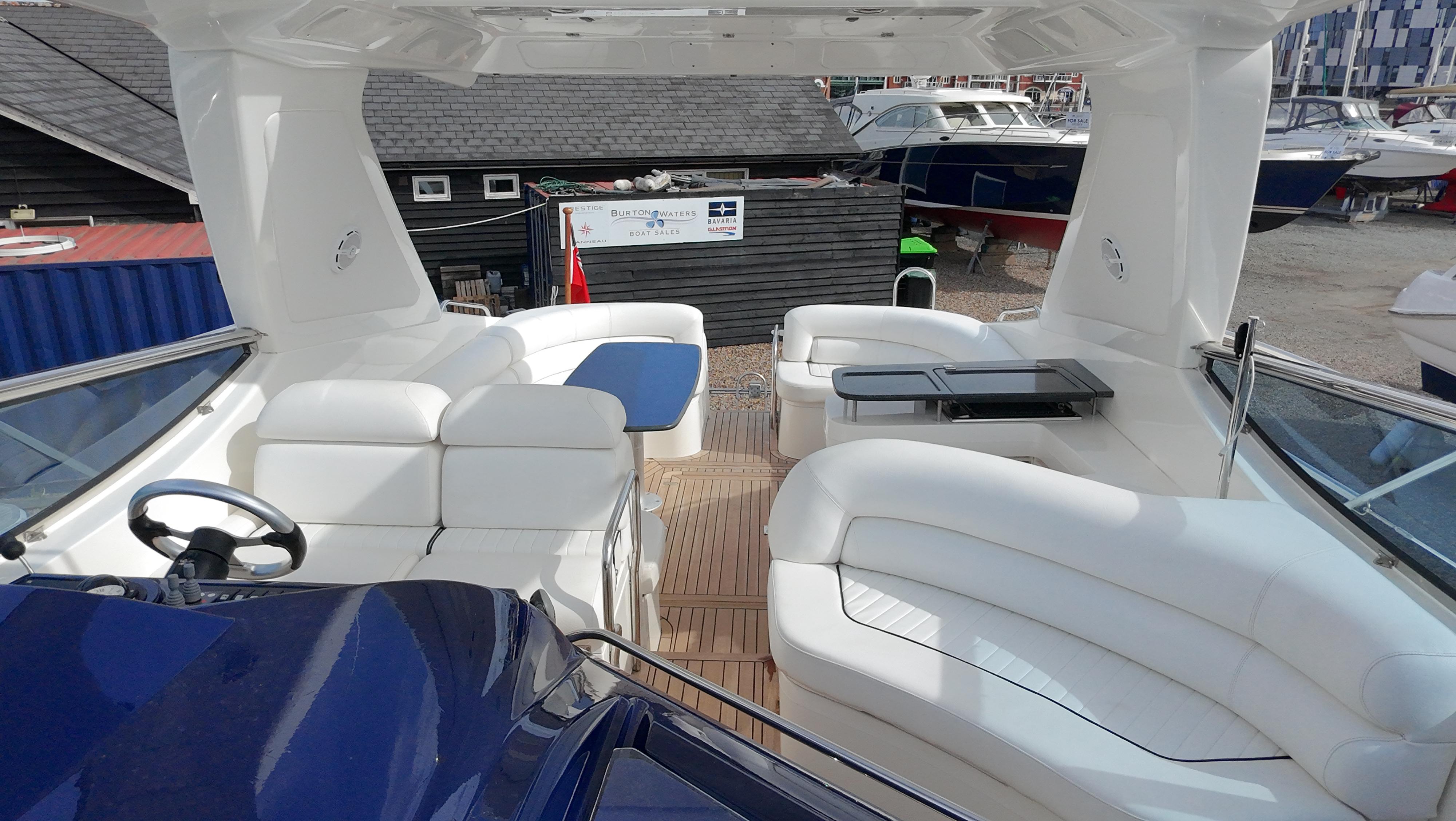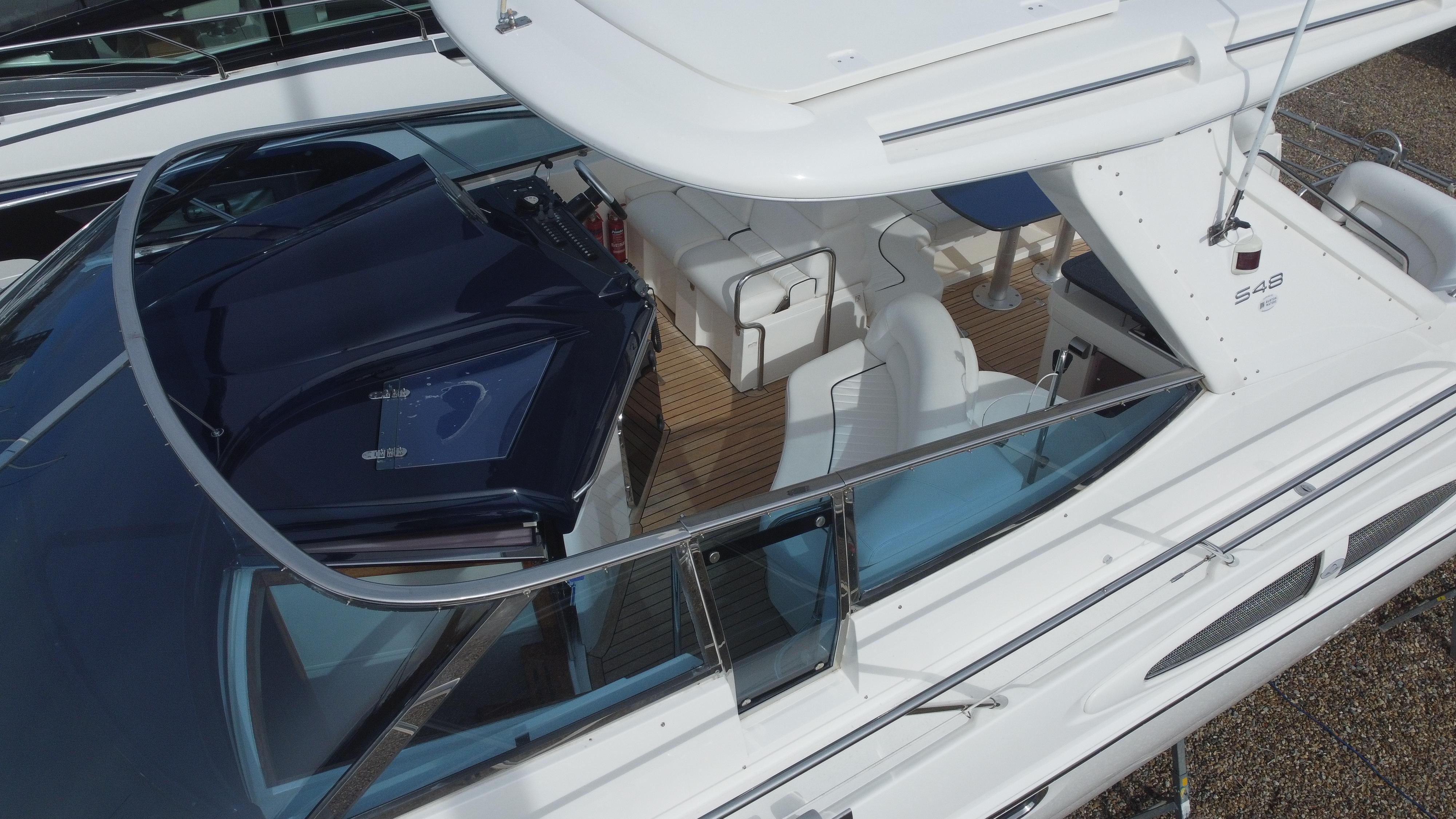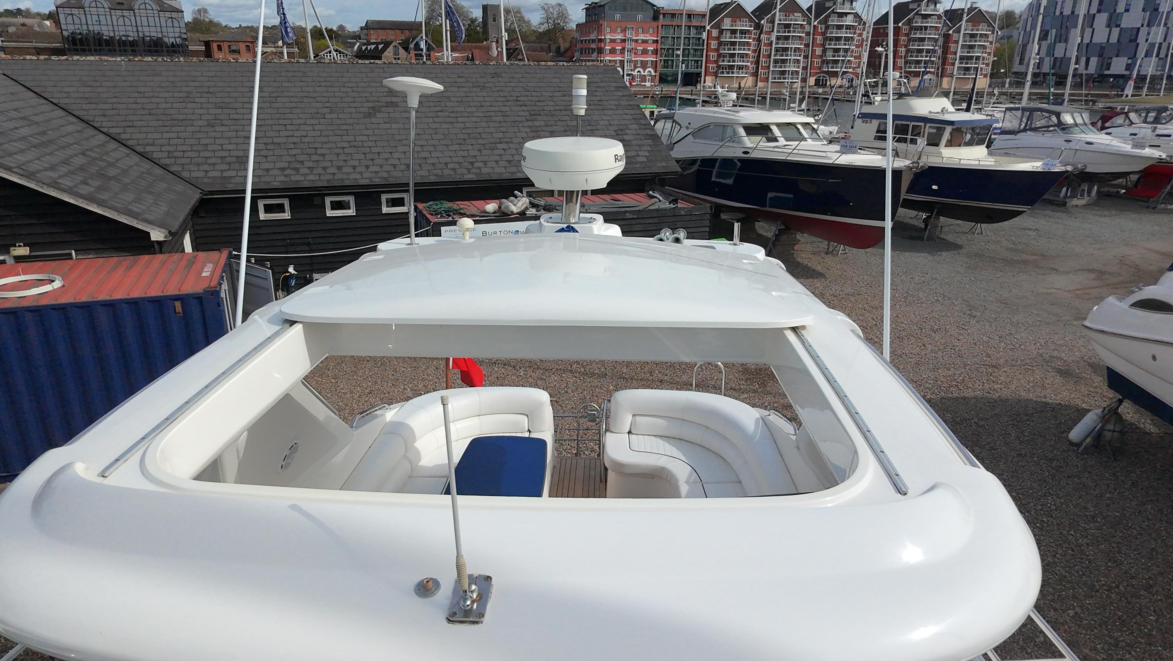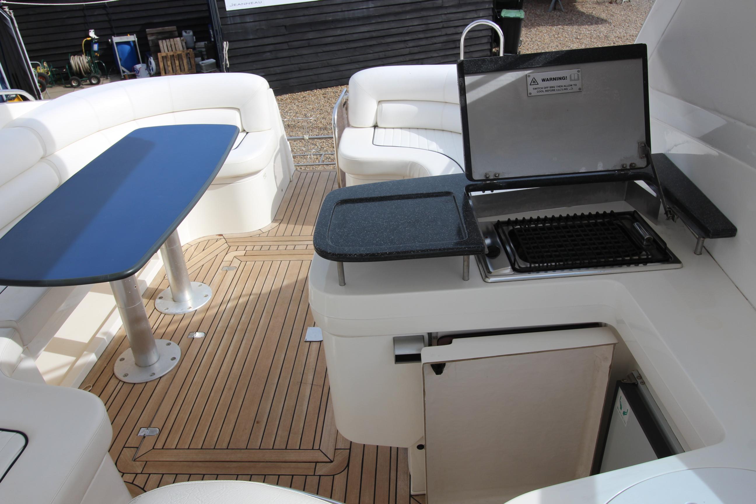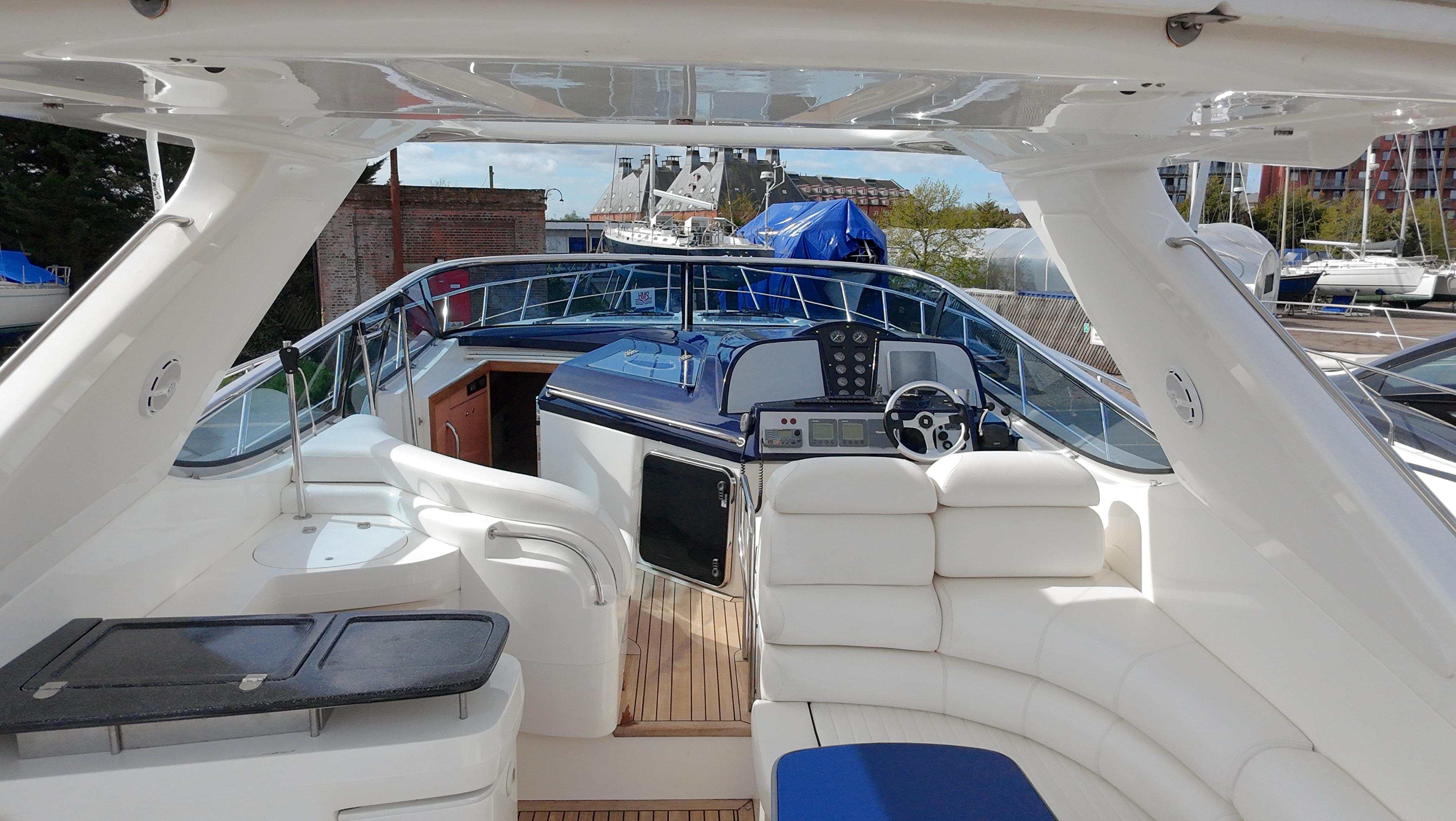 Sealine S48 2003 model, 2002 build and equipped with twin Volvo Penta TAMD75 on electronic throttles. The vessel also benefits from having a bow and stern thruster, making her a very easy boat to manoeuvre in confined quarters, especially with the remote. The vessel offers 6 berths in two cabins with a convertible saloon. A very highly specified example of this offshore sports cruiser which offers good seagoing qualities and handling. This combines with an excellent accommodation package which offers 2 x double cabins with a midships master with an en-suite toilet and a separate shower room. The forward cabin en suite also has saloon dayboat access. A fully equipped electric galley, ample cockpit space for entertaining with a wet bar, fridge, and BBQ, all covered by the electric sliding hardtop roof. The aft retractable watersports platform with chocks that can take a tender and lower it into the water. The vessel is also equipped with air conditioning, diesel heating and a generator. Part exchange considered and viewings 6 days a week.