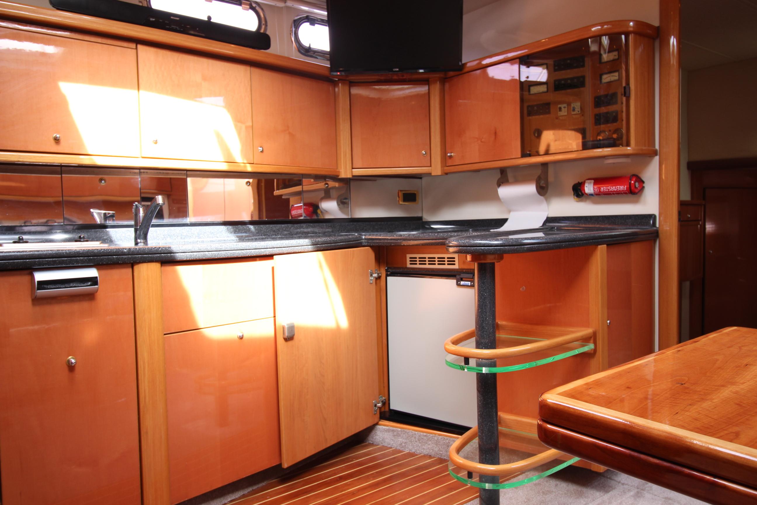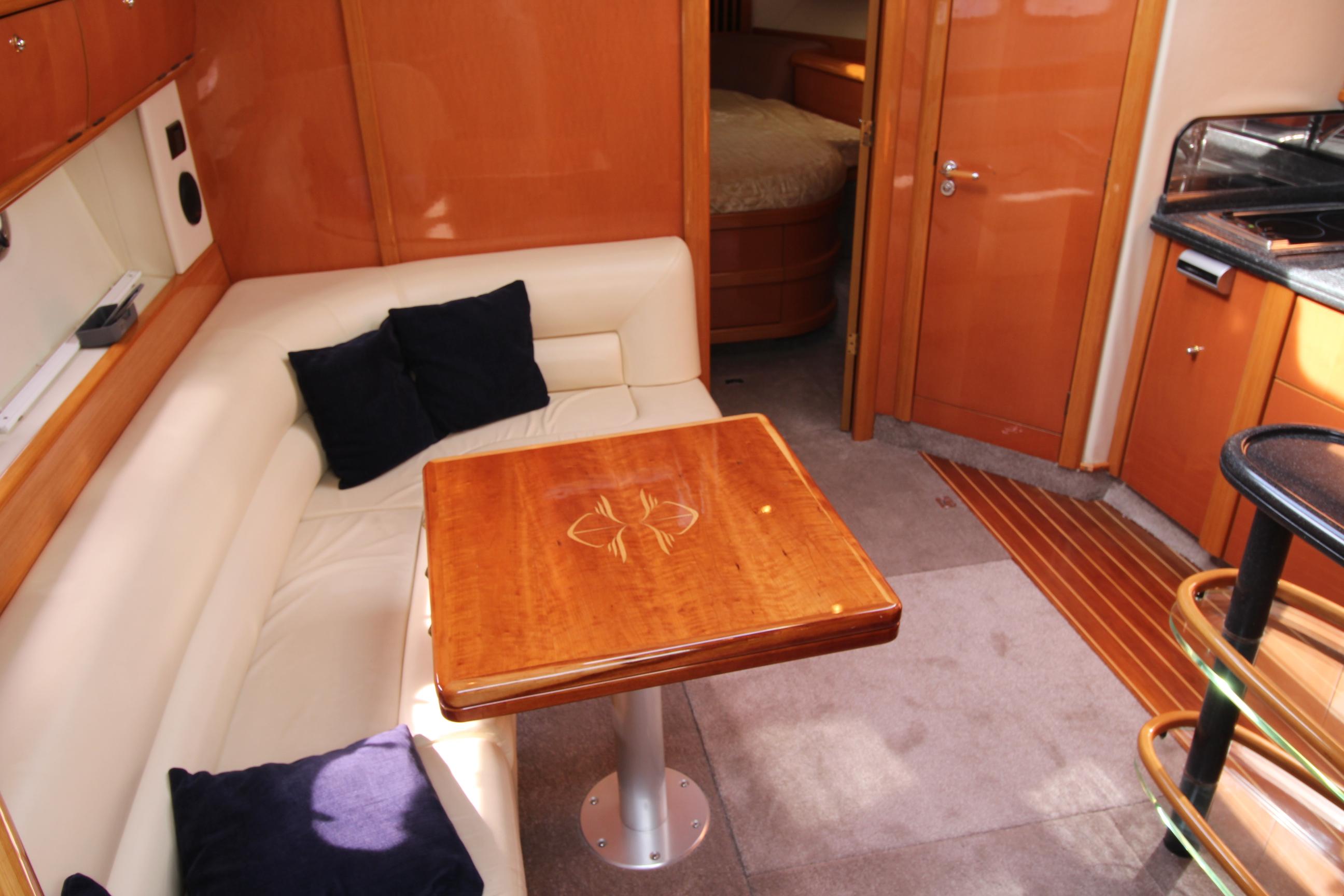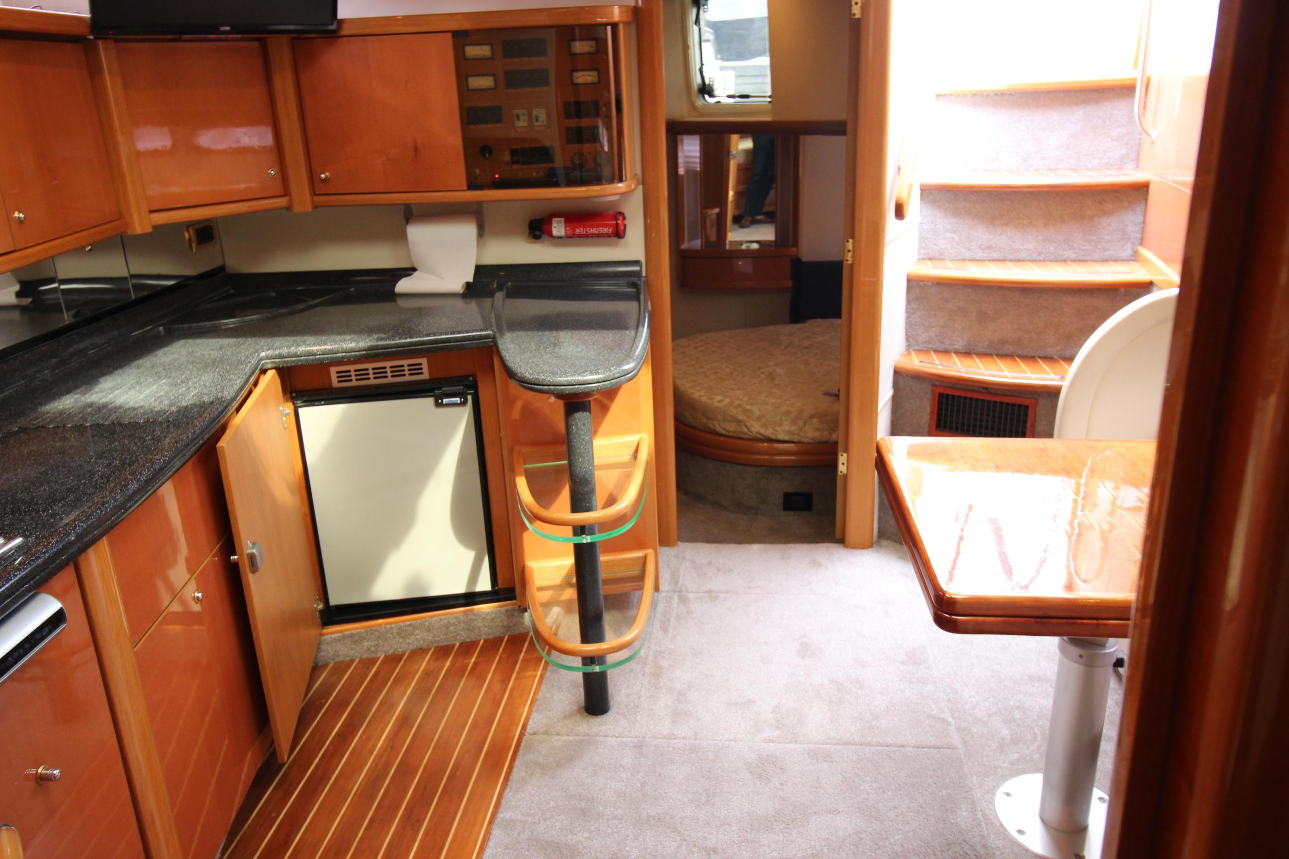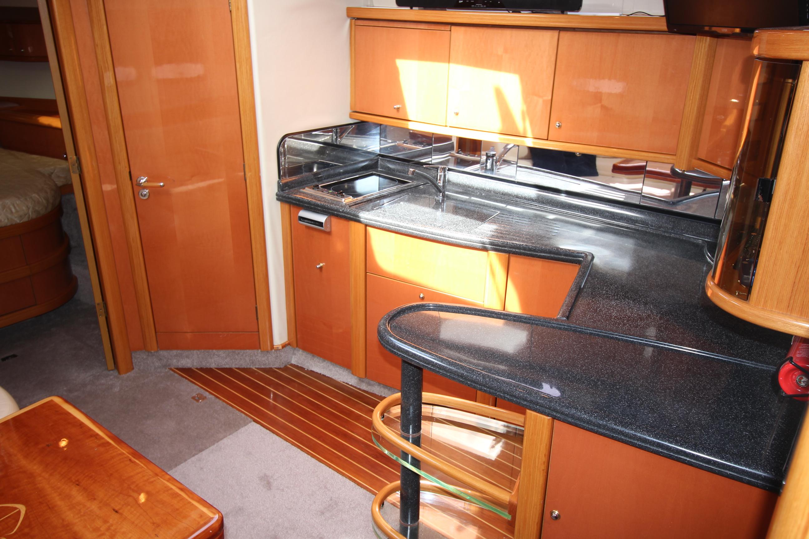 Sealine S48 2003 model, 2002 build and equipped with twin Volvo Penta TAMD75 on electronic throttles. The vessel also benefits from having a bow and stern thruster, making her a very easy boat to manoeuvre in confined quarters, especially with the remote. The vessel offers 6 berths in two cabins with a convertible saloon. A very highly specified example of this offshore sports cruiser which offers good seagoing qualities and handling. This combines with an excellent accommodation package which offers 2 x double cabins with a midships master with an en-suite toilet and a separate shower room. The forward cabin en suite also has saloon dayboat access. A fully equipped electric galley, ample cockpit space for entertaining with a wet bar, fridge, and BBQ, all covered by the electric sliding hardtop roof. The aft retractable watersports platform with chocks that can take a tender and lower it into the water. The vessel is also equipped with air conditioning, diesel heating and a generator. Part exchange considered and viewings 6 days a week.