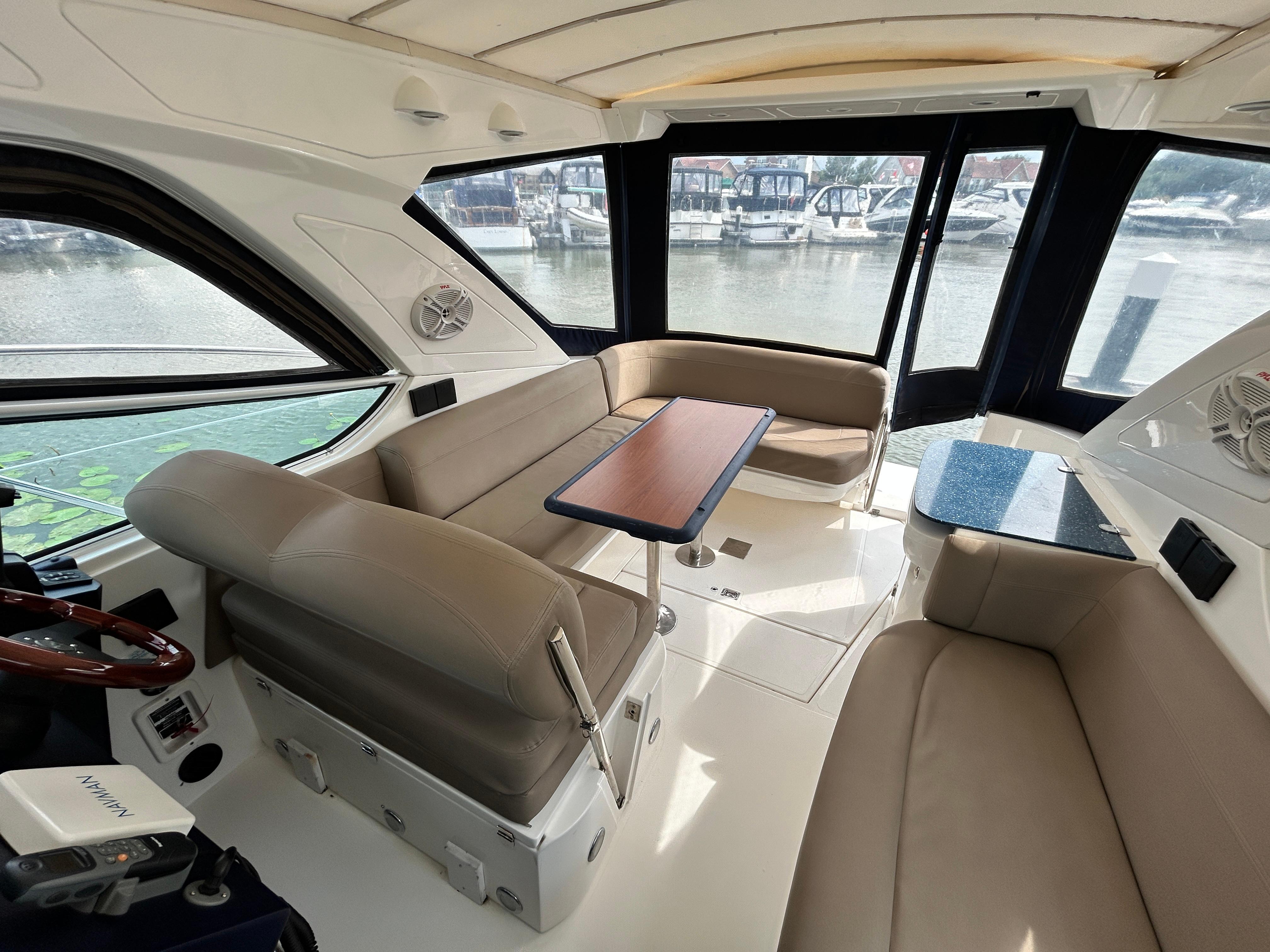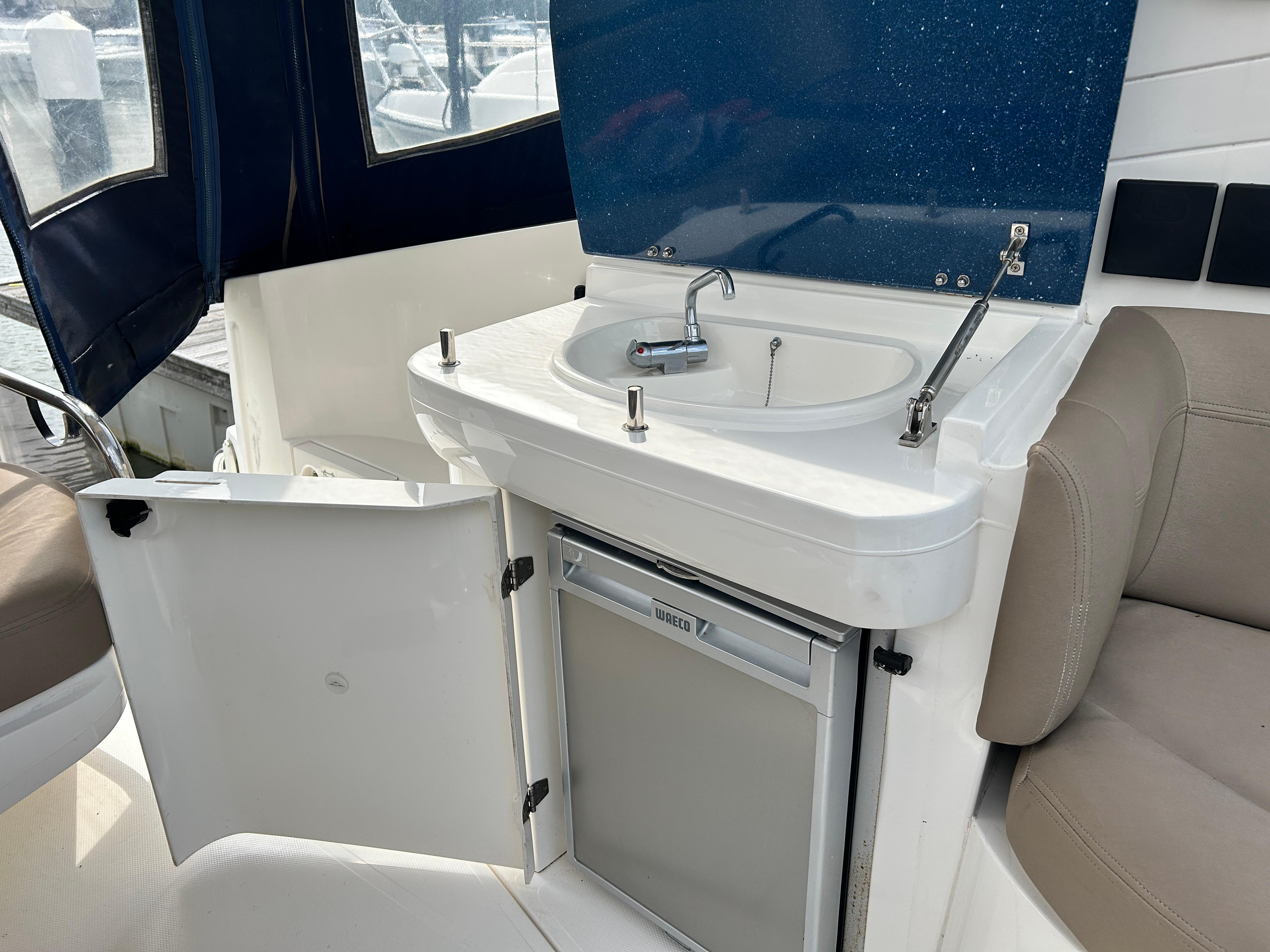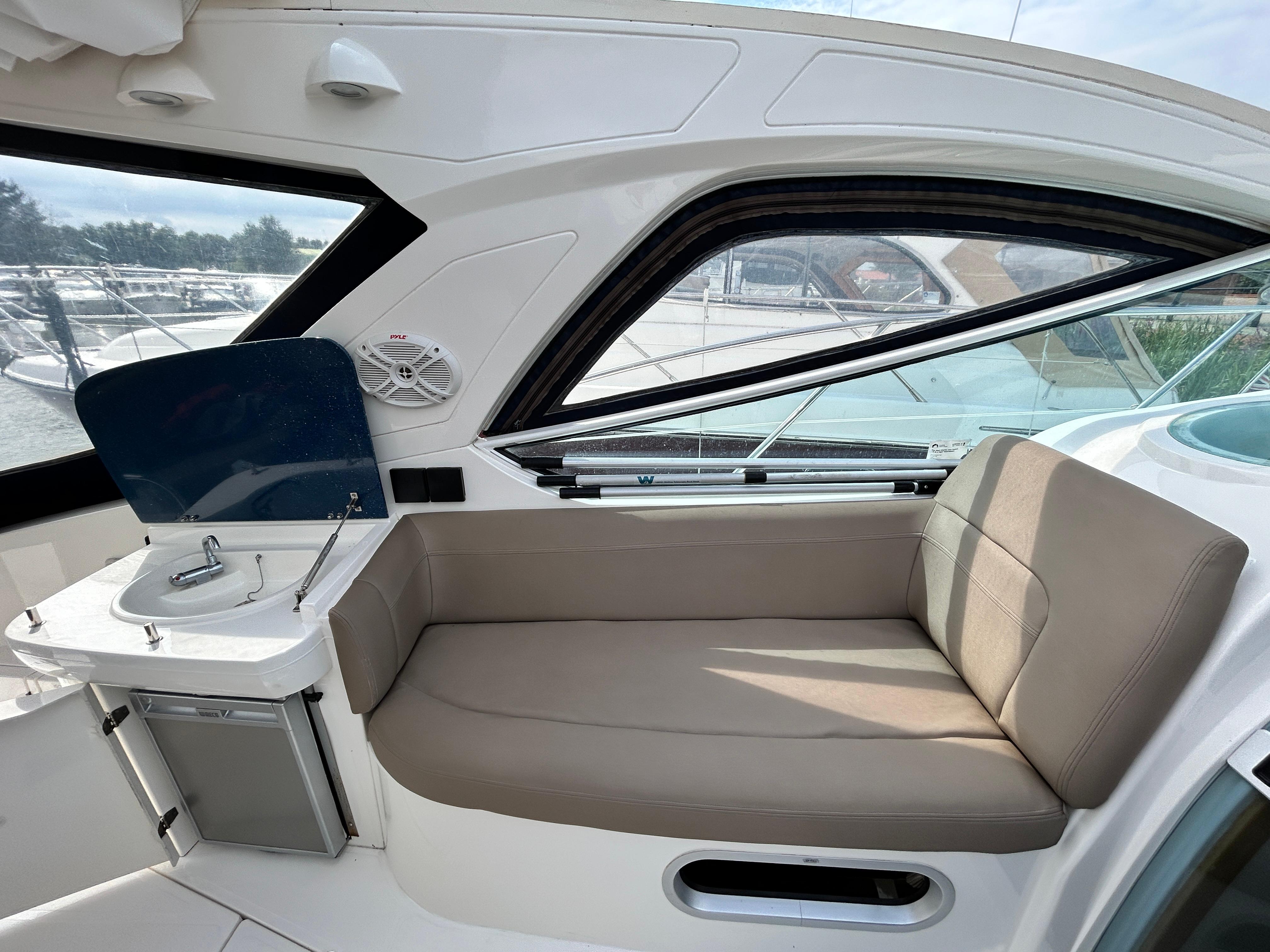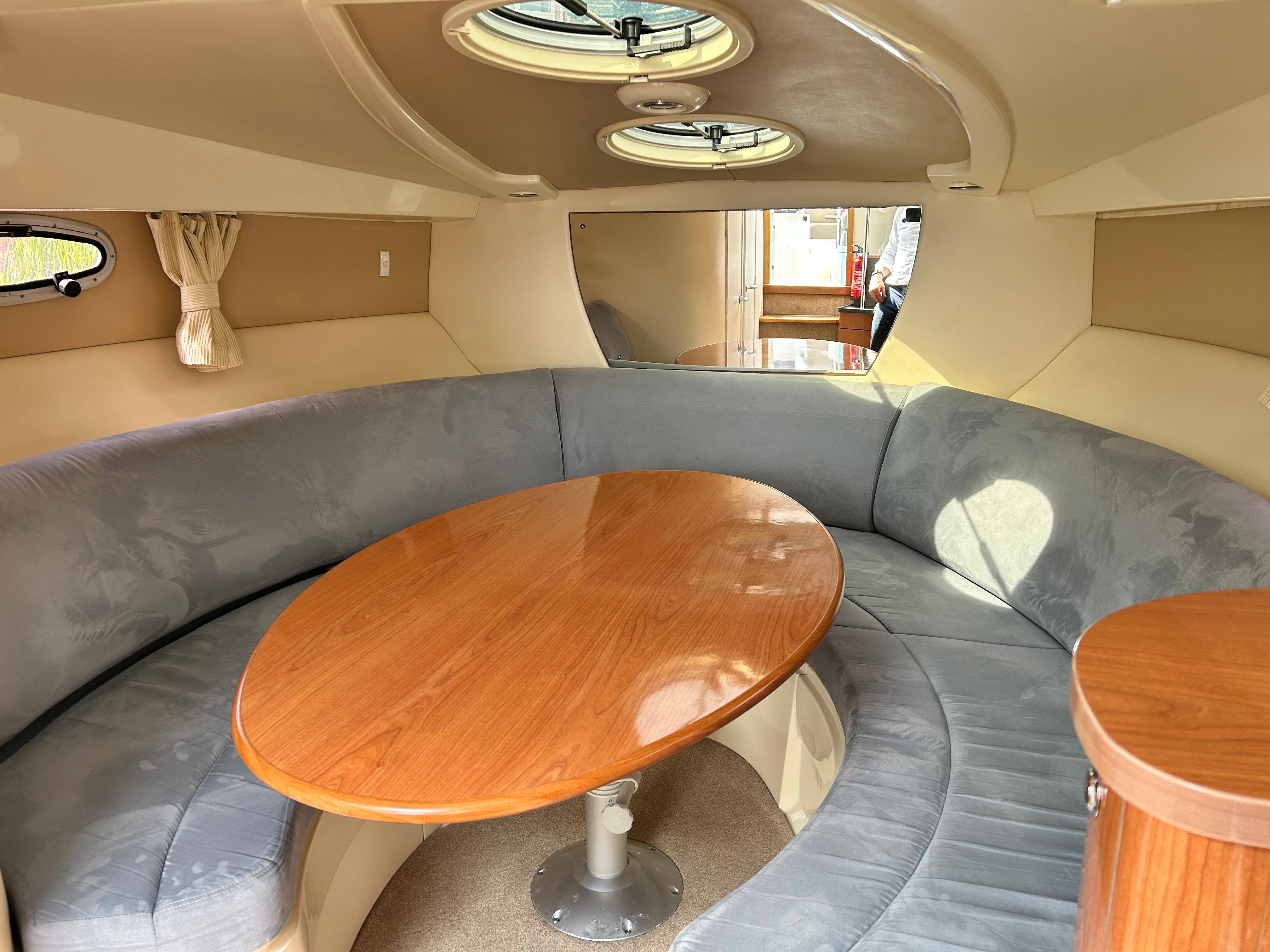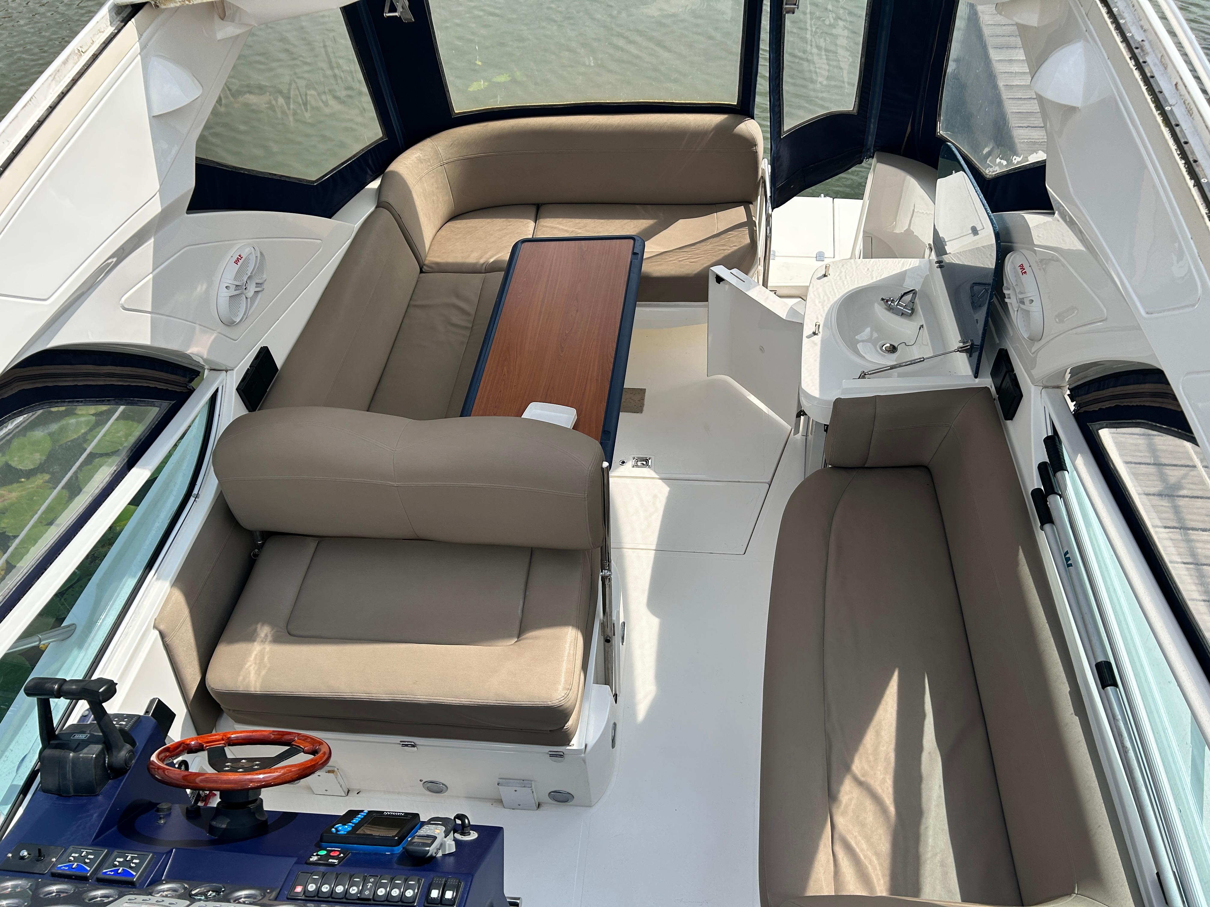 The 2006 Sealine SC29 is a highly regarded sports cruiser, powered by twin Volvo Penta D3 160hp diesel engines. It features Sealine’s innovative twin-stepped hull, allowing for two efficient cruising speeds, enhancing fuel economy and handling. This particular model includes a bow thruster, diesel heating, Raymarine VHF, Navman GPS, trim tabs, and recently upgraded cockpit upholstery, Engine and outdrive service in June 2025—making it well-prepared for immediate use.