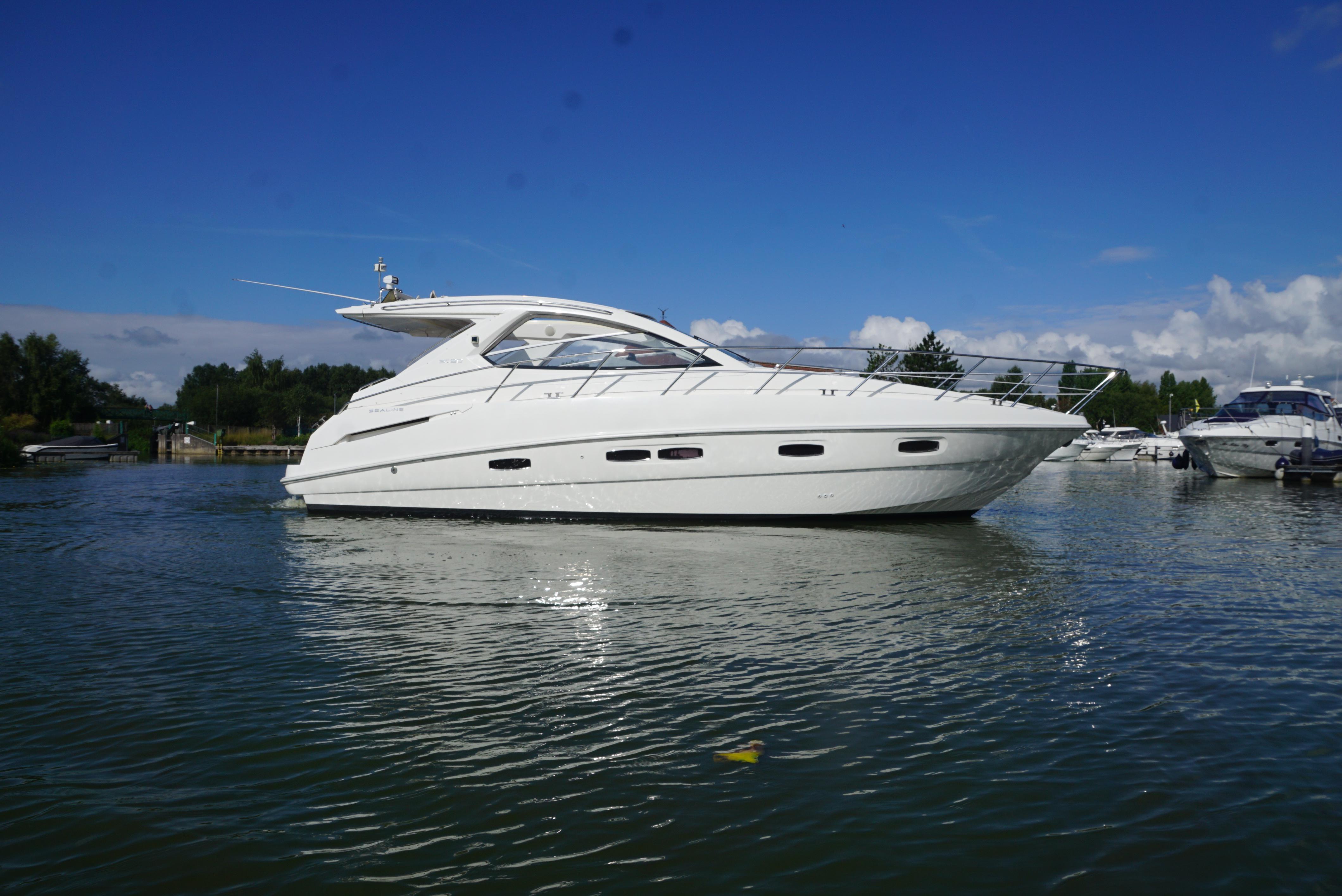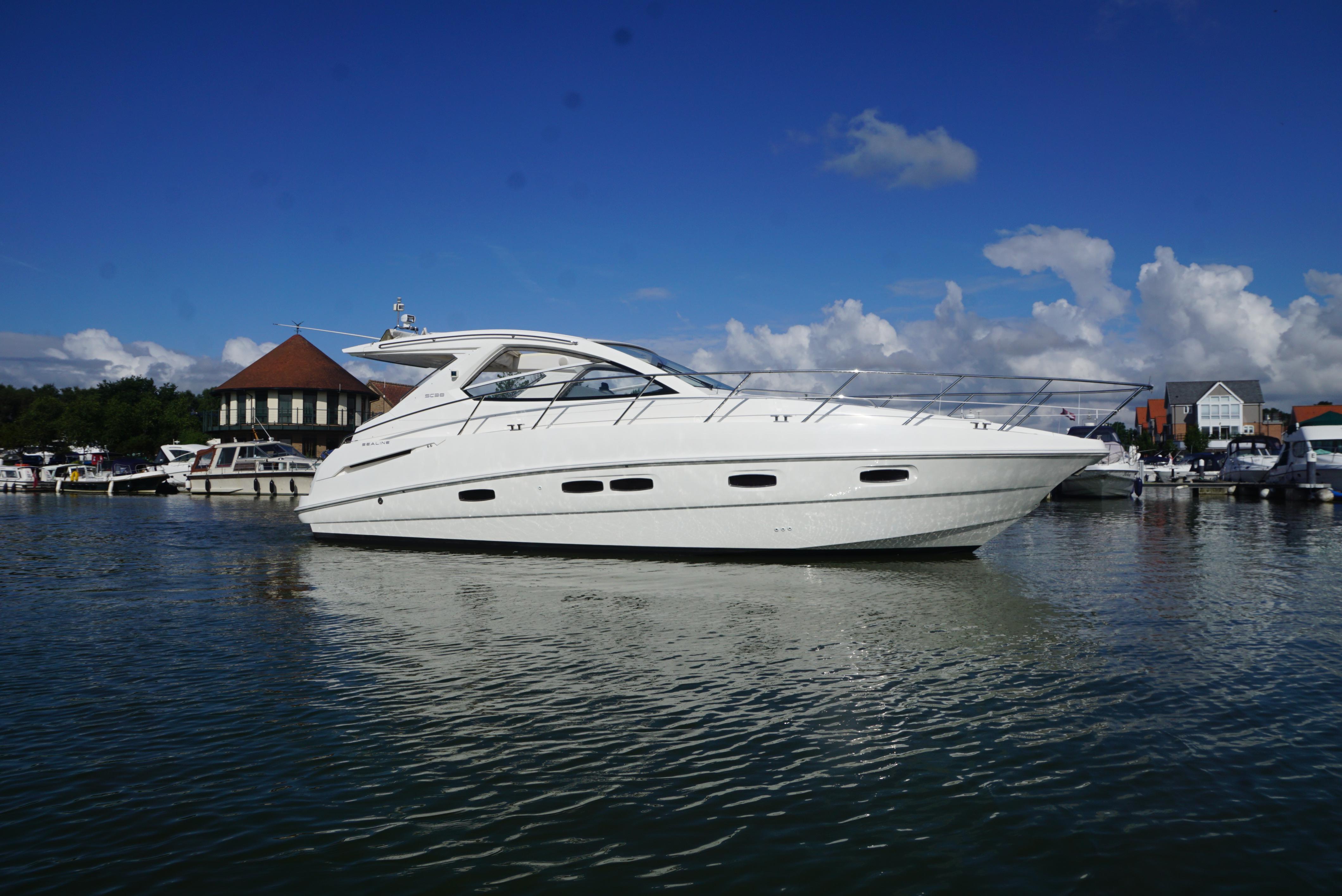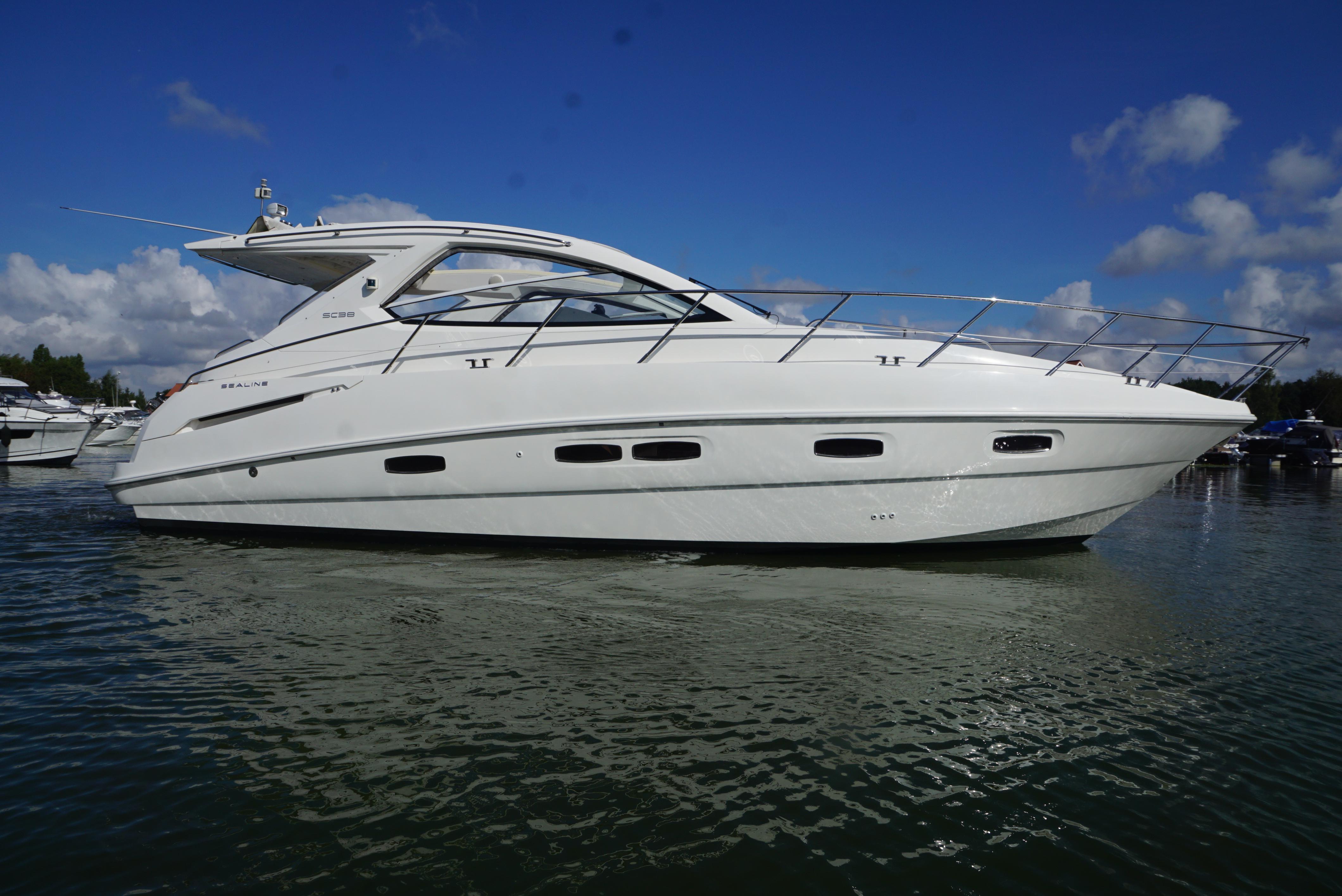 2009, Sealine SC38 powered by Twin Volvo Penta D4’s 260hp Diesel engines, equipped with a bow thruster to ensure ease when manoeuvring. This Sealine has only covered 287 hours, making it a low-hour example. The aft offers a spacious open cockpit offering excellent seating space and generous living accommodation, and it also includes a wet bar and fridge. The interior provides a modern, light and stylish saloon area perfect for spending time and relaxing in the evenings. The SC38 features a large, fully equipped galley. The accommodation includes an Owner’s cabin with a large island double bed, en-suite and an aft cabin with 3 permanent fixed berths.