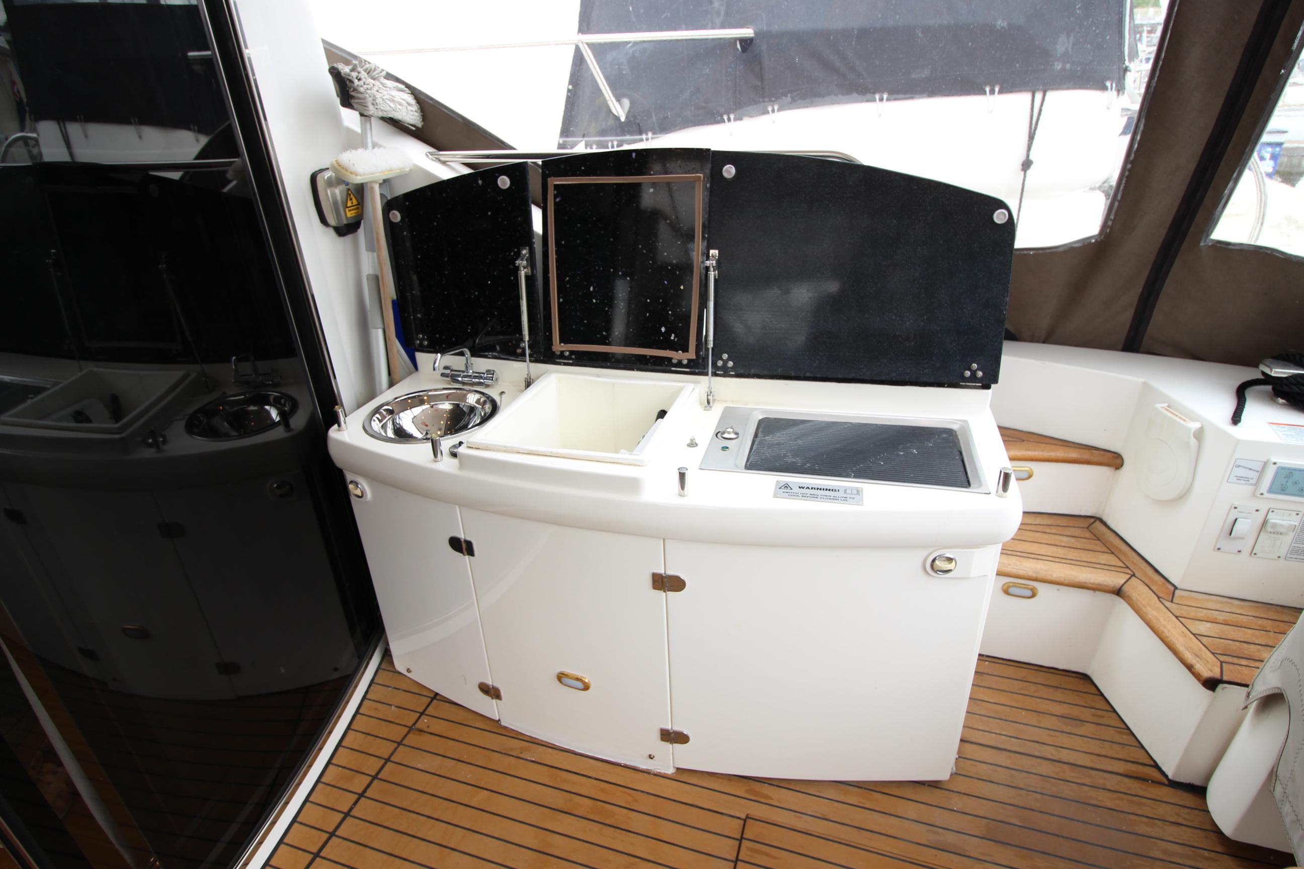 The Sealine T50 offers 6 berths with 2 heads in 3 separate cabins with a midship master cabin with double berth and ensuite. Forward vip master cabin with double berth and a 3rd cabin with either 2 singles or a double berth. A raised saloon offering a 360 view from inside the vessel as well as a separate door way and ladder to the engine room. Specification includes: 3 chart plotters, Radar, VHF, Auto pilot, 2 x fridges, Freezer, Diesel heating, Air con, Generator, Inverter, Bow thruster, Dish washer, Washer dryer, Fusion audio, Cockpit wet bar with BBQ, Passerelle, Extending cockpit system, Electric tables, Electric lift TV, Electric quiet flush toilets…