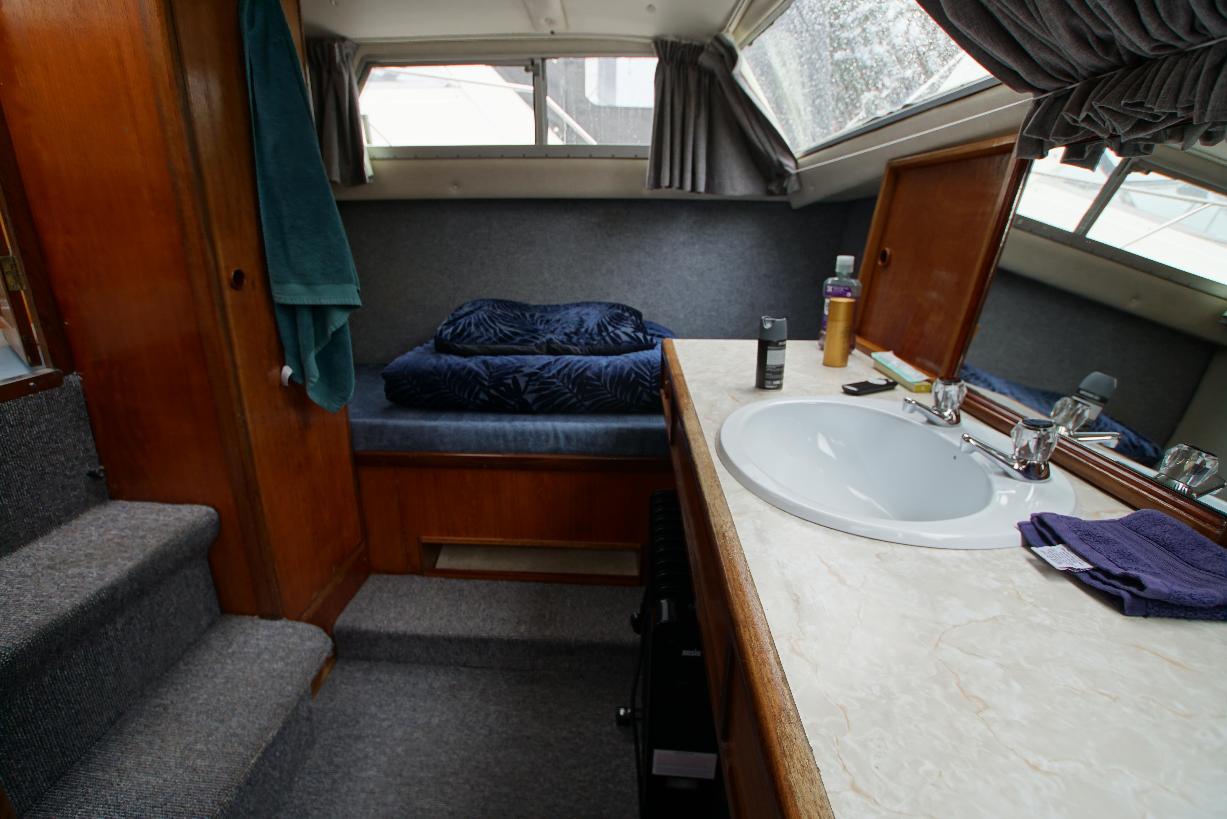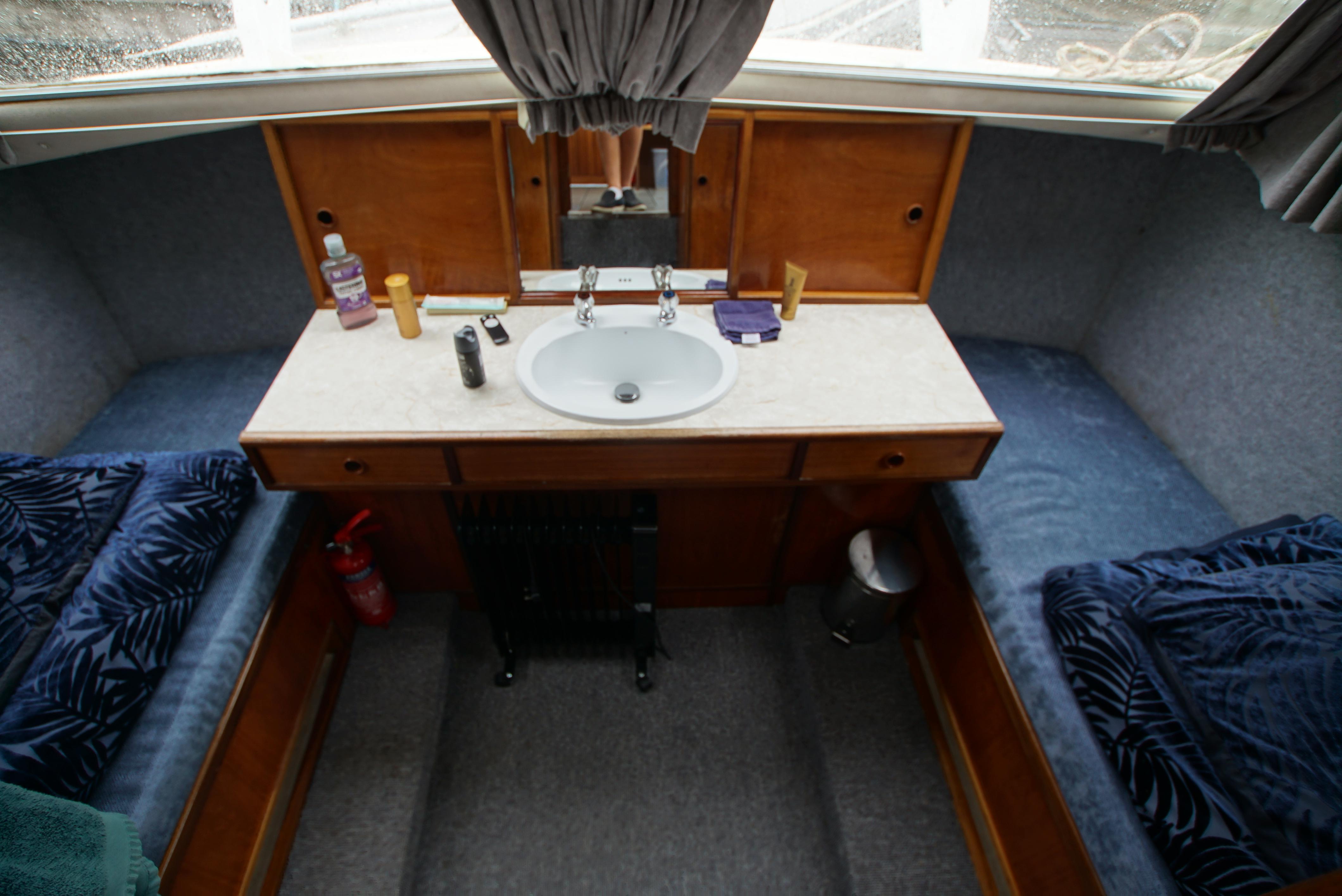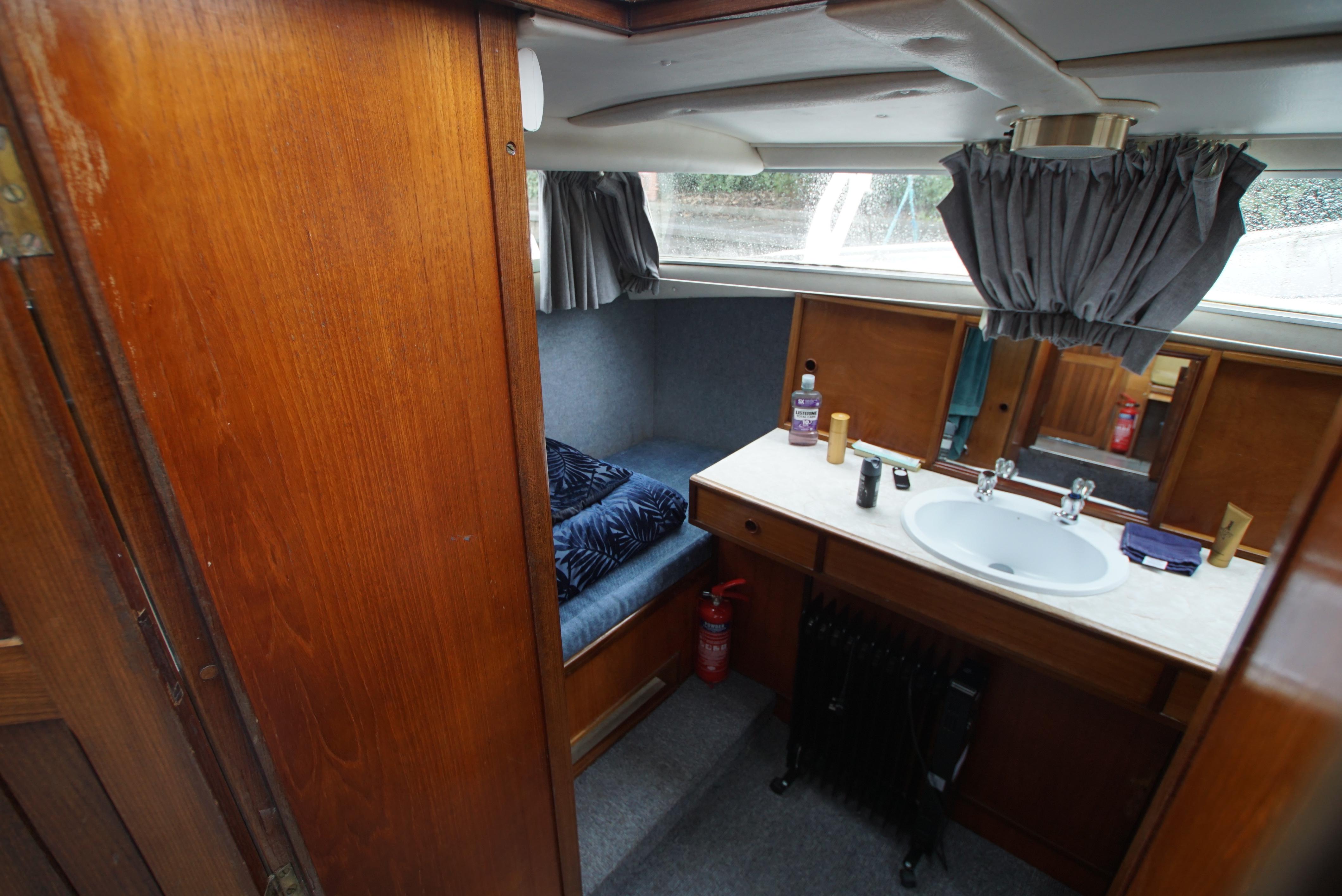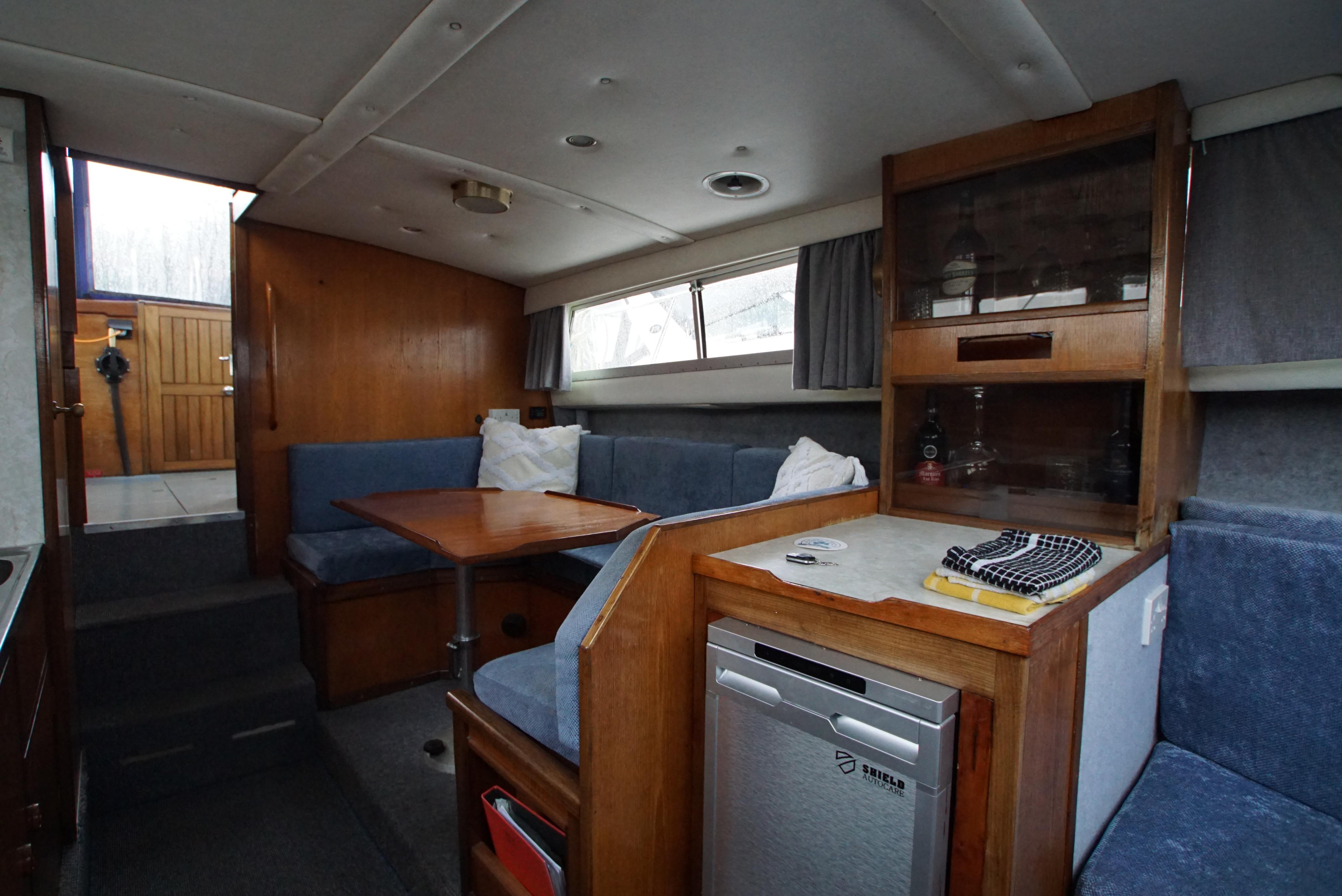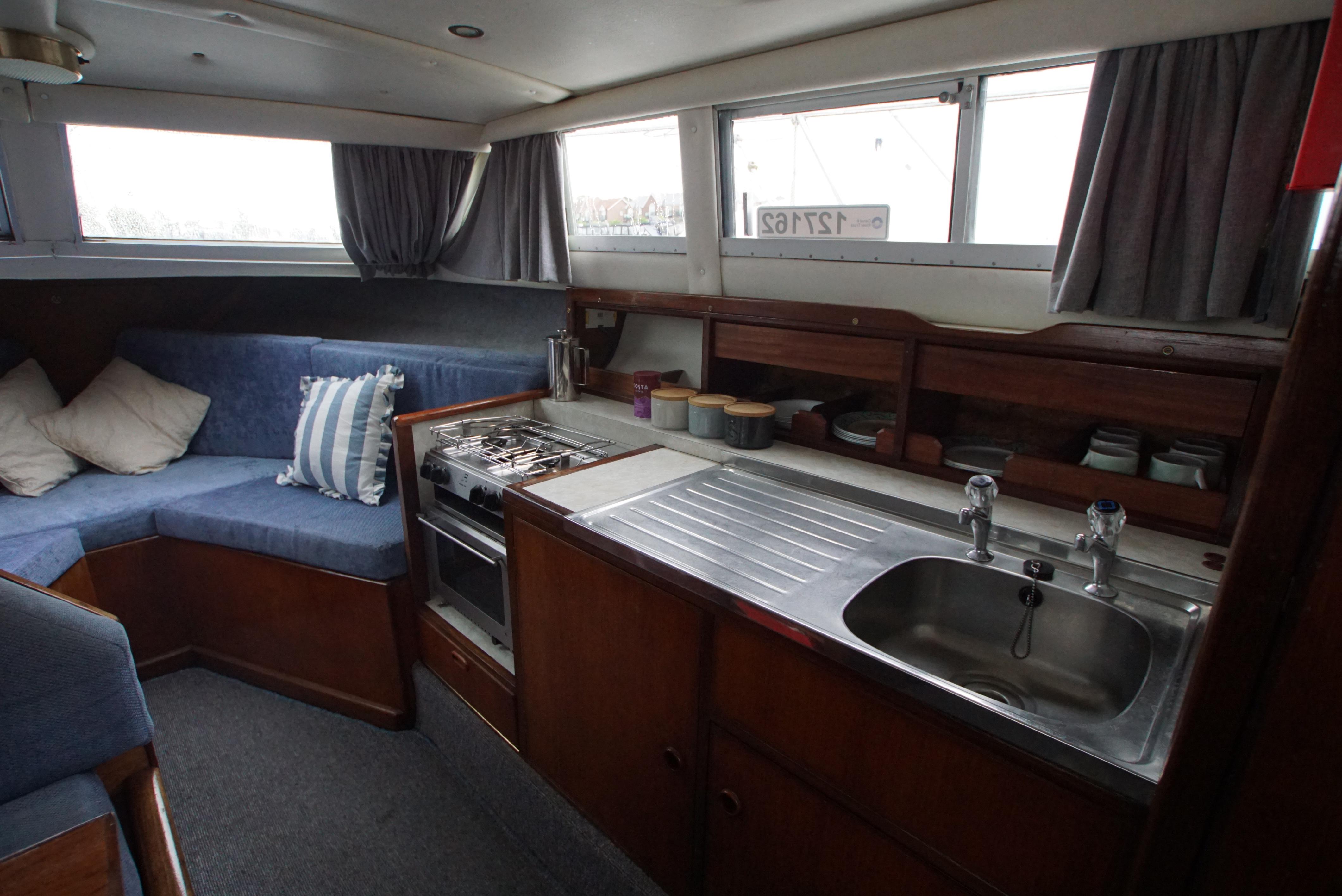 Accommodation – The aft cabin provides twin berths, with a wash basin and a vanity unit and also provides twin berths in the forepeak. Throughout the boat, there is plenty of storage located onboard, making it ideal for trips away. The saloon offers an excellent space for dining as well as relaxing with the saloon table and the forward seating. The galley is also well equipped with a fridge, gas cooker & hob,