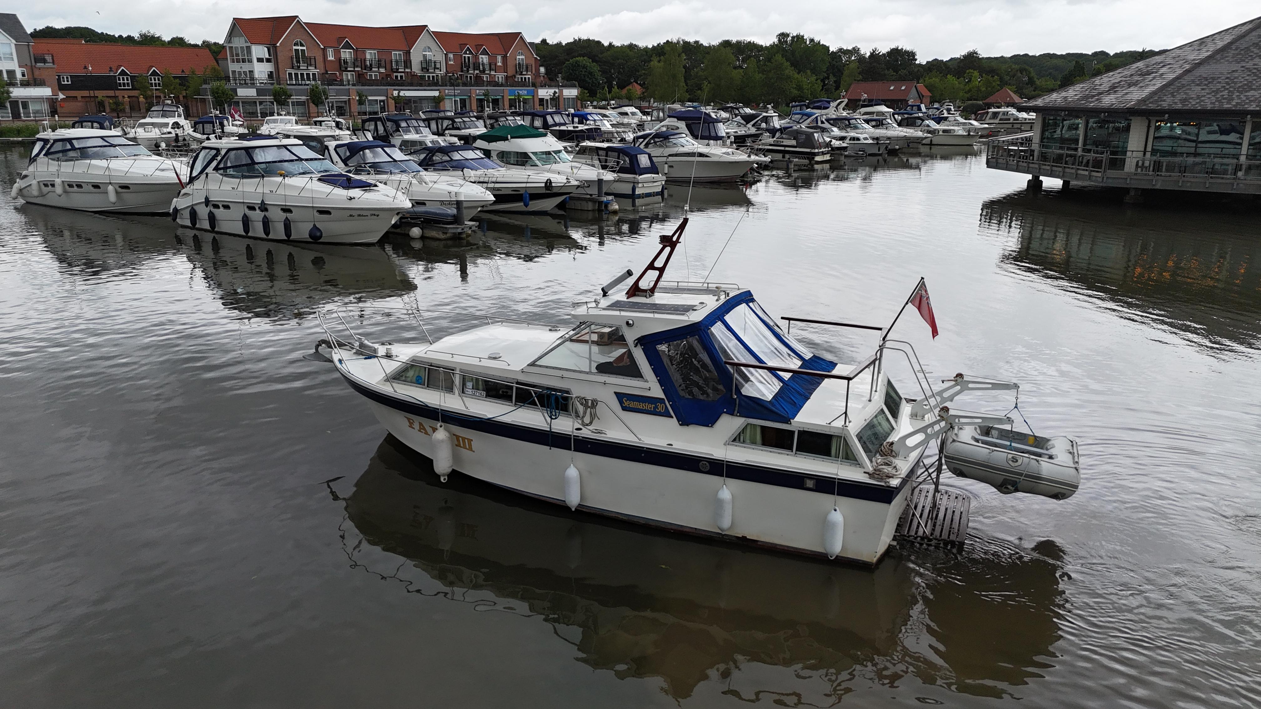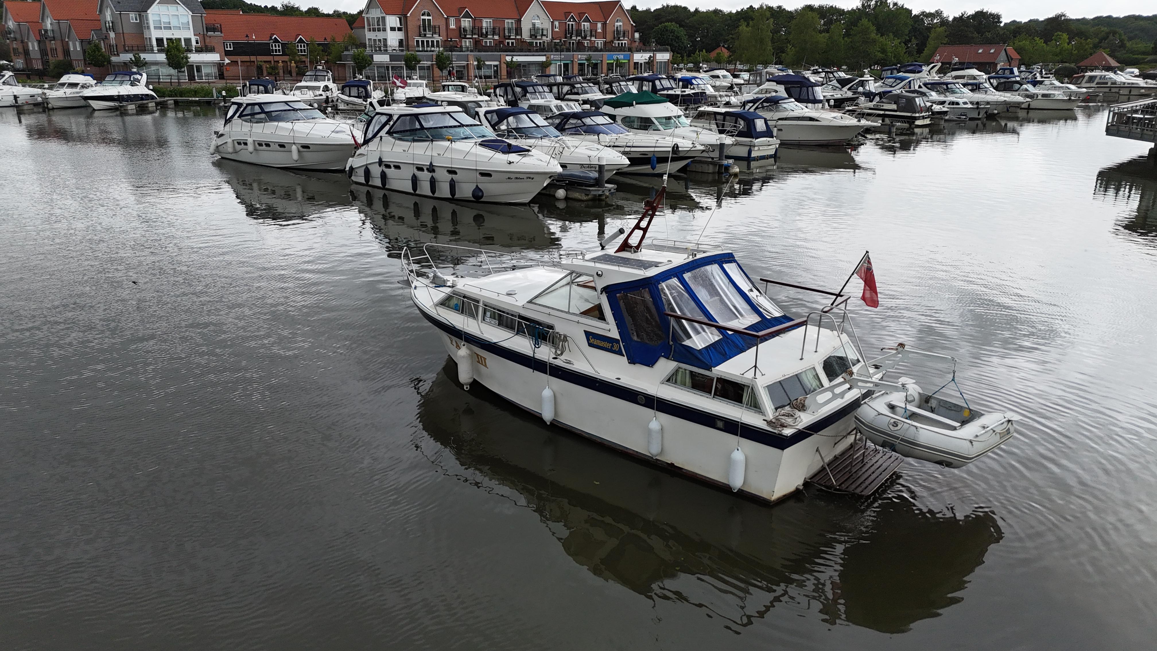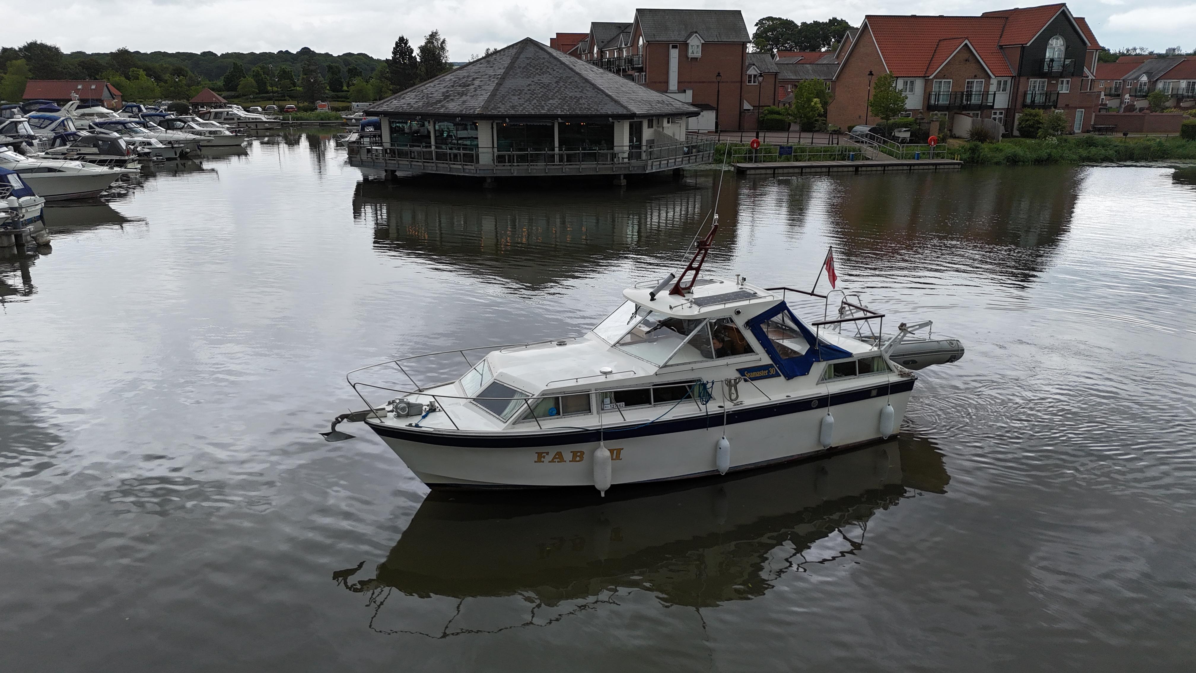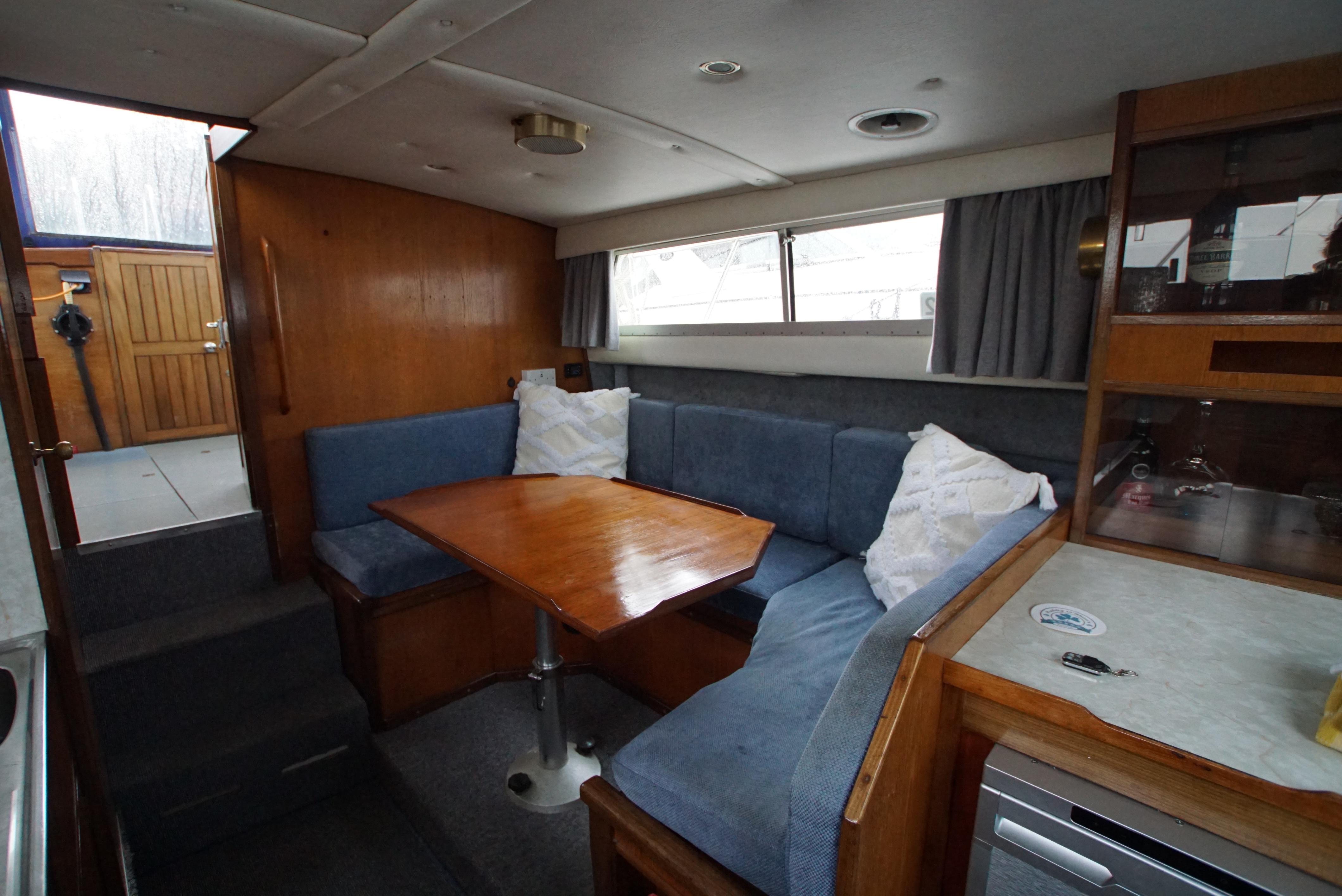 Seamaster 30 – An excellent example of an Inland river cruiser. Built in 1980 and powered by twin BMC 2.52 diesel engines, with 52 hp each, on shaft drives, making it an efficient and economical cruiser. The Seamaster 30 offers excellent accommodation for 4 berths, hosted in 2 cabins. This boat is well equipped with navigation equipment, including a chartplotter, autopilot, speed & depth, and VHF. The specification also includes heating, an electric toilet, gas oven, hob, tender, saloon table and more..