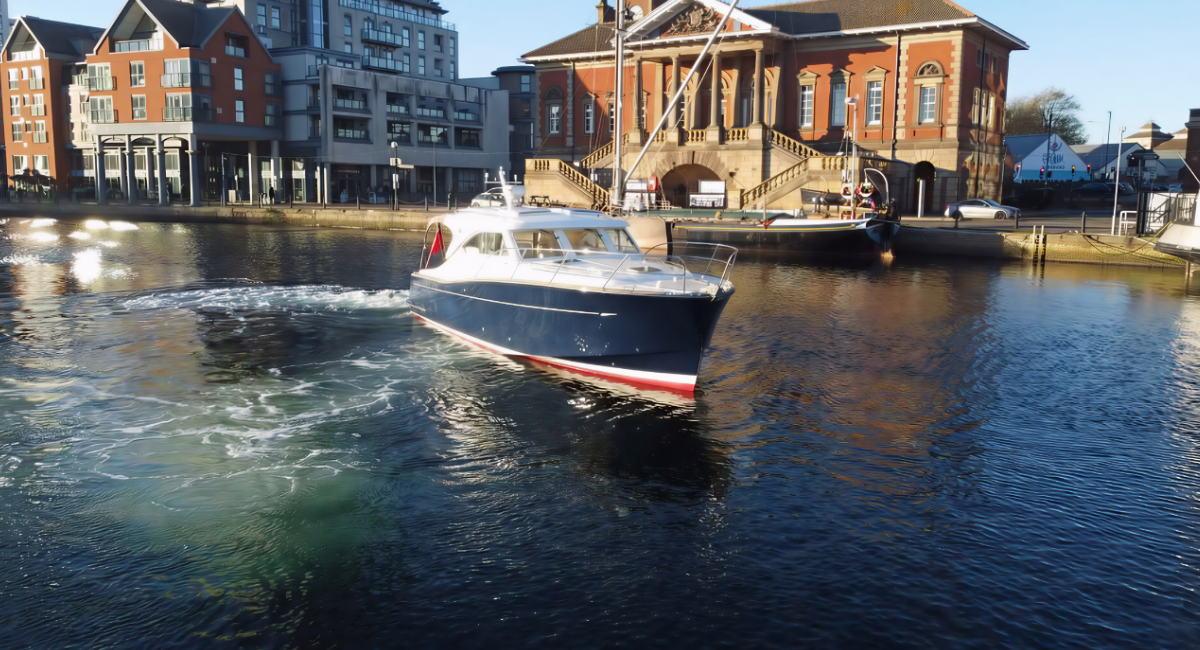 Discover the handcrafted 2024 Haines 36 Offshore at Burton Waters Marina — a semi-displacement cruiser blending coastal capability with inland comfort. Explore the spacious saloon, full-opening patio doors, and luxurious double-berth accommodations. View now.