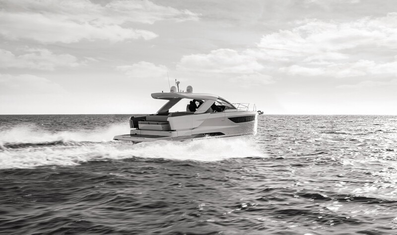 The DB/43 features a number of unique characteristics, both clever and subtle, aboard inboard and outboard versions. They enable this model to meet the expectations of boaters seeking a very open boat with a distinctive character, while also offering comfort on board and solid, seaworthy qualities. Benefiting from these strengths and all of Jeanneau’s savoir-faire, the DB/43 demonstrates power, elegance, and harmony, setting a new milestone in this segment