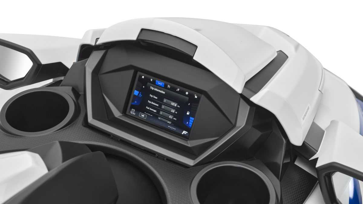 The comprehensive specifications comprise a generous 5″ LCD colour touchscreen, seamless smartphone synchronization capabilities, readiness for GPS chart plotting, a conveniently accessible glove box compartment, a potent high-output 1812cc 4-cylinder DOHC 16-valve engine, the lengthiest and most comfortable hull within its range, an innovative 4-step tilt-adjustable steering system, and a groundbreaking RiDE system, ensuring an instinctive level of control.