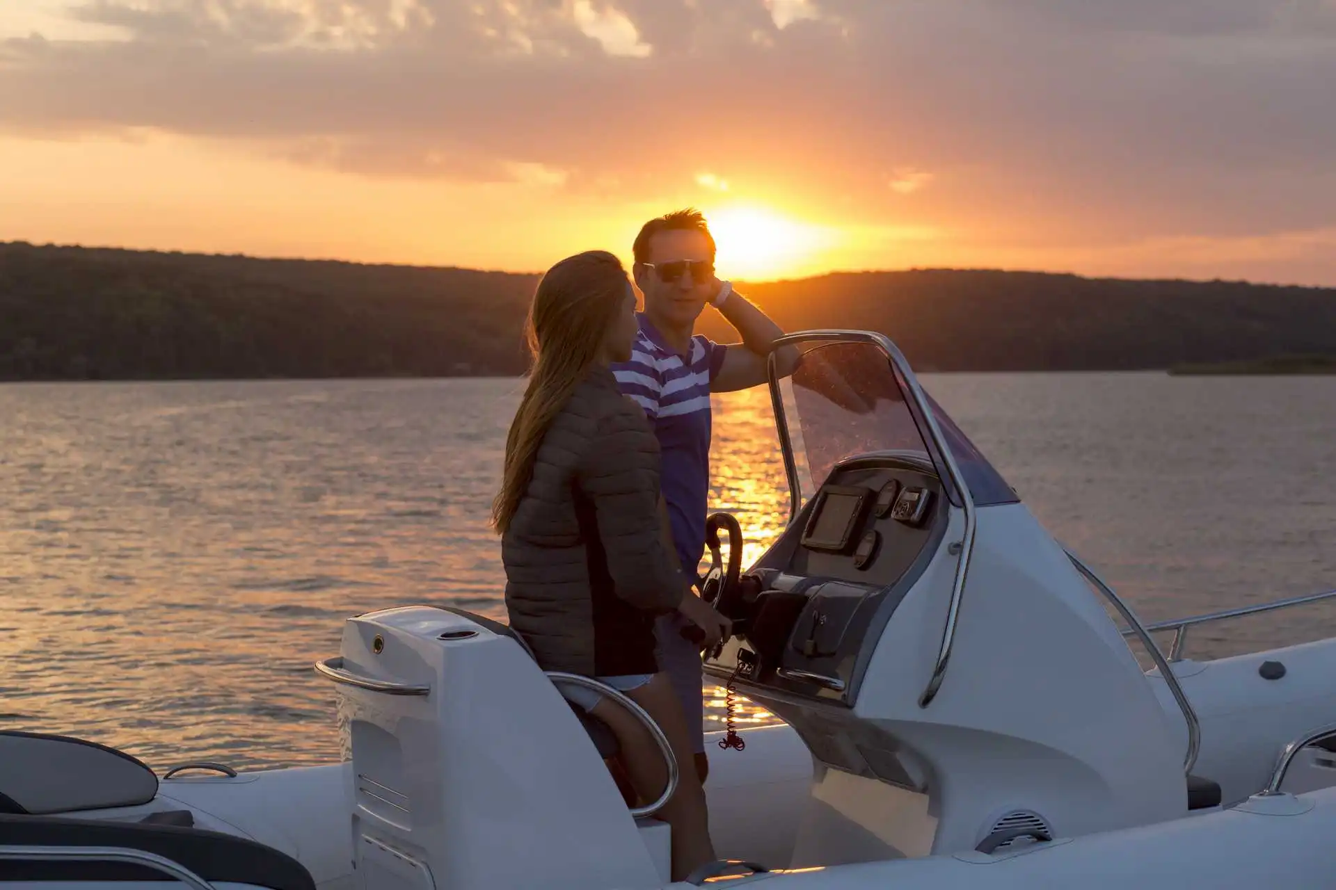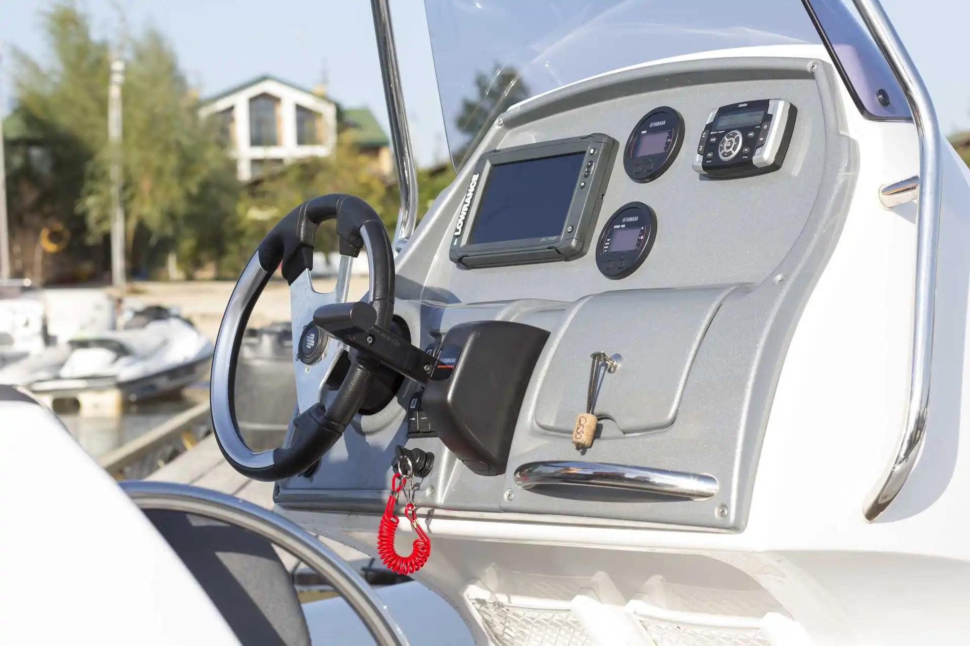 • Deep-V fiberglass hull with transom extensions, bow towing eye and self-bailing cockpit