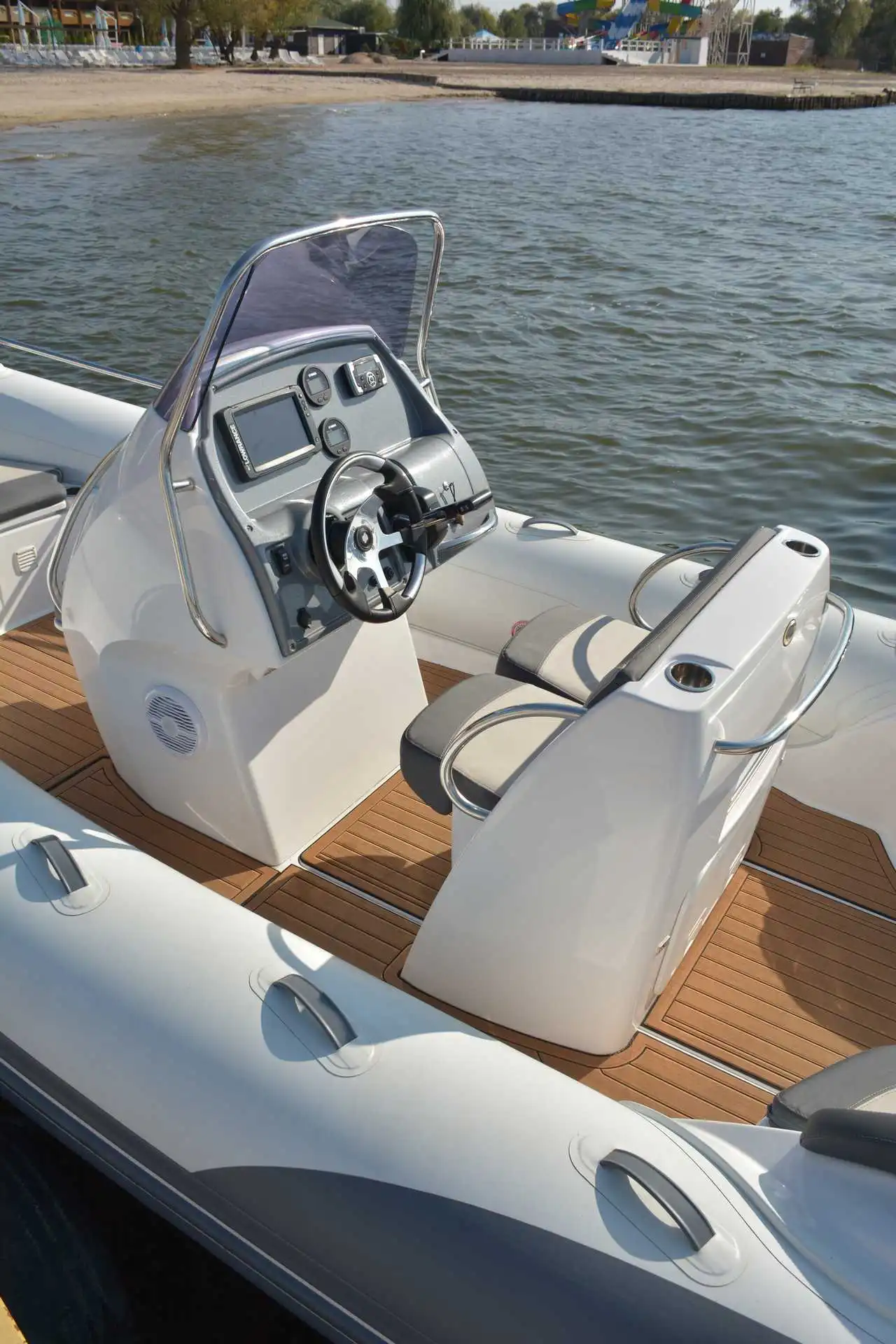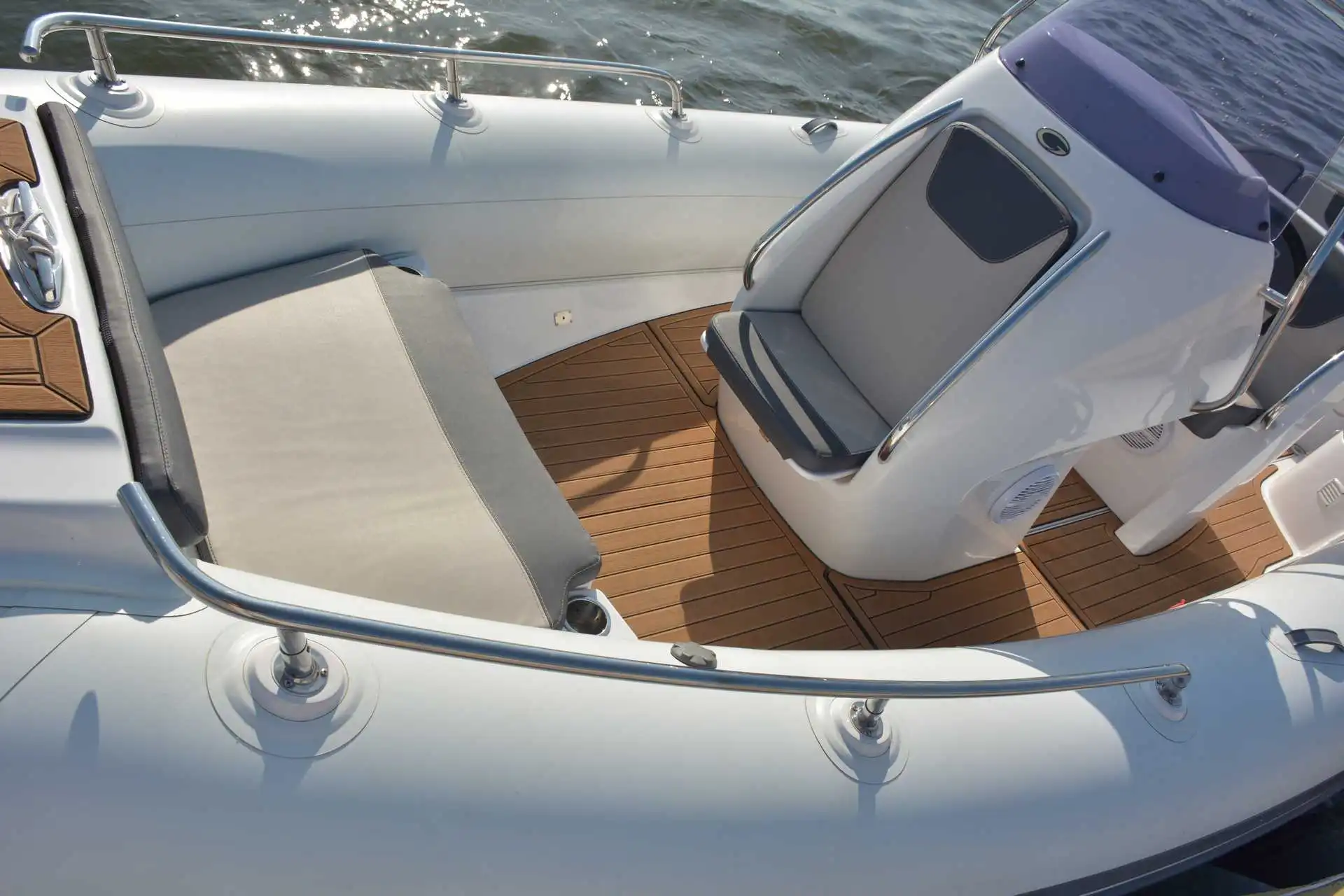 A U-form rear sofa-style seat sits at the back of the cockpit will easily accomodate both your friends and family. This will be the first time it has been neatly accommodated in a 6.5 model. The bow tube has been cleverly curved which introduces a nice touch of elegance to the boat’s lines. A new concept which is introduced with the Grand 650 and beyond is the new steering concept which incorporates an impressive and spacious dashboard. An elegant helming console with folding seats and handrails, The Grand G650 is a stylish and innovative waterski with incorporated towing arch, combining the features of the navigation arch with wakeboard and or waterski towing capabilities.