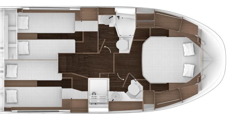 Introducing the Merry Fisher 1295 Flybridge! A boat designed to offer you the comfort whether cruising or at anchor, with three cosy cabins. You will fall in love with her contemporary, elegant lines, featuring new windows in the hull. The new Merry Fisher 1295 Fly features multiple living spaces especially designed for relaxation with family friends. Plenty of time for swimming and moments with your feet dangling in the water from the aft cockpit with the electrically controlled starboard-side terrace. Port side, a large door facilitates access for everyone on board. Far from the everyday, you can lounge comfortably on one of three integrated sun loungers on the forward deck, for guaranteed moments of pure relaxation! Sun worshippers will enjoy the fully equipped flybridge for driving at full speed, sunbathing in complete privacy, and enjoying a cocktail with a view of the sea at the end of the day. You’ll fall in love with her contemporary, elegant lines, featuring new windows in the hull. This is a signature feature by Jeanneau lends an exclusive style to the flagship of this historic line, equipped with triple 300 HP engines. The Merry Fisher 1295 is also integrated with SEANAPPS Technology on board.