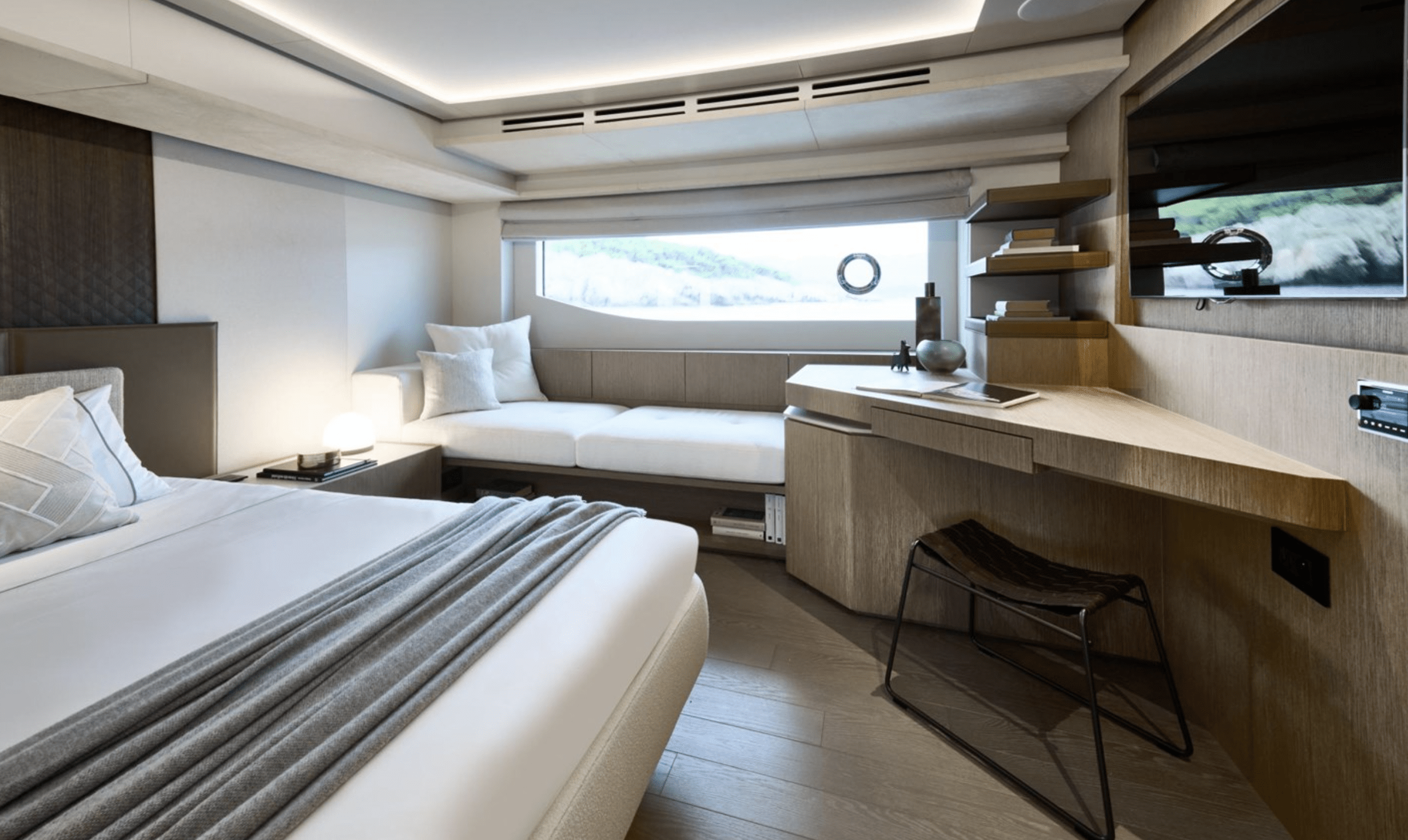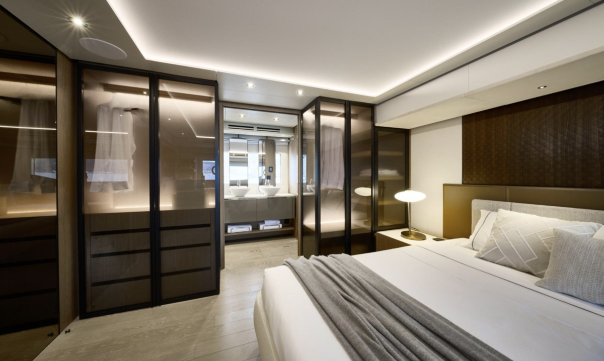On the interior, the 20 m2 owner’s suite, bathed in light, includes a spacious bathroom, copious storage, a generous desk, and guarantees perfect privacy. On board, everything has been designed for you to enjoy cruising with friends and family with full peace of mind.