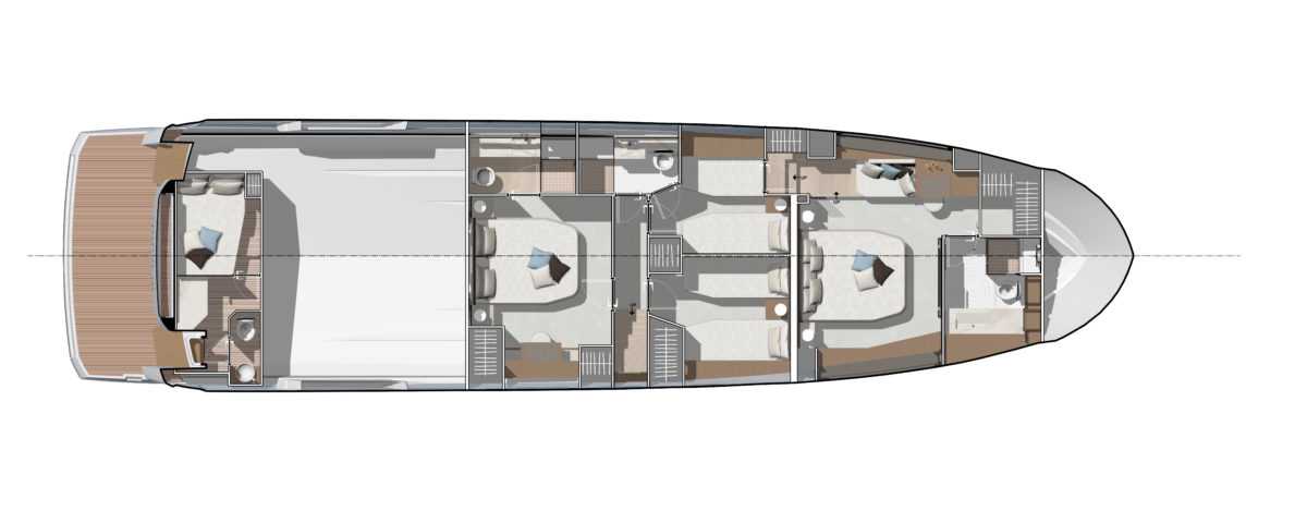 “Based on volume, circulation and light, the all-new concept for this luxury crossover enables you to benefit from the full beam of the yacht, reinventing space on board for an incredible experience. Life aboard the X70 combines the comforts of a luxurious villa and the pleasures of life at sea in a radically new and different way.