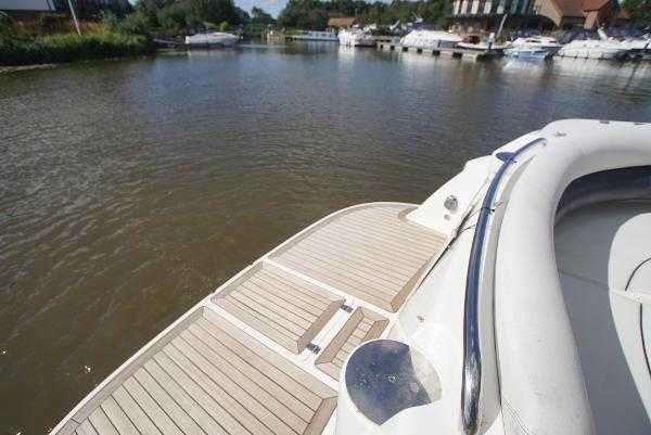 Capriole 1080 Offshore, 2002 build and equipped with twin Yanmar 4LHA diesel engines (230hp) engines. This is a one owner boat from new that has been meticulously maintained, and is presented in excellent condition throughout. The specification includes bow thruster, diesel heating, blue hull, teak cockpit and bathing platform, Raymarine chartplotter and much more. Power polished and antifouled in August 2023, new cockpit upholstery fitted in 2023, and supplied with a 3 month UK engine warranty. Boat Safety Certificate valid until January 2025. Viewings 7 days a week in Lincoln.*Part exchange considered*