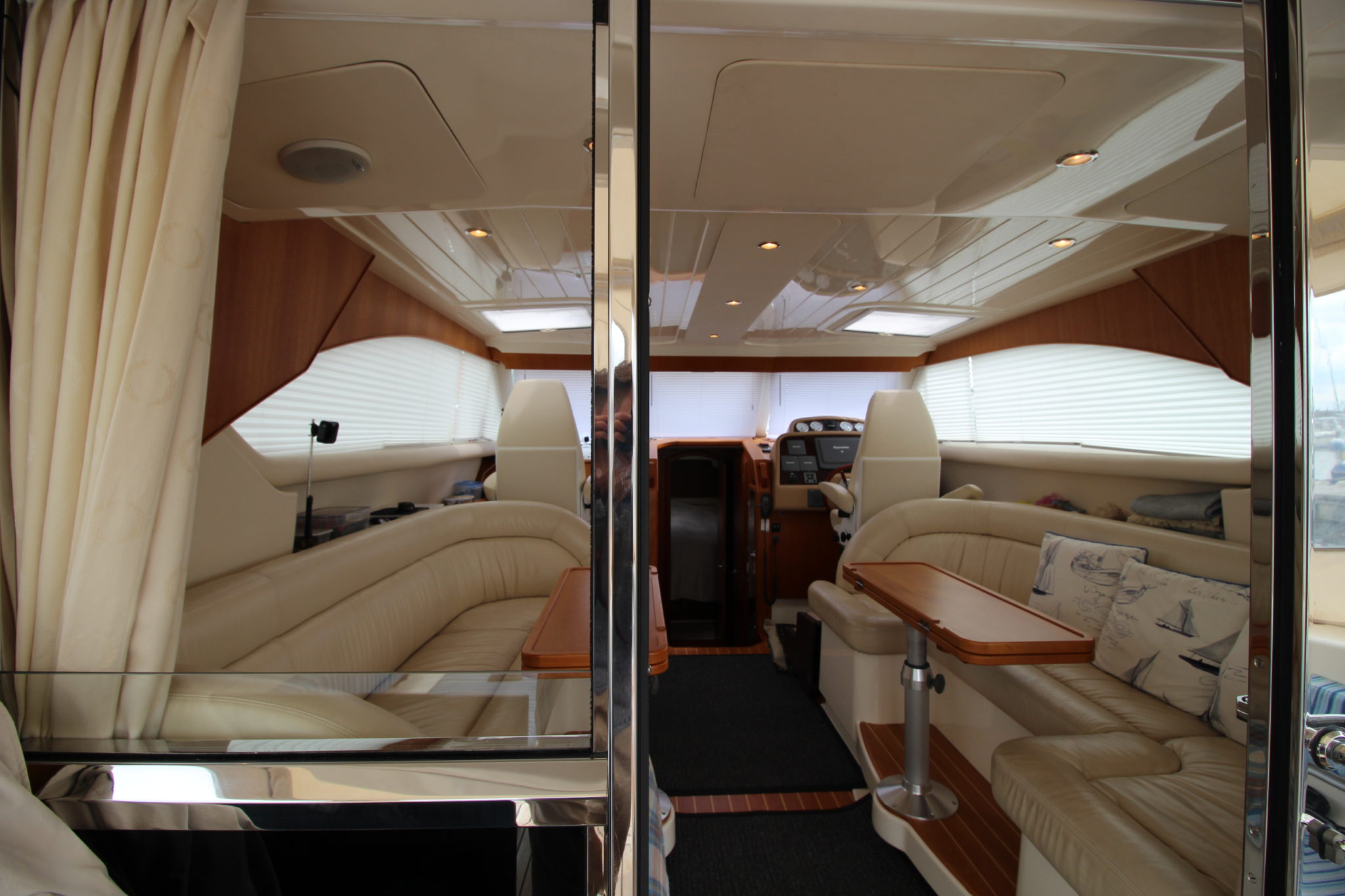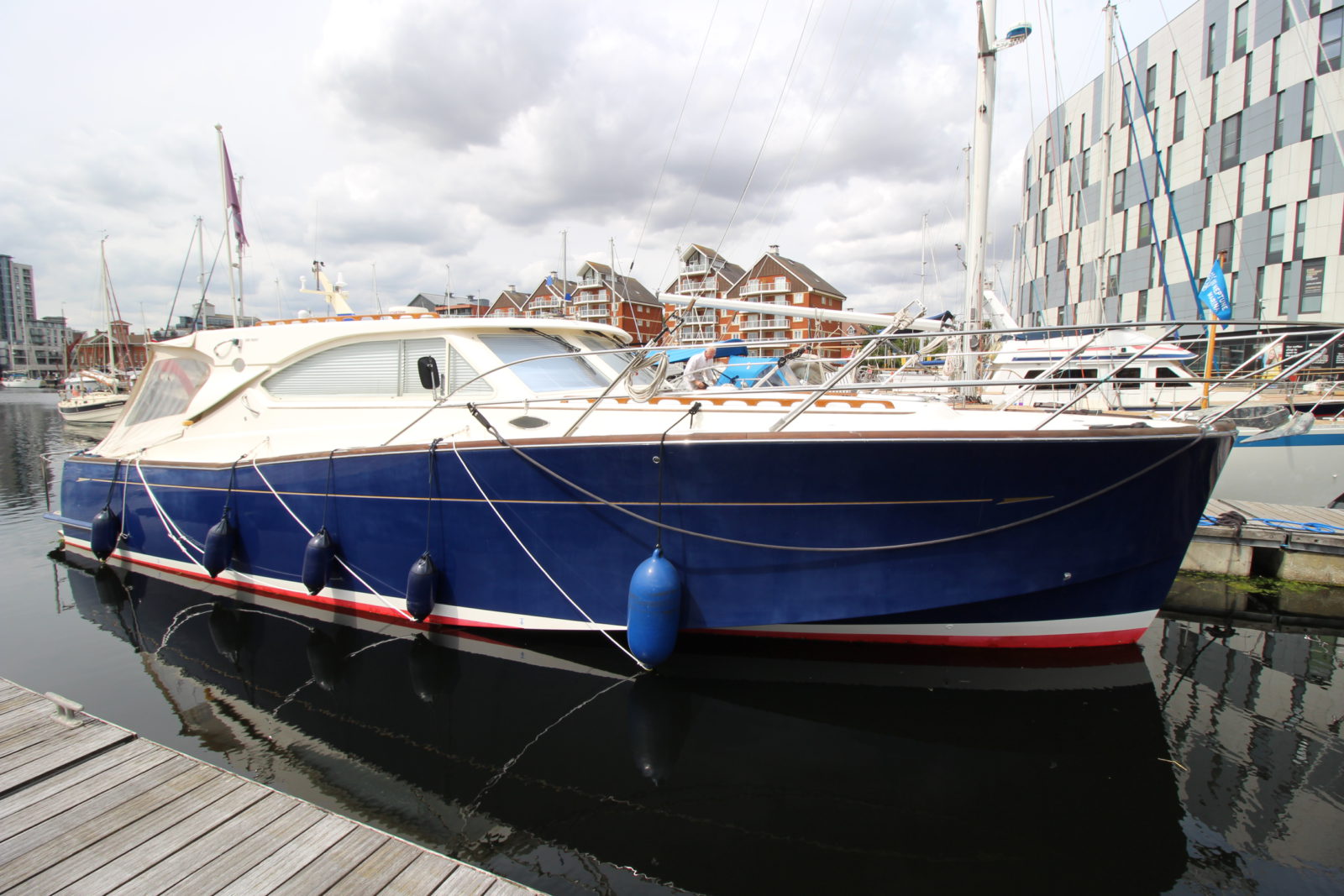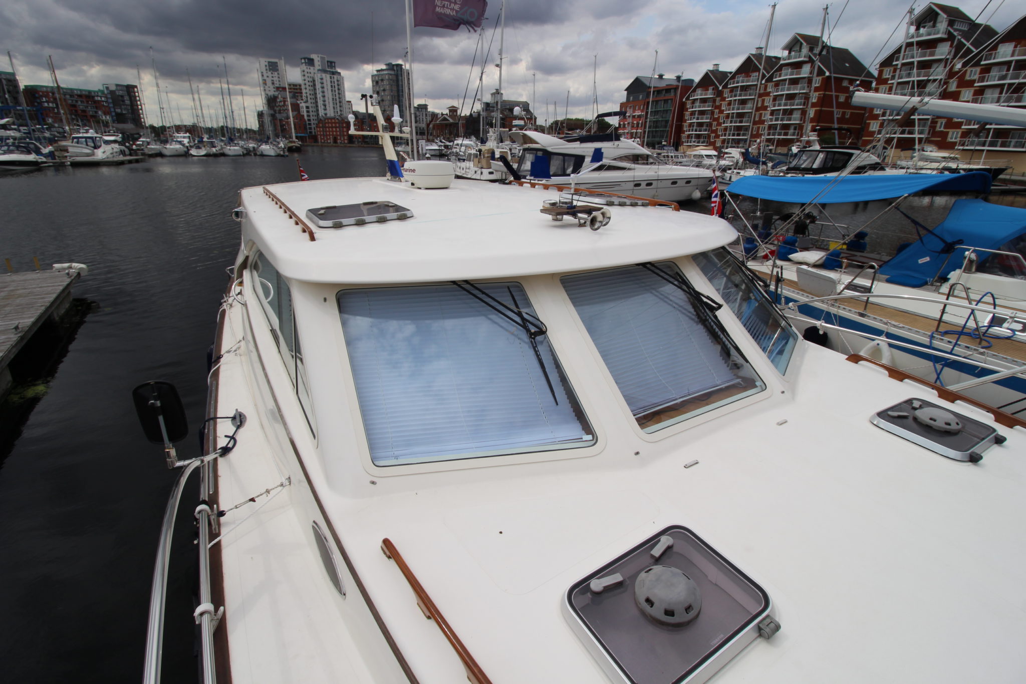 This example is in lovely order and benefits from a recent in-depth maintenance plan including engine servicing and a overhaul of the jet drives in 2023. Her specification includes Generator, Air conditioning, Webasto heating fitted Nov 2023, Chart plotter, Radar, AIS, VHF, Autopilot, Electric Quiet flush toilet, 2 cockpit canopies, Custom bow pulpit, Custom rails on bathing platform, and Hamilton Mouseboat control. Part Exchange considered by Burton Waters Boat Sales.