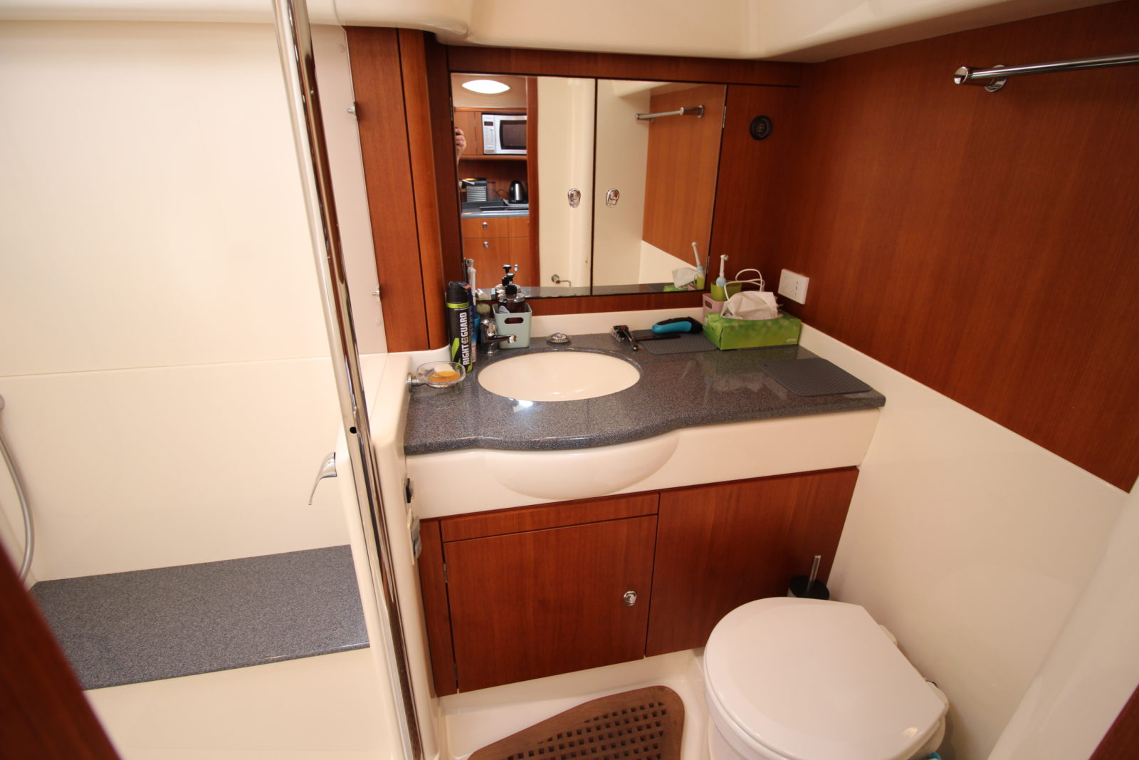 Pressurised hot and cold water system to galley, WC and hot and cold deck shower in cockpit.