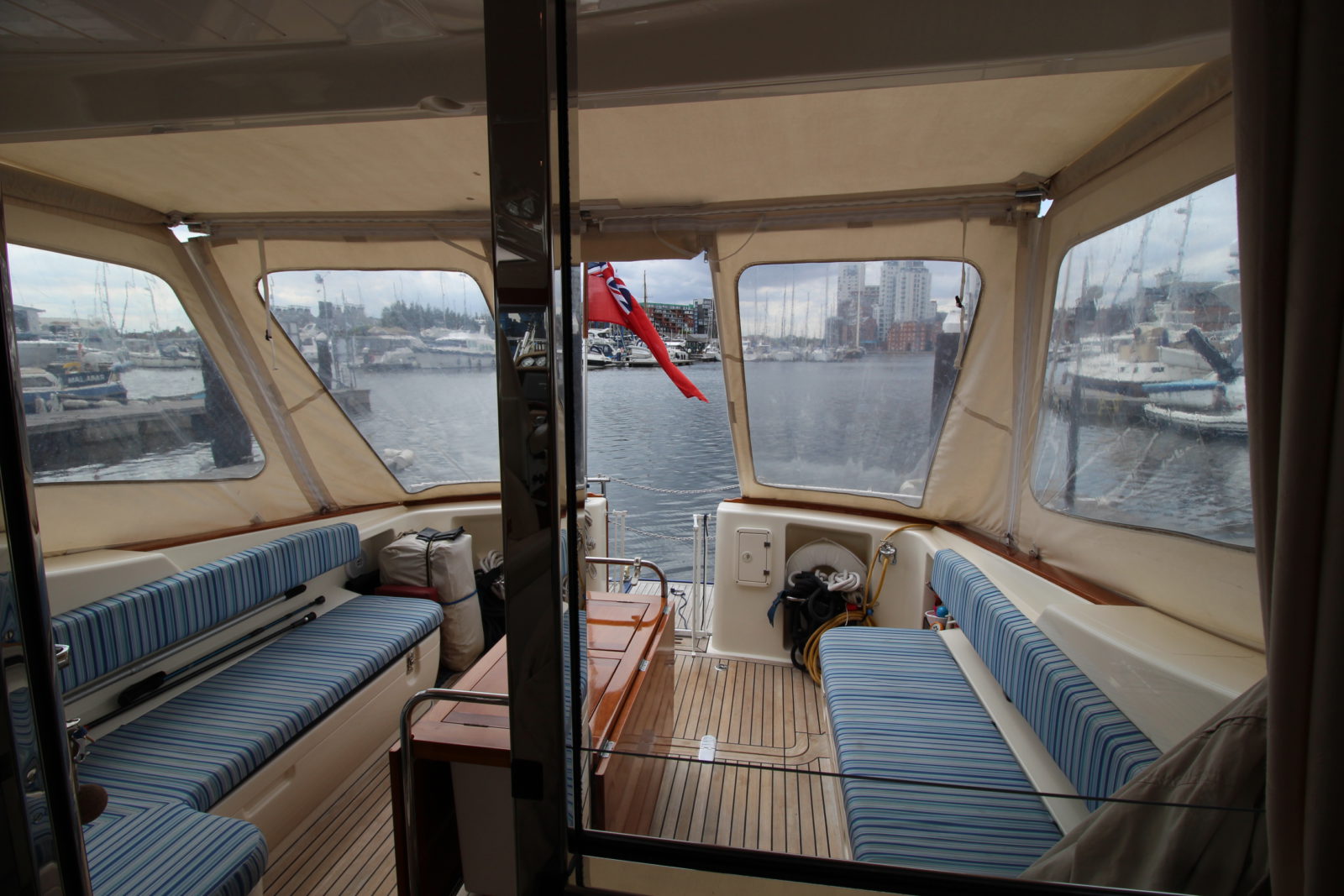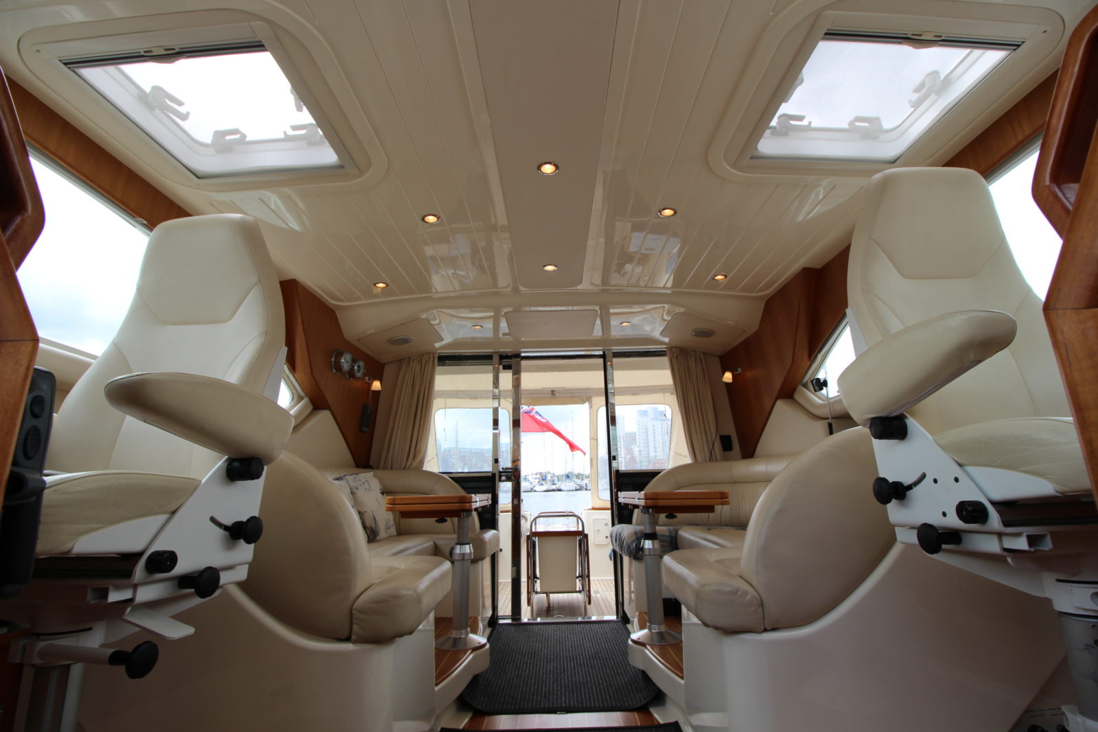 There are port and starboard electric pop down windows either side of the substantial door into the cockpit, which has it’s own drop down window.