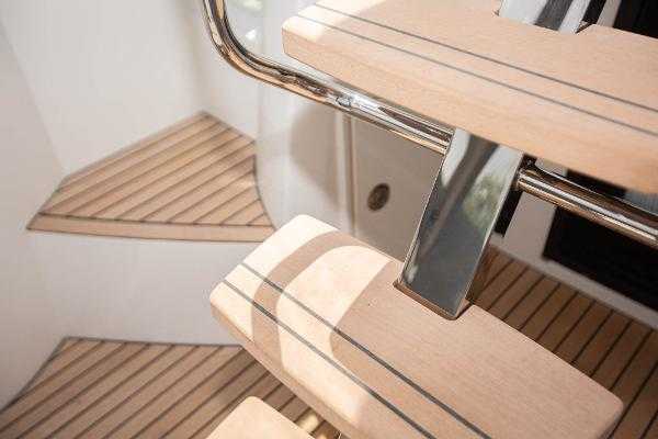 Stainless steel ladder to flybridge with synthetic teak steps
