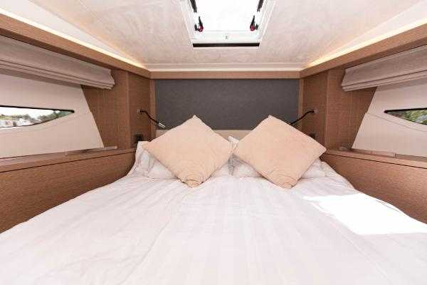 Large side windows with blinds and opening ports Opening deck hatch with shade / insect screen