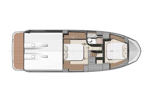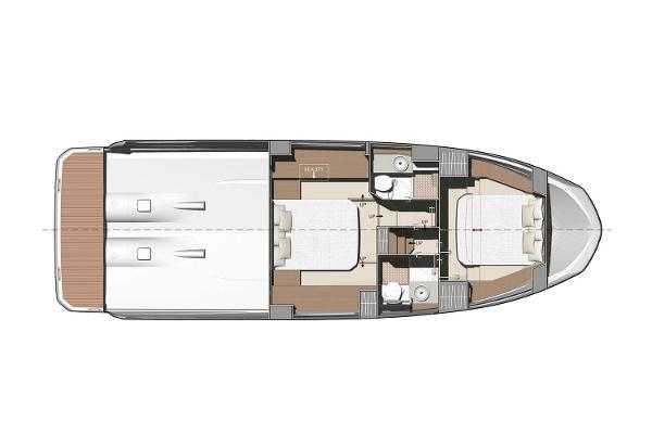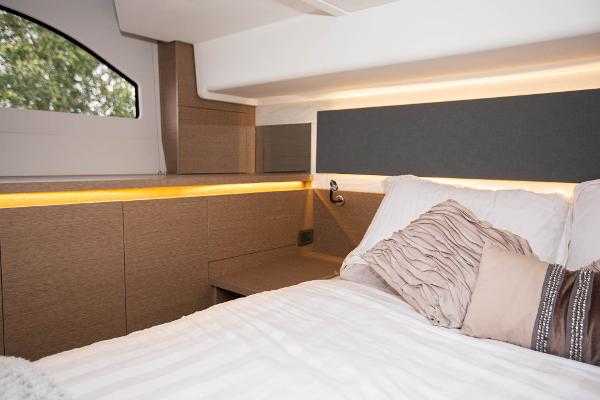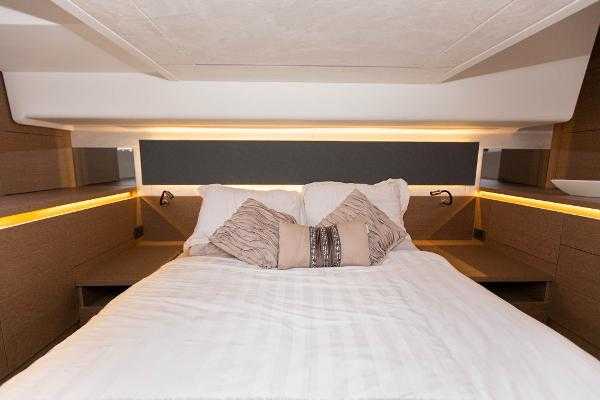 Step aboard the Prestige 420 Fly and discover its spacious accommodations for four in the forward and amidships cabins. The large side windows and multi-panel sliding glass door to the aft deck provide breathtaking views of the surrounding waters. Natural illumination fills the salon, whether you’re preparing meals at the modern galley aft, operating the vessel from the lower command station to starboard, or simply enjoying the view while keeping the helmsman company.
