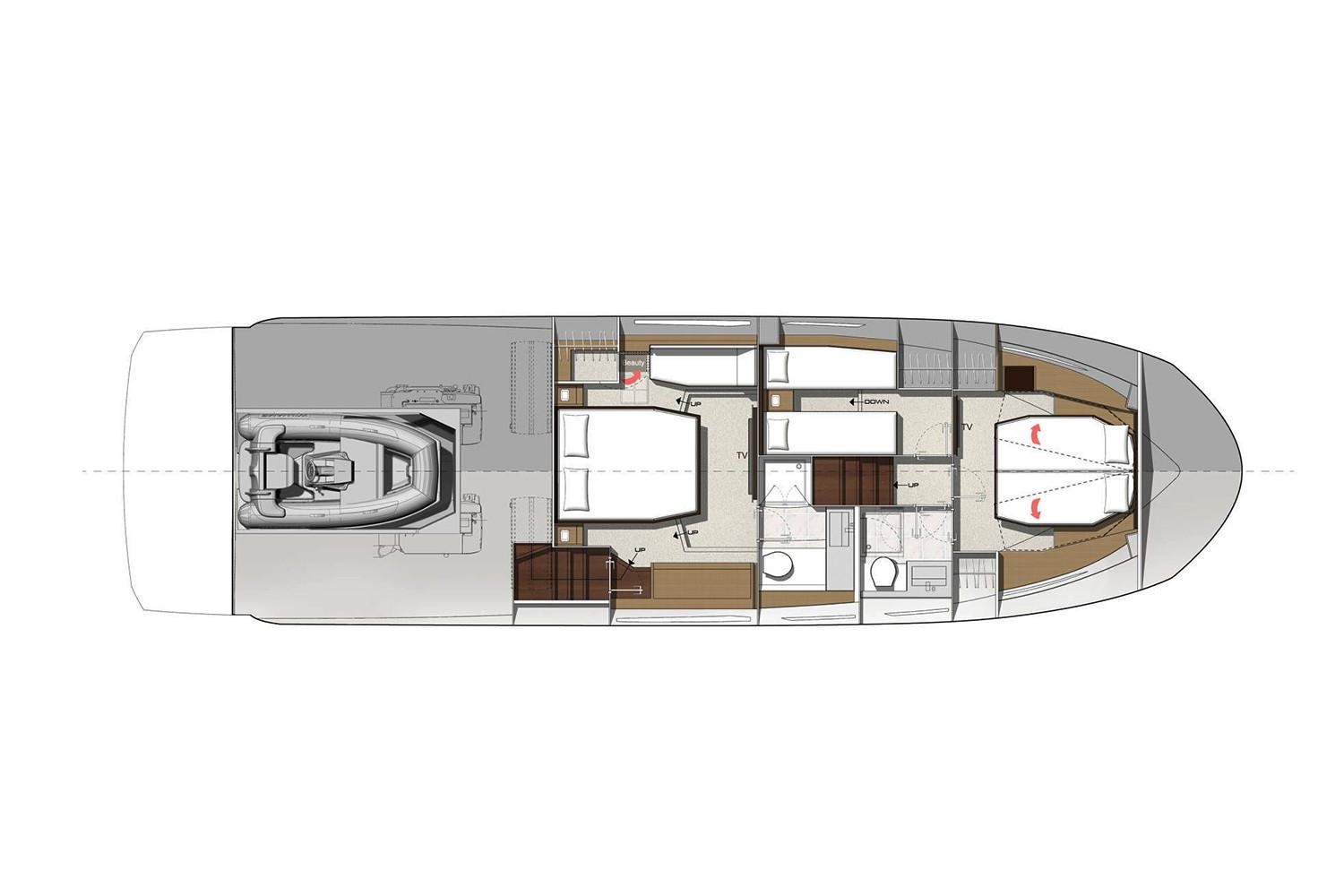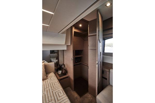 Life on board is easy, enhanced by numerous clever details. Conducive to relaxation, the L-shaped saloon includes an immense integrated storage locker.