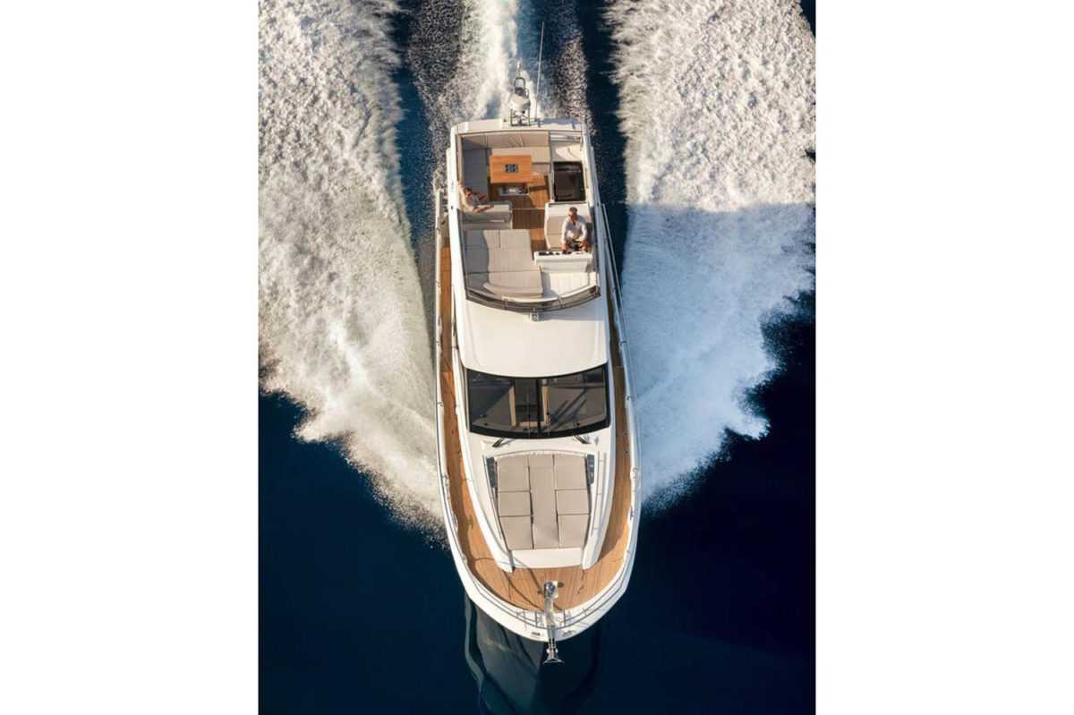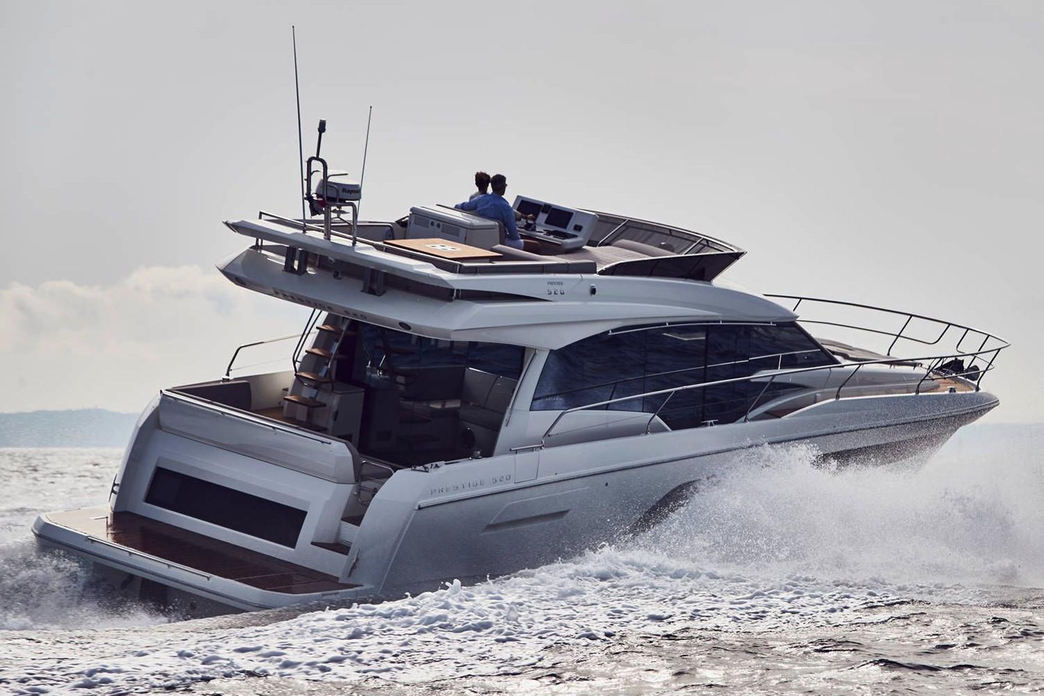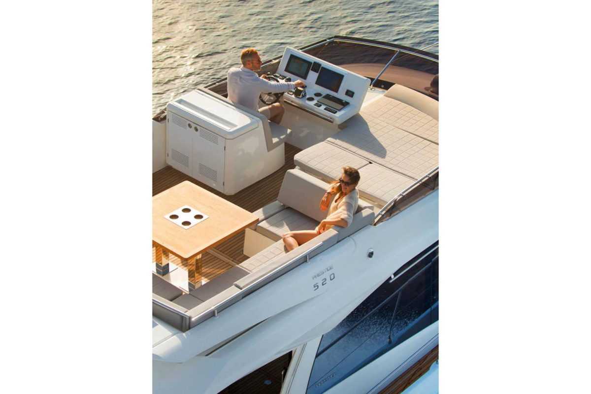 In a pure, dynamic style, the PRESTIGE 520 offers multiple zones for relaxing in comfort. First, we have the XXL Flybridge, unique on a motor yacht of 52 feet.