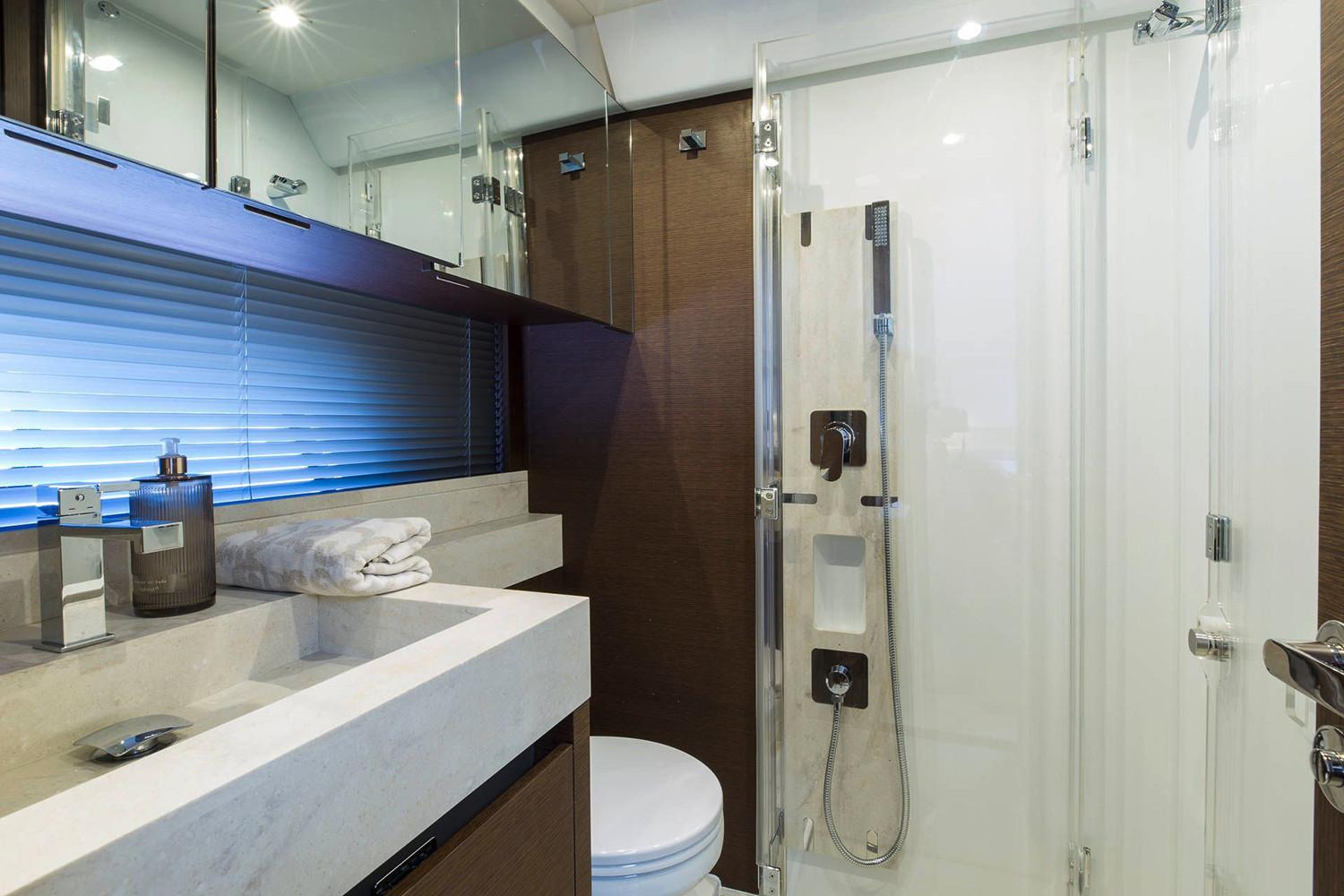 Intensely bright, the inviting saloon evokes a sense of well-being. Facing sofas and a modular cockpit bench seat, which can pivot to face the saloon, create the perfect space for entertaining.