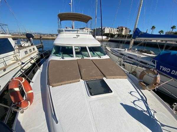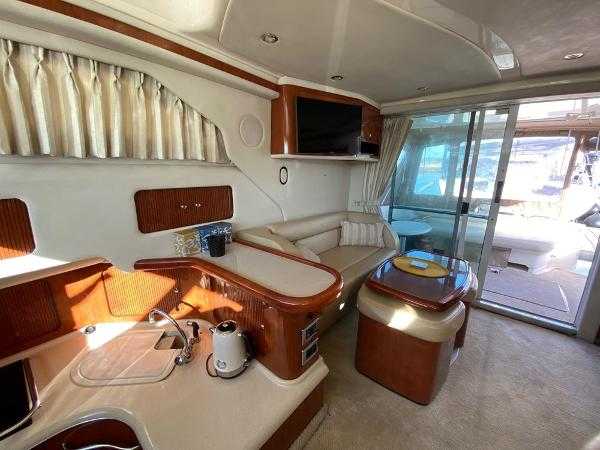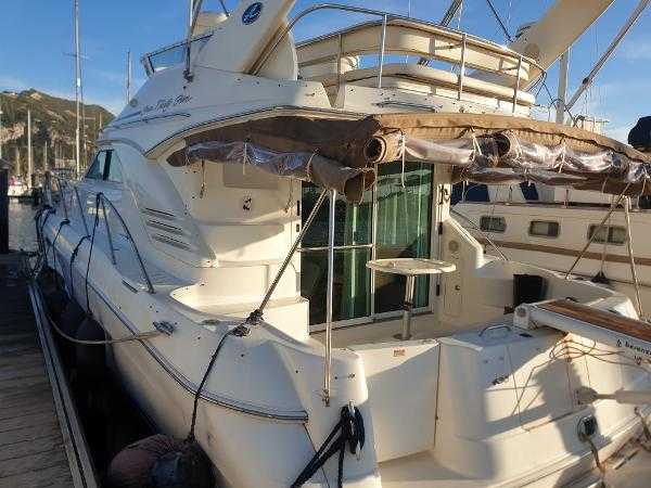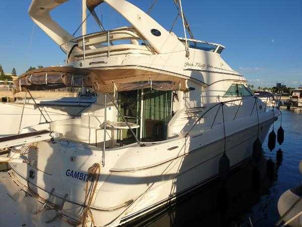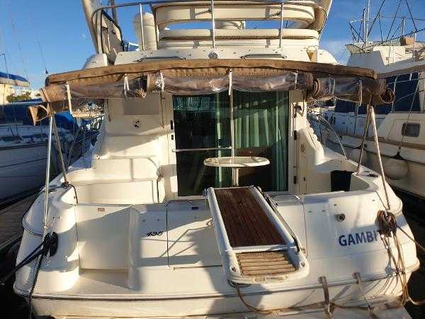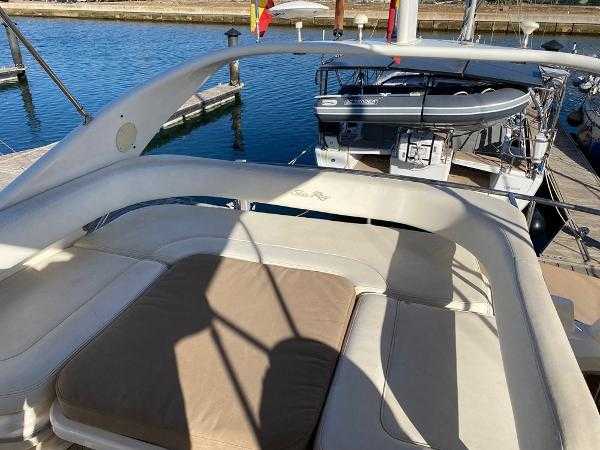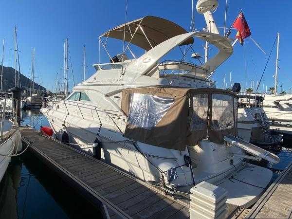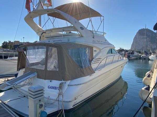 Sea Ray 400 DB, 2003 build and equipped with twin Cummins 6CTA 8.3M 320hp diesel engines with 1200 hours completed. This well equipped flybridge cruiser completes with an inventory that includes bow thruster, generator, bimini, air conditioning, passarelle, Raymarine chartplotter, radar, autopilot and much more. Presented in lovely condition by the current owner, this must be viewed to be appreciated. Lying in Alcaidesa Marina, in La Linea which is a short walk from Gibraltar airport. Viewing by appointment only. *EU tax paid*