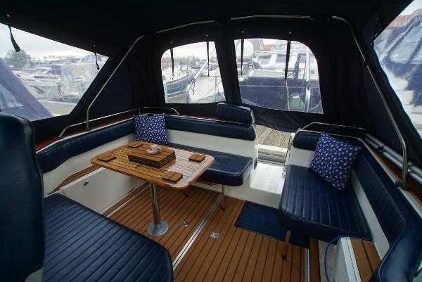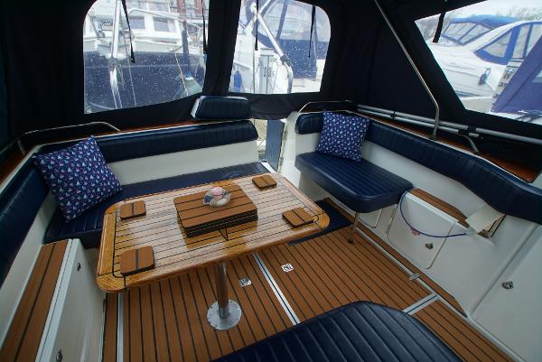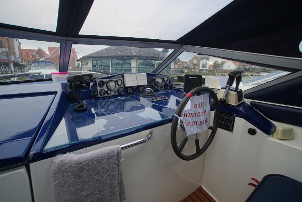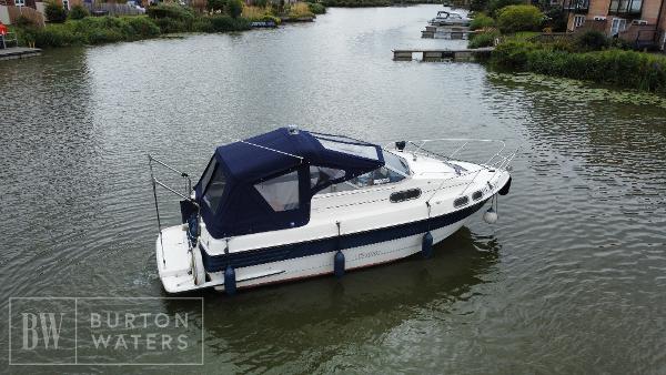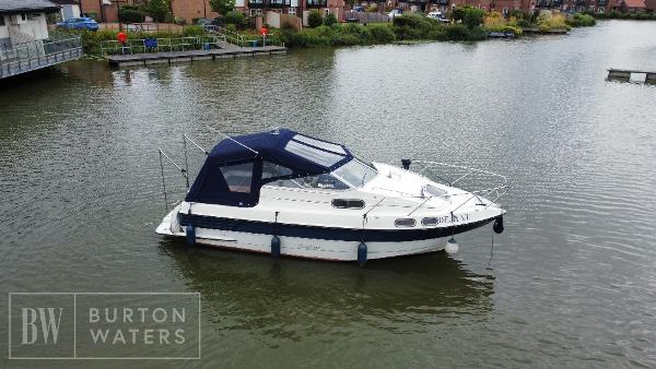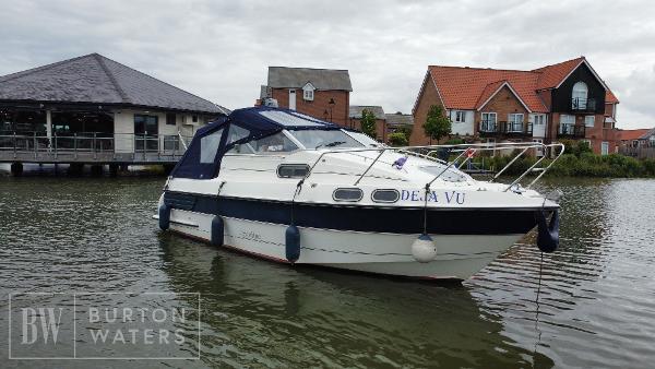 1988 Sealine 255 equipped with twin Volvo Penta AQ131 petrol engines. This cruiser comes equipped with Raymarine chartplotter, depth sounder, Lowrance-Links 5 VHF, hot water, fridge, Radio, and CD player, holding tank, recent new cockpit canopy, synthetic teak in cockpit, door linings curtains and more. Available to view 7 days a week at Burton Waters Boat Sales in Lincoln.