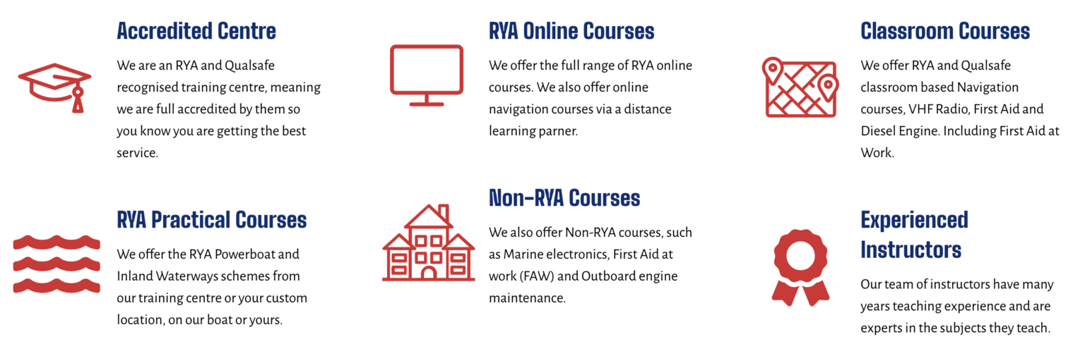 Our RYA recognised training centre can provide tuition on and off the water and will style courses to your abilities and requirements, whether RYA certificated, or for example, you’ve recently changed your boat and require some assistance or wanting to build confidence before or further on from a course. We are always available to speak to and offer advice before and onwards after your training. Training is available on one of our centre boats or on your own craft which we recommend to give hands on experience of your particular vessel.